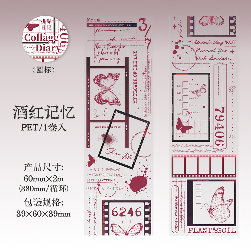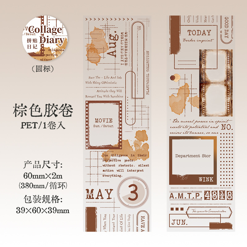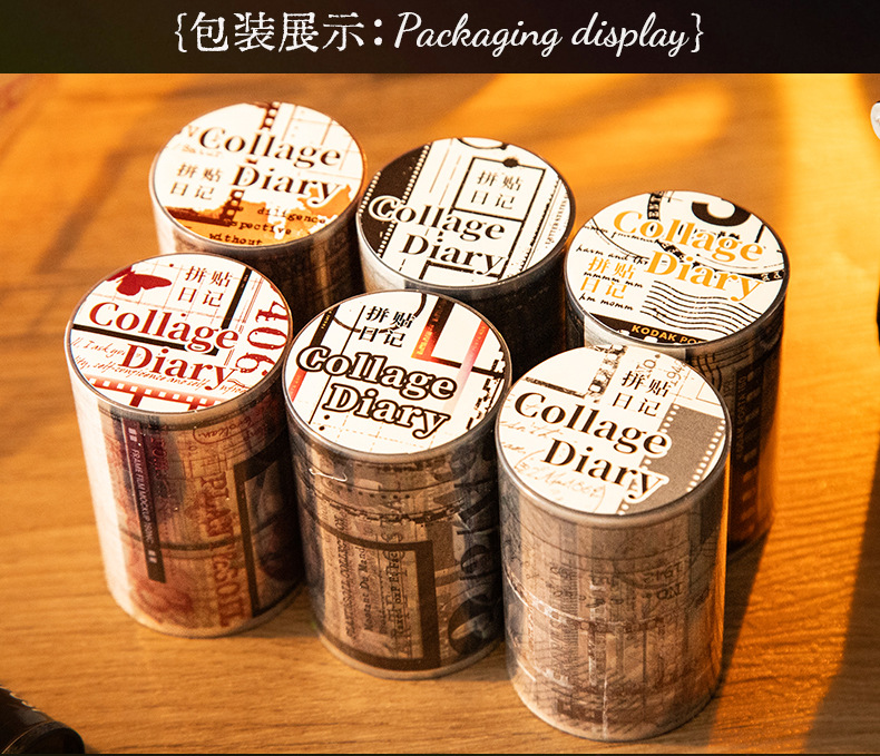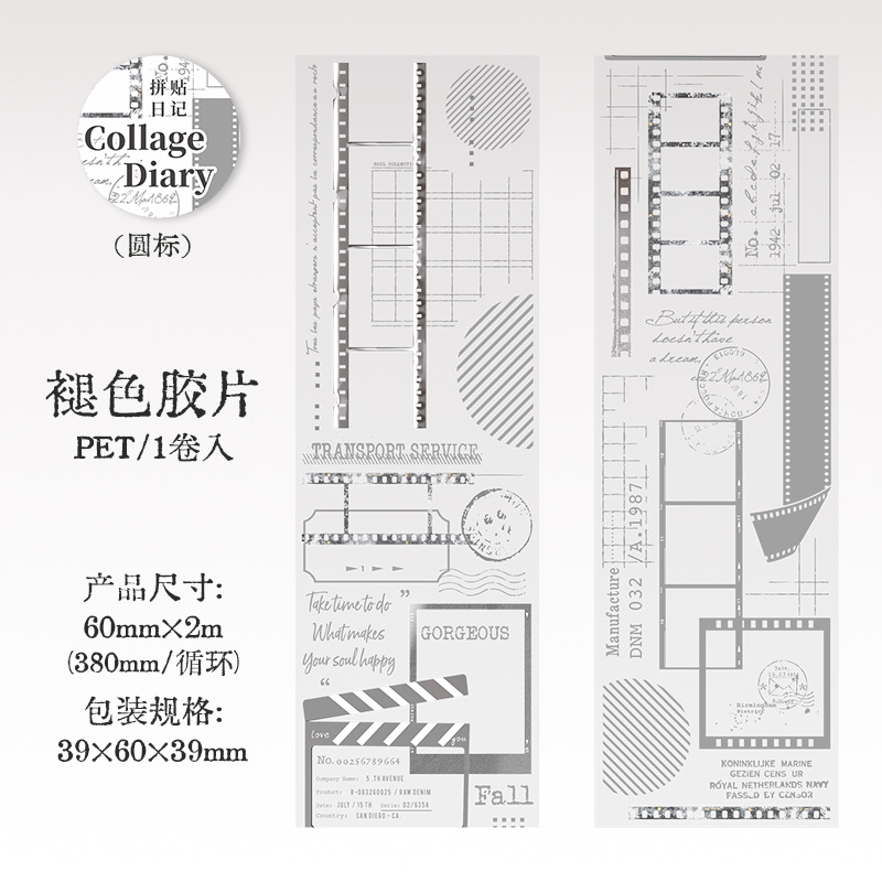 콜라주 일기 필름 테두리 PET 테이프 복고풍 흑백 영어 사진 프레임 필름 콜라주 핸드북 장식 재료스토어 가기