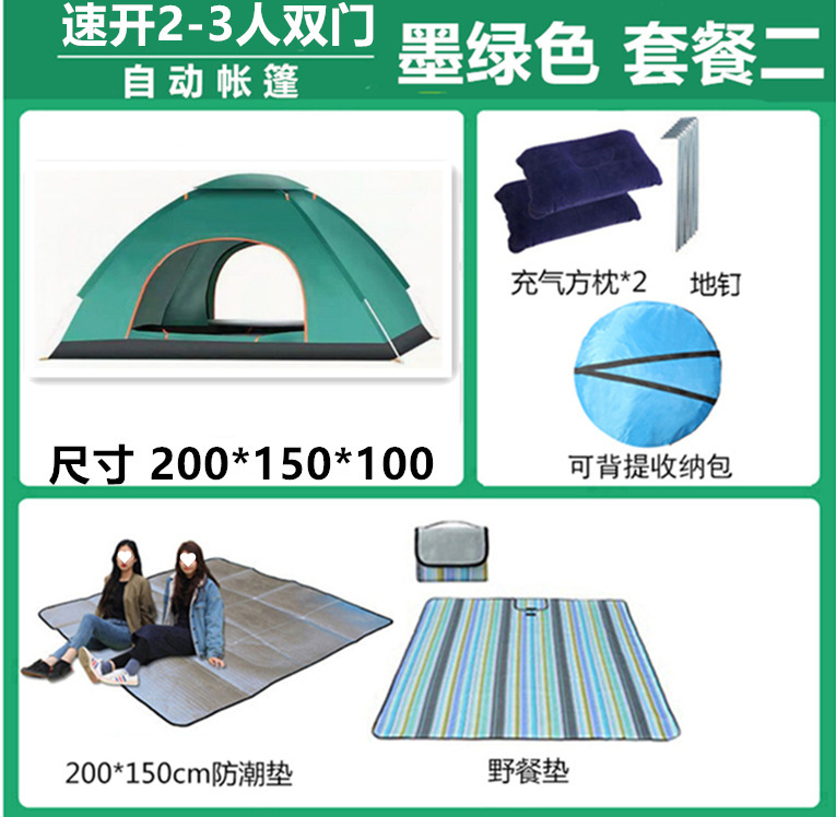 • 2-3인용 싱글 도어 짙은 녹색(패키지 2) 베개 2개