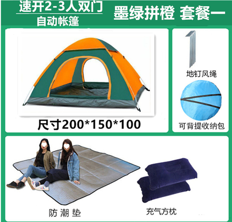 • 3~4인용 이중문, 진한 녹색 및 주황색(패키지 1), 베개 1개