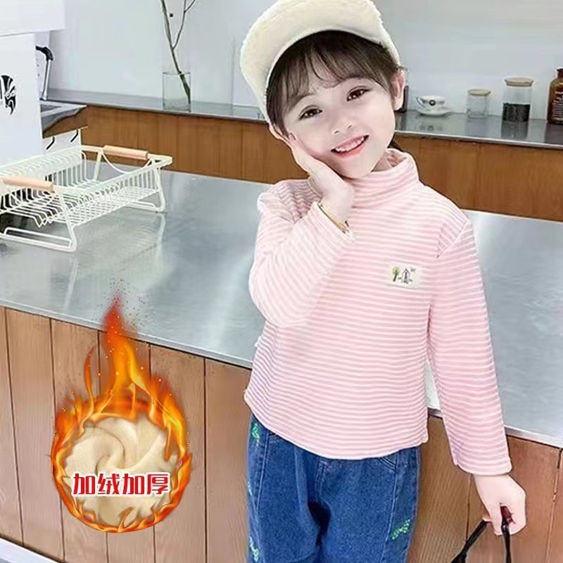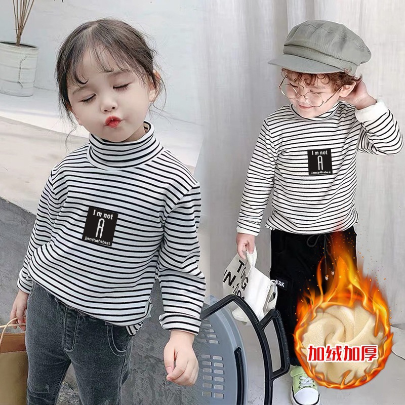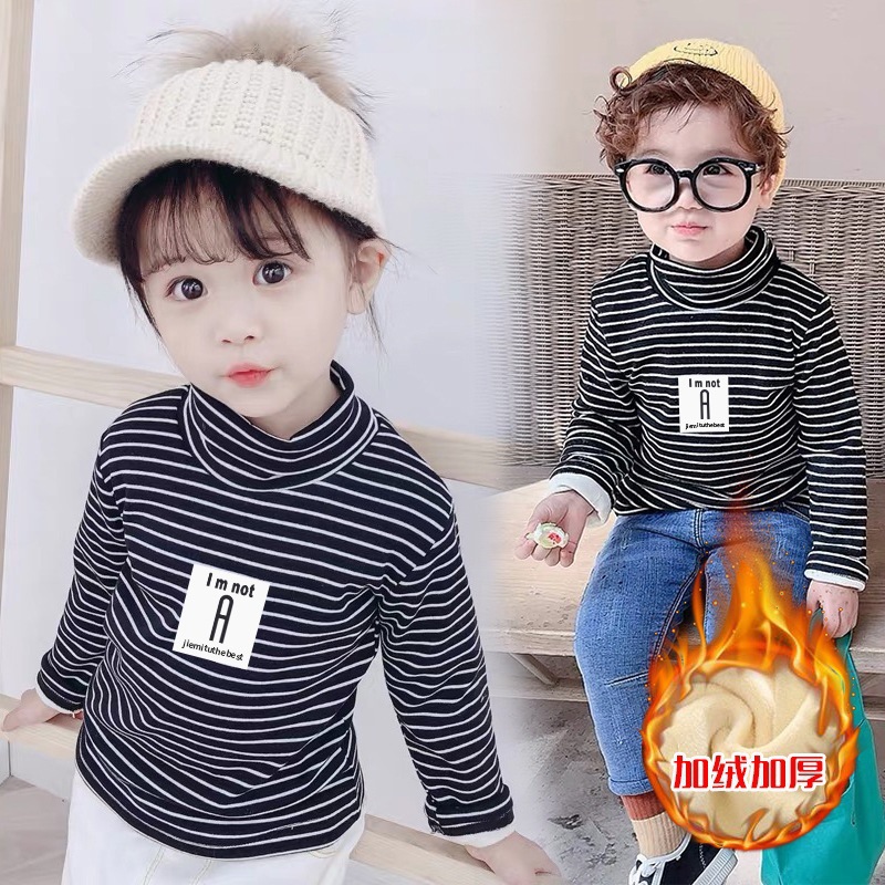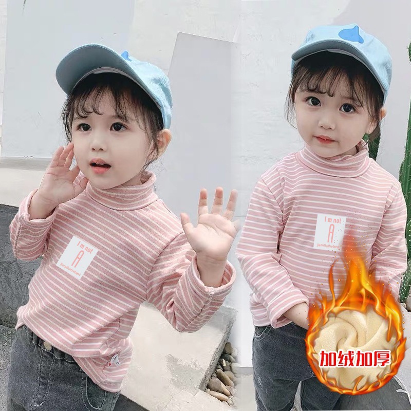 어린이 벨벳 두꺼운 반 터틀넥 가을, 겨울 따뜻한 탑 소년과 소녀를위한 긴팔 아기 속옷 바닥 셔츠