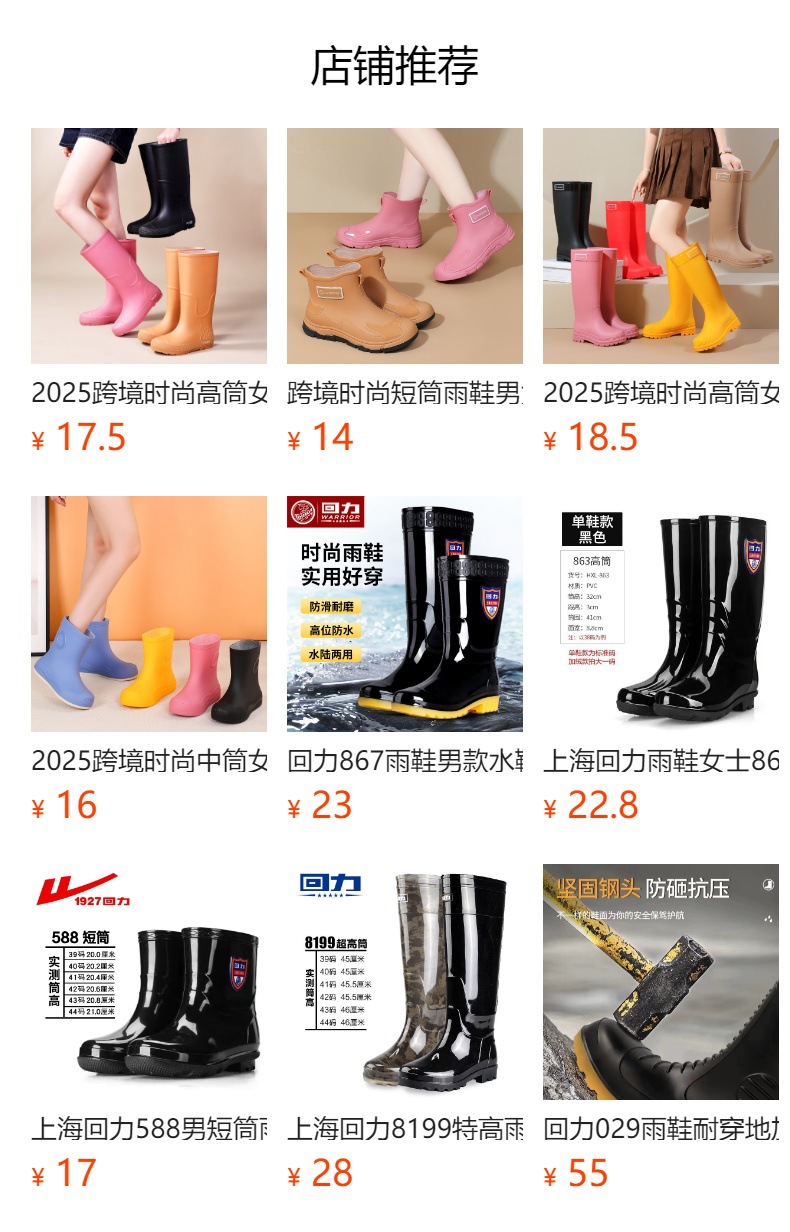 2025 크로스보더 패션 하이탑 여성 레인부츠 미끄럼 방지 장화 워터부츠 방수 신발 레인 고무신 캐주얼 다용도 레인부츠스토어 가기