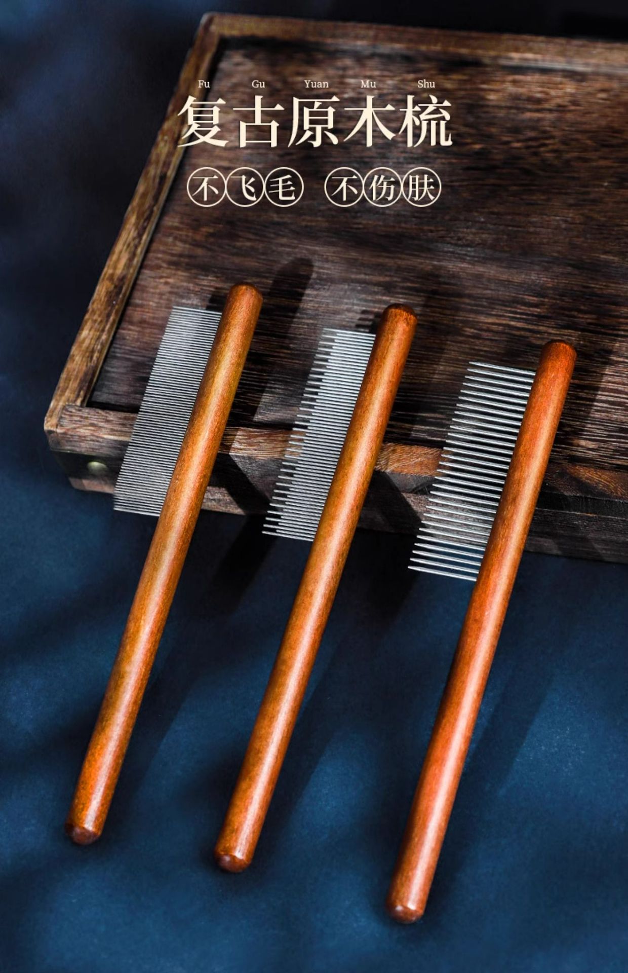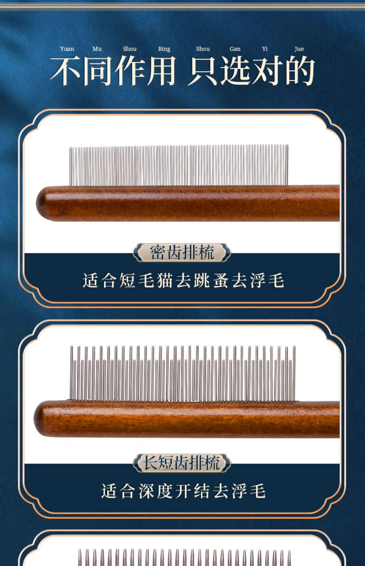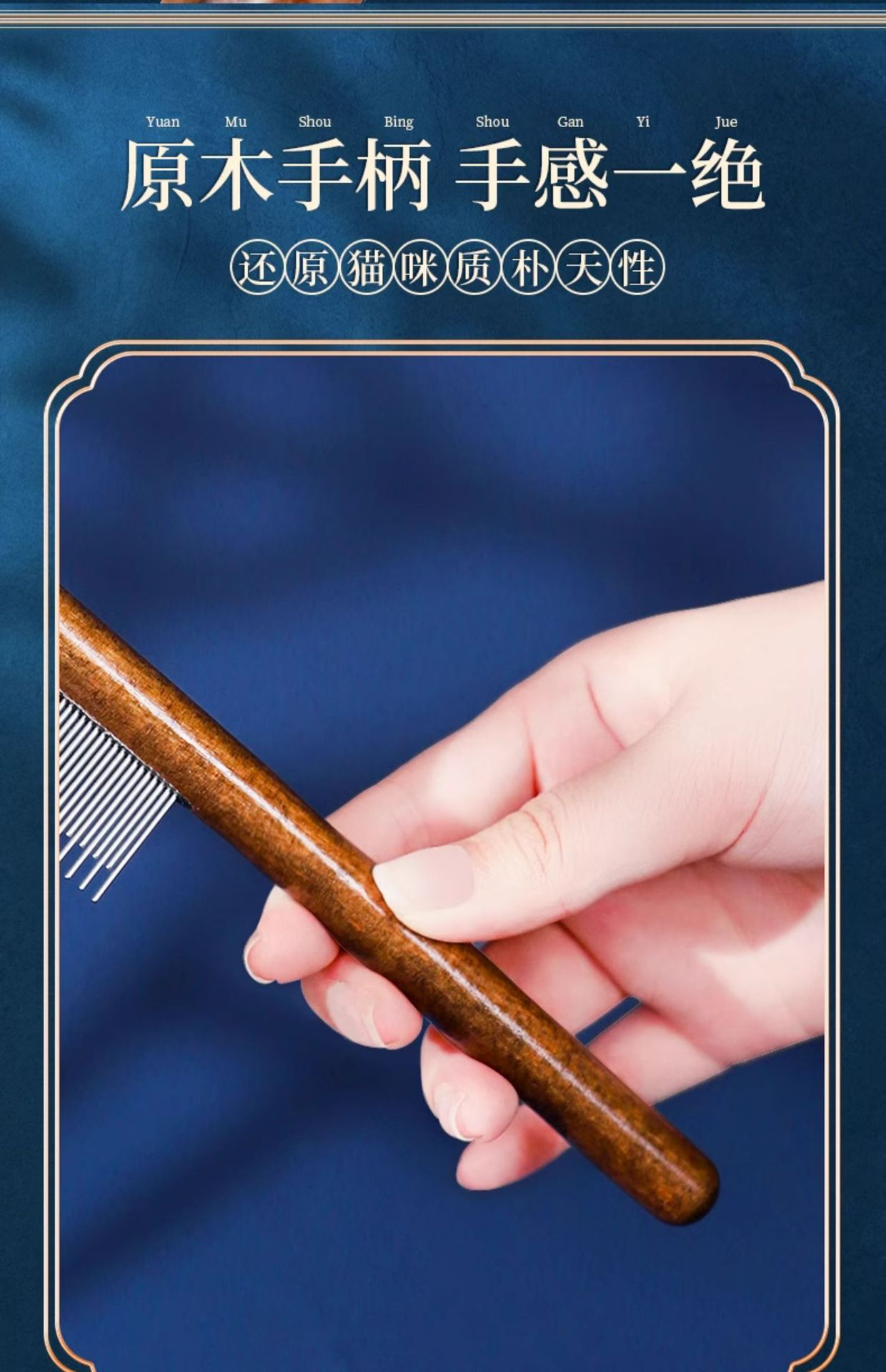 • 로즈우드 마호가니 컬러 - 촘촘한 빗 [단발 - 벼룩 제거 및 떠다니는 털] + 둥근 구멍 손톱깎이