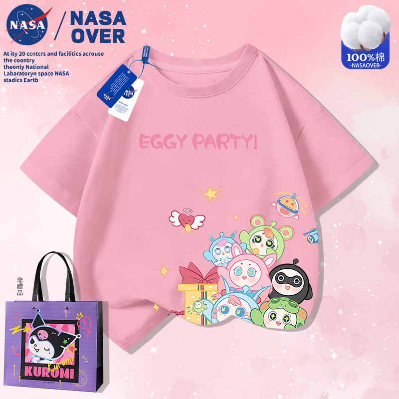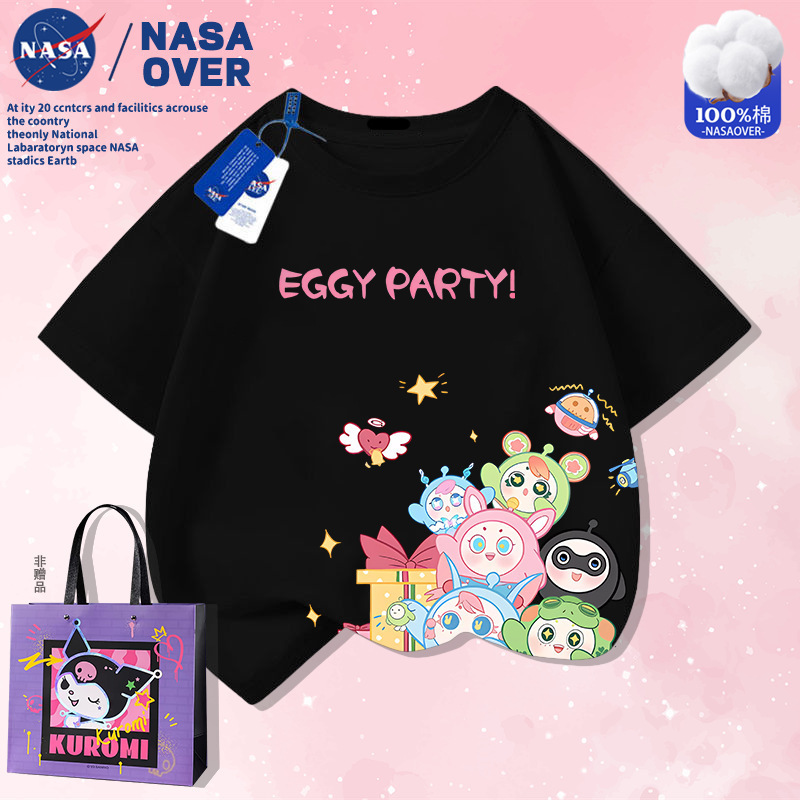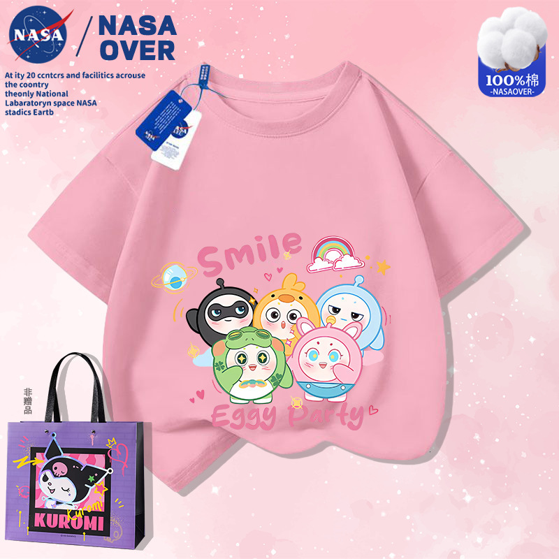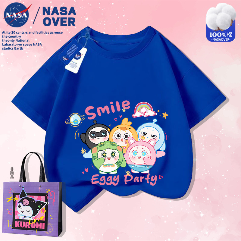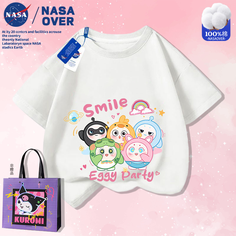 NASA 공동 브랜드 슈퍼 귀여운 계란 소년 5개의 작은 만화 티셔츠 여름 중대형 어린이 순면 반팔 캐주얼 패션 탑스토어 가기