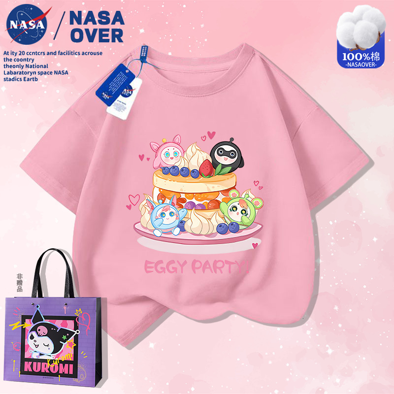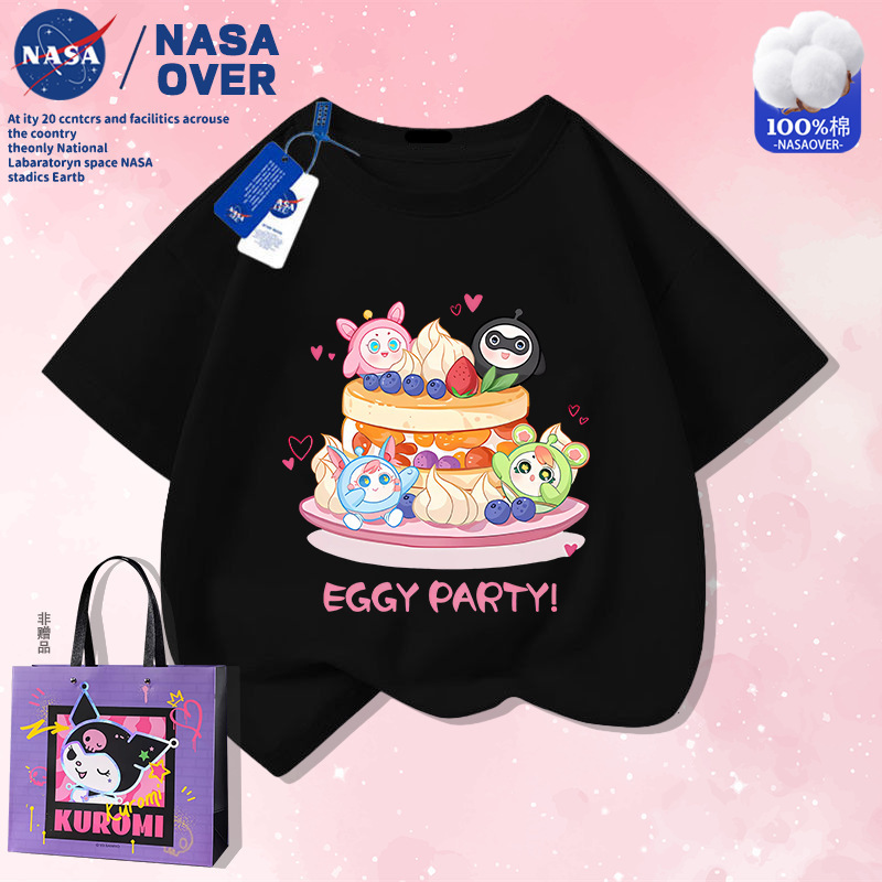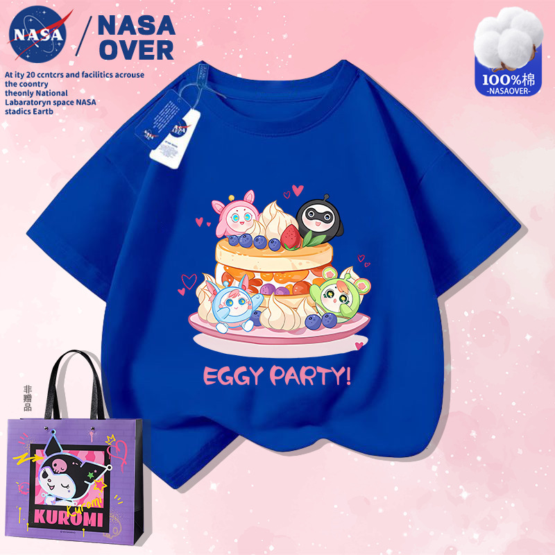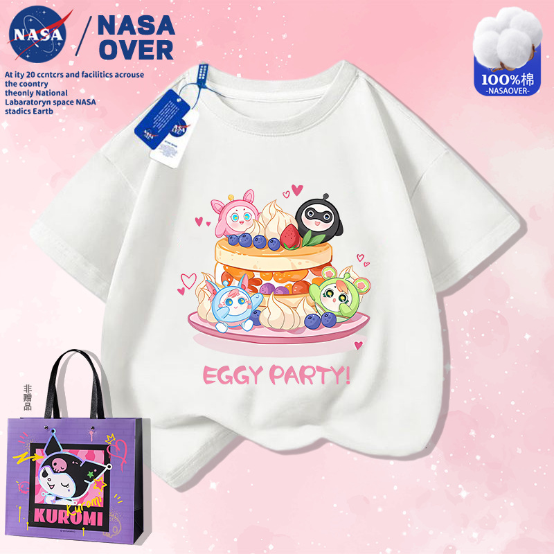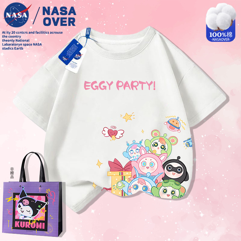 NASA 공동 브랜드 슈퍼 귀여운 계란 소년 5개의 작은 만화 티셔츠 여름 중대형 어린이 순면 반팔 캐주얼 패션 탑스토어 가기