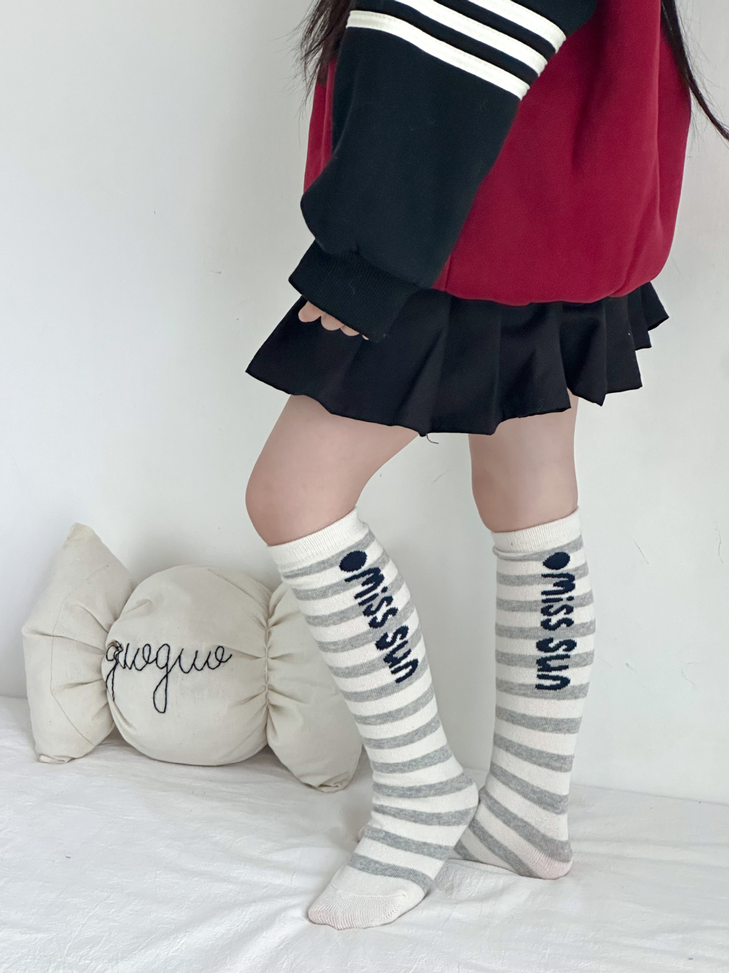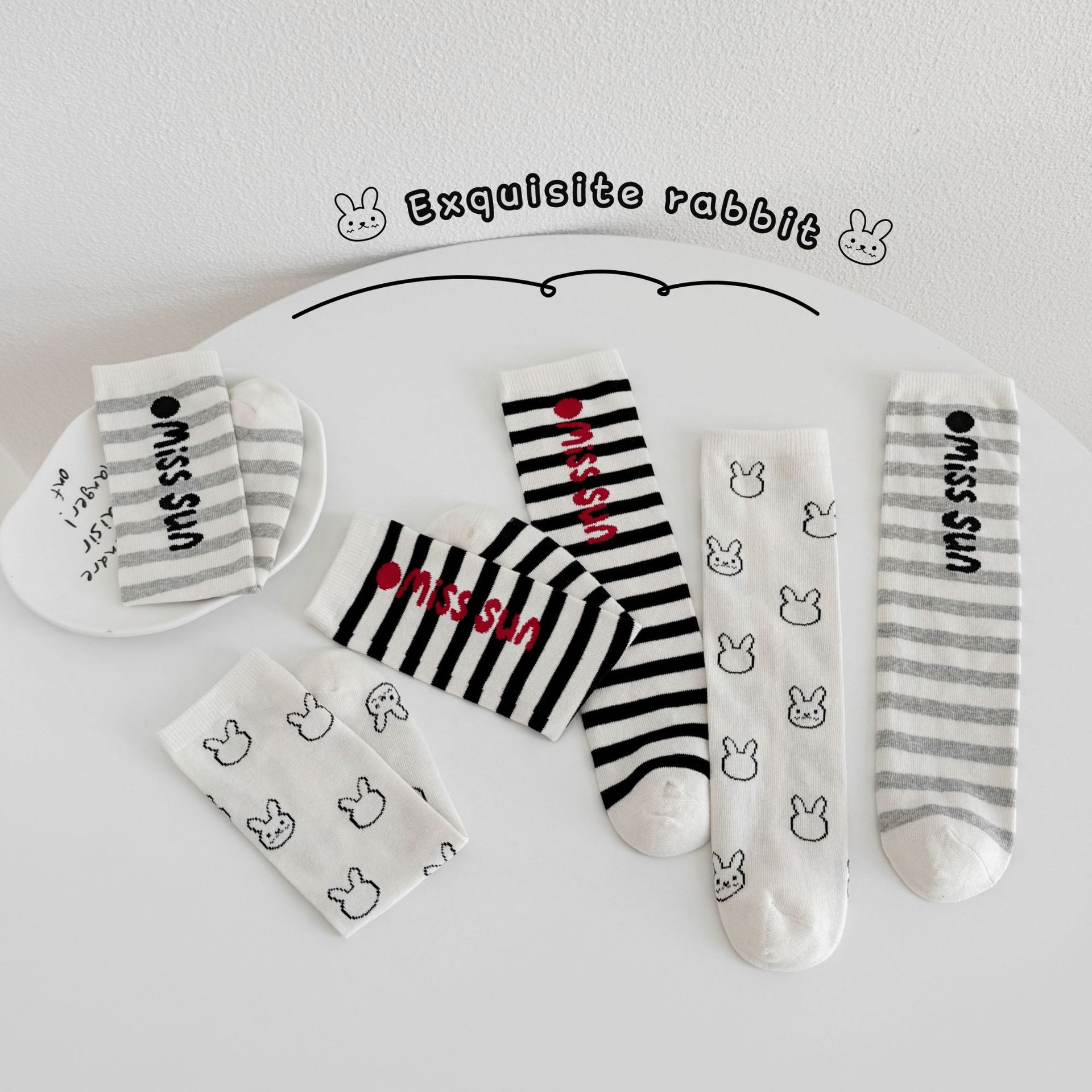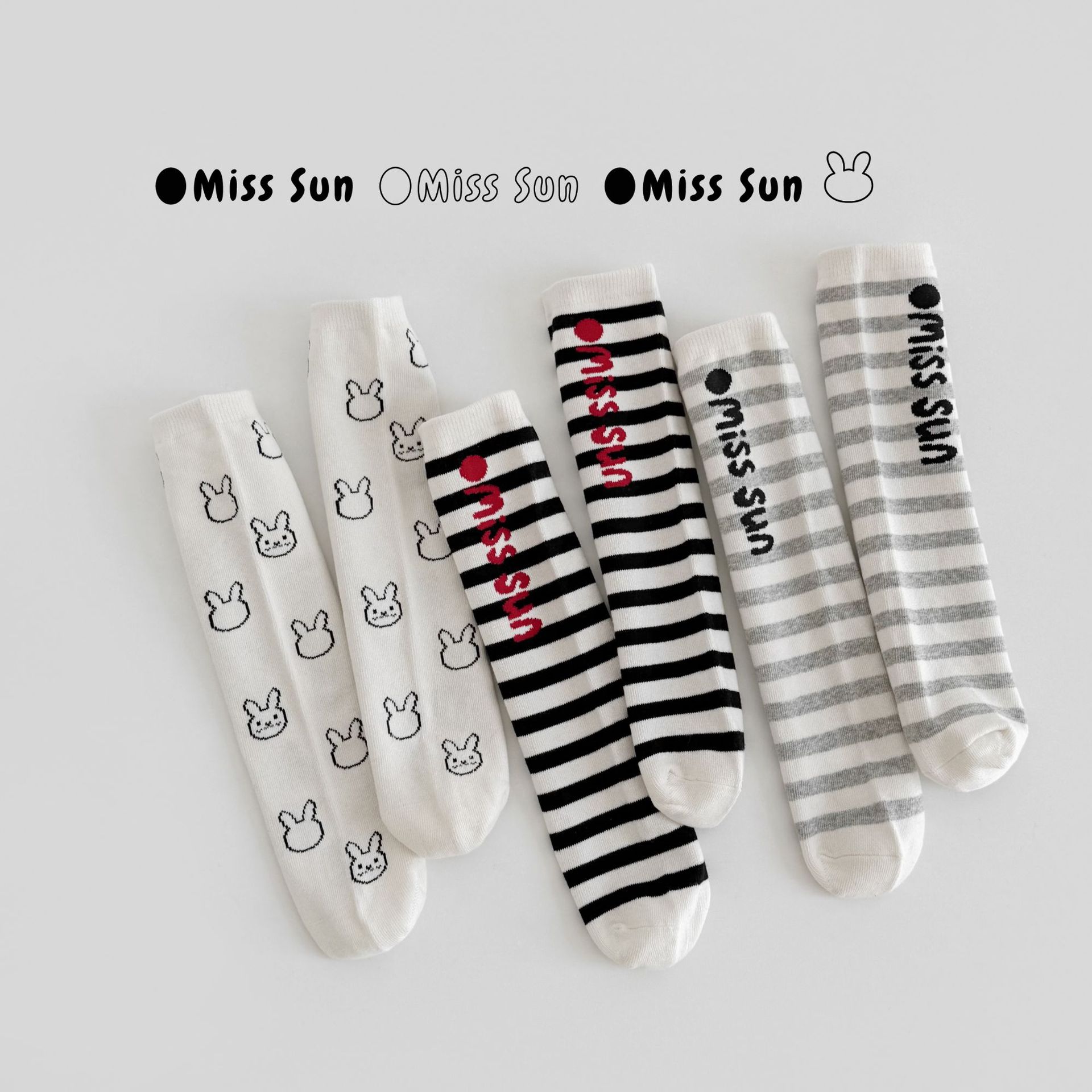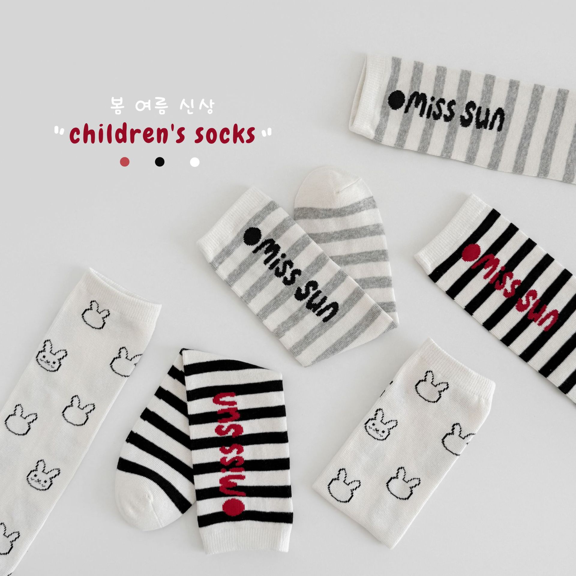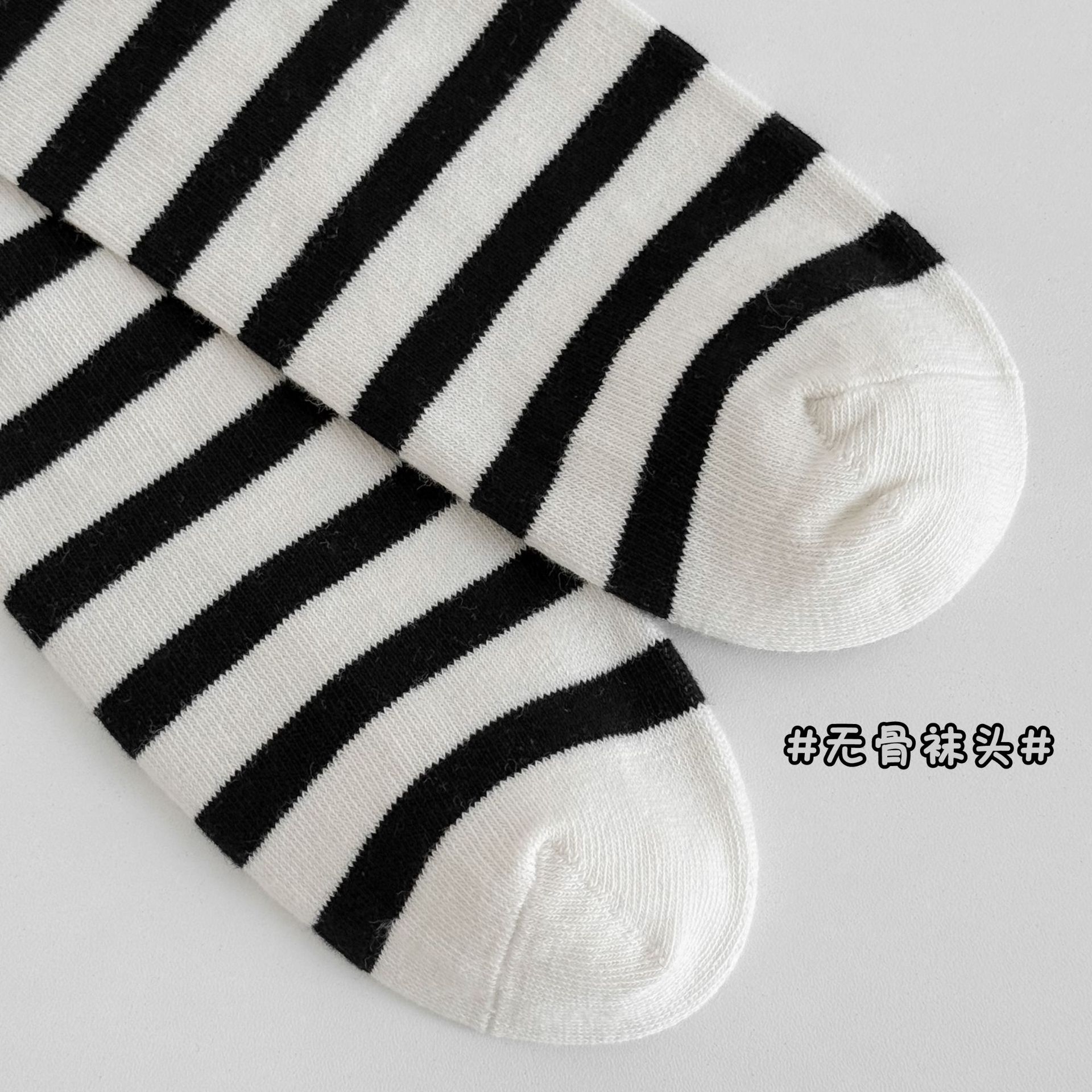 Sun Miss 어린이 가을, 겨울 양말 흑백 줄무늬 긴면 양말 소년과 소녀를위한 한국 스타일 귀여운 만화 여성 종아리 양말
