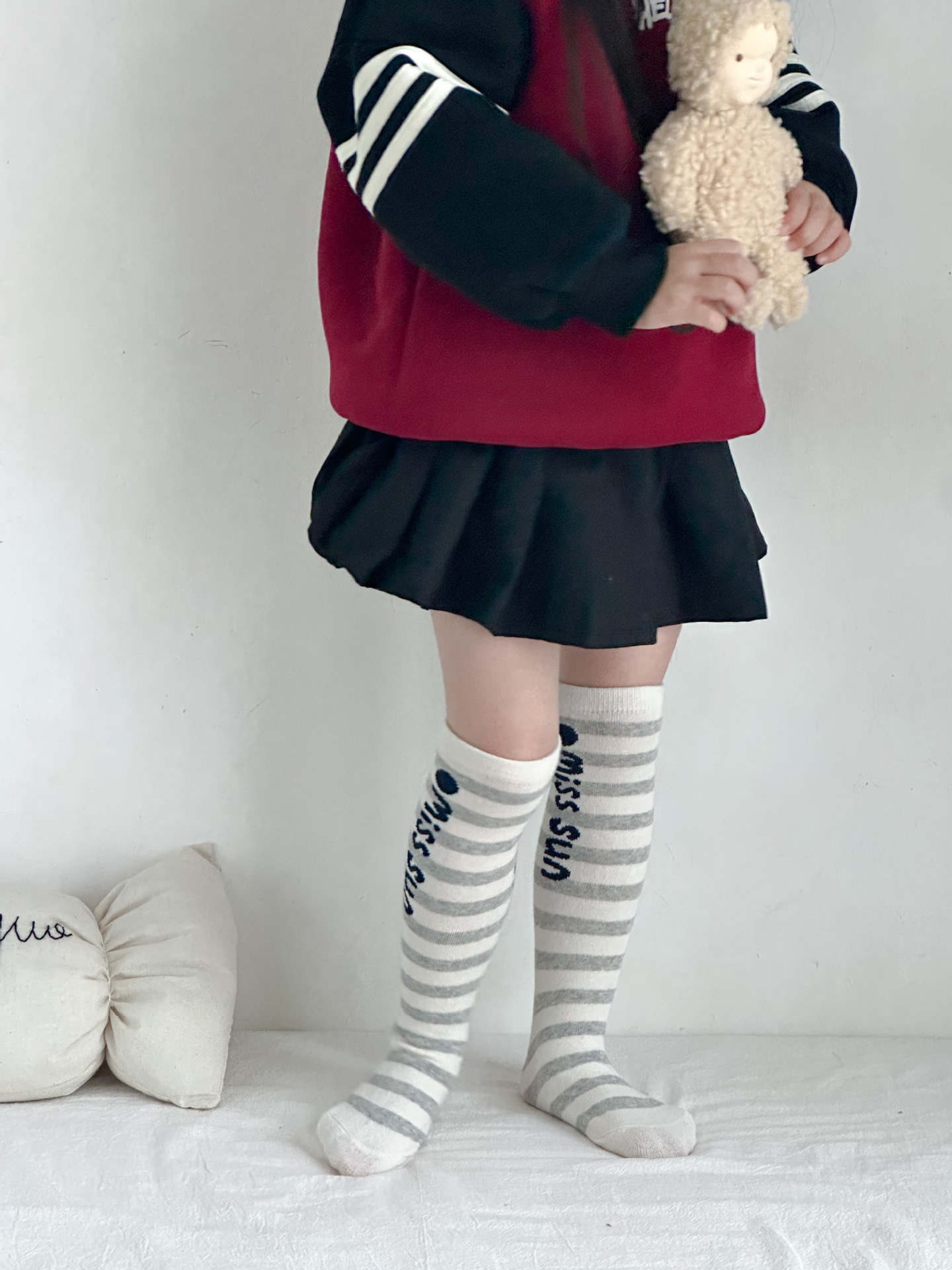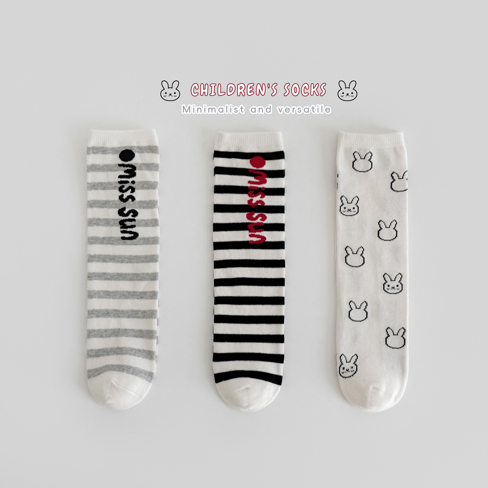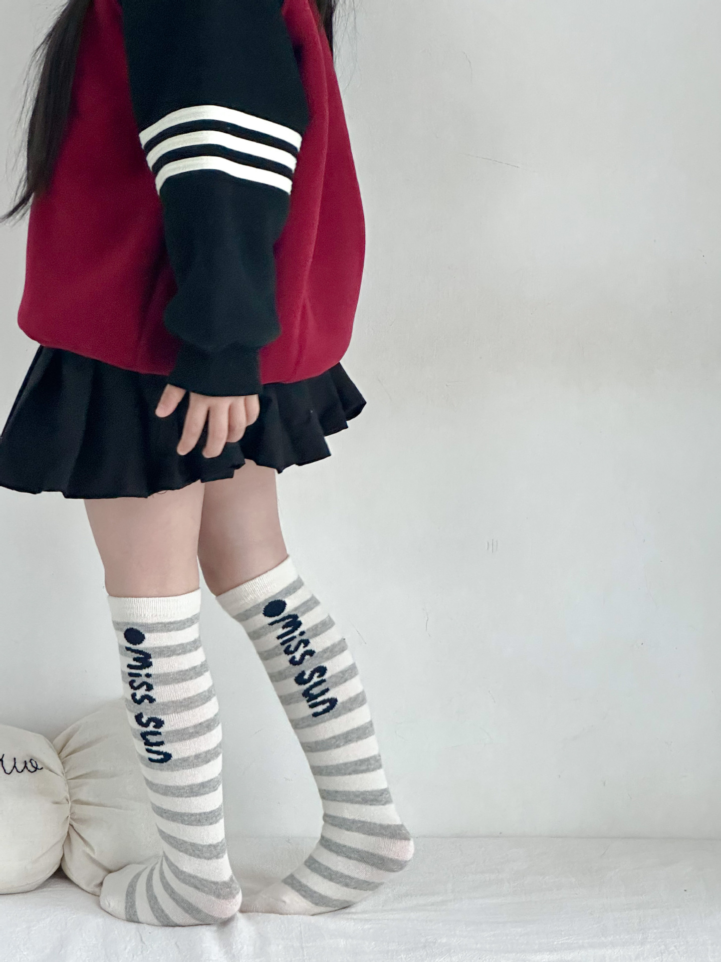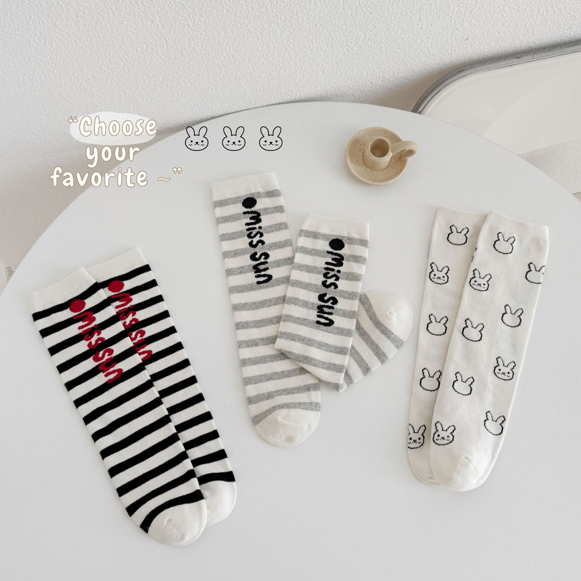 Sun Miss 어린이 가을, 겨울 양말 흑백 줄무늬 긴면 양말 소년과 소녀를위한 한국 스타일 귀여운 만화 여성 종아리 양말