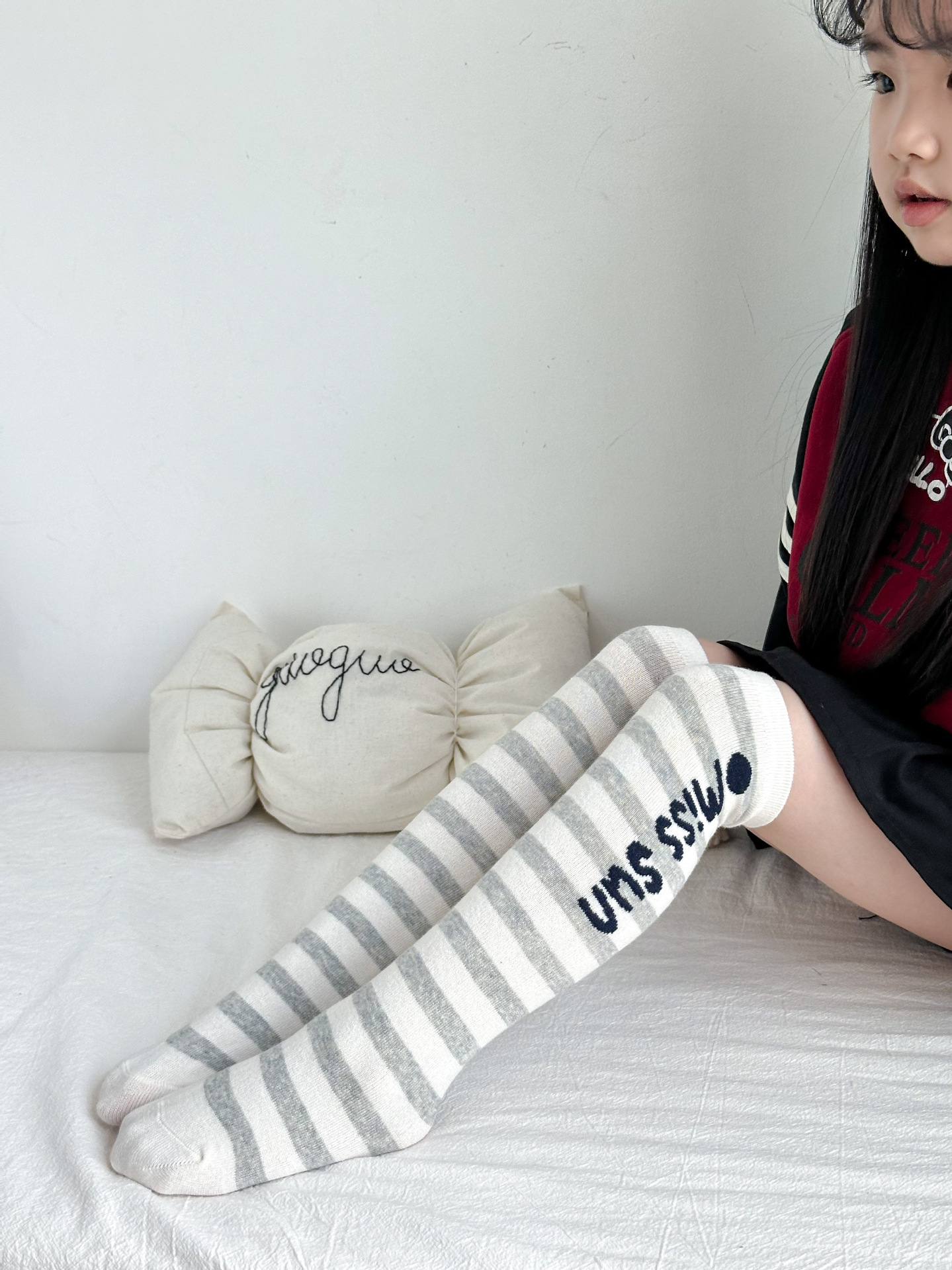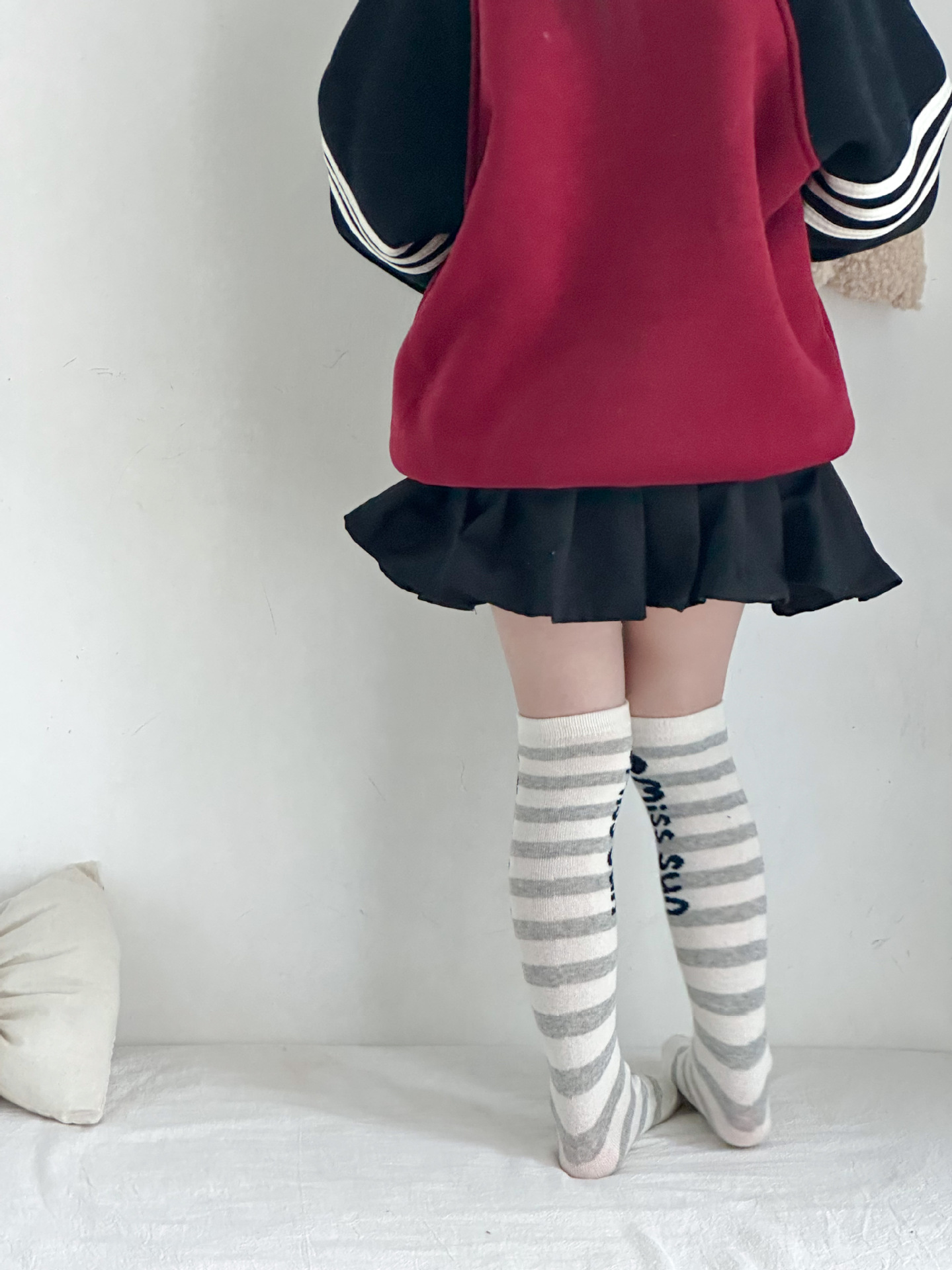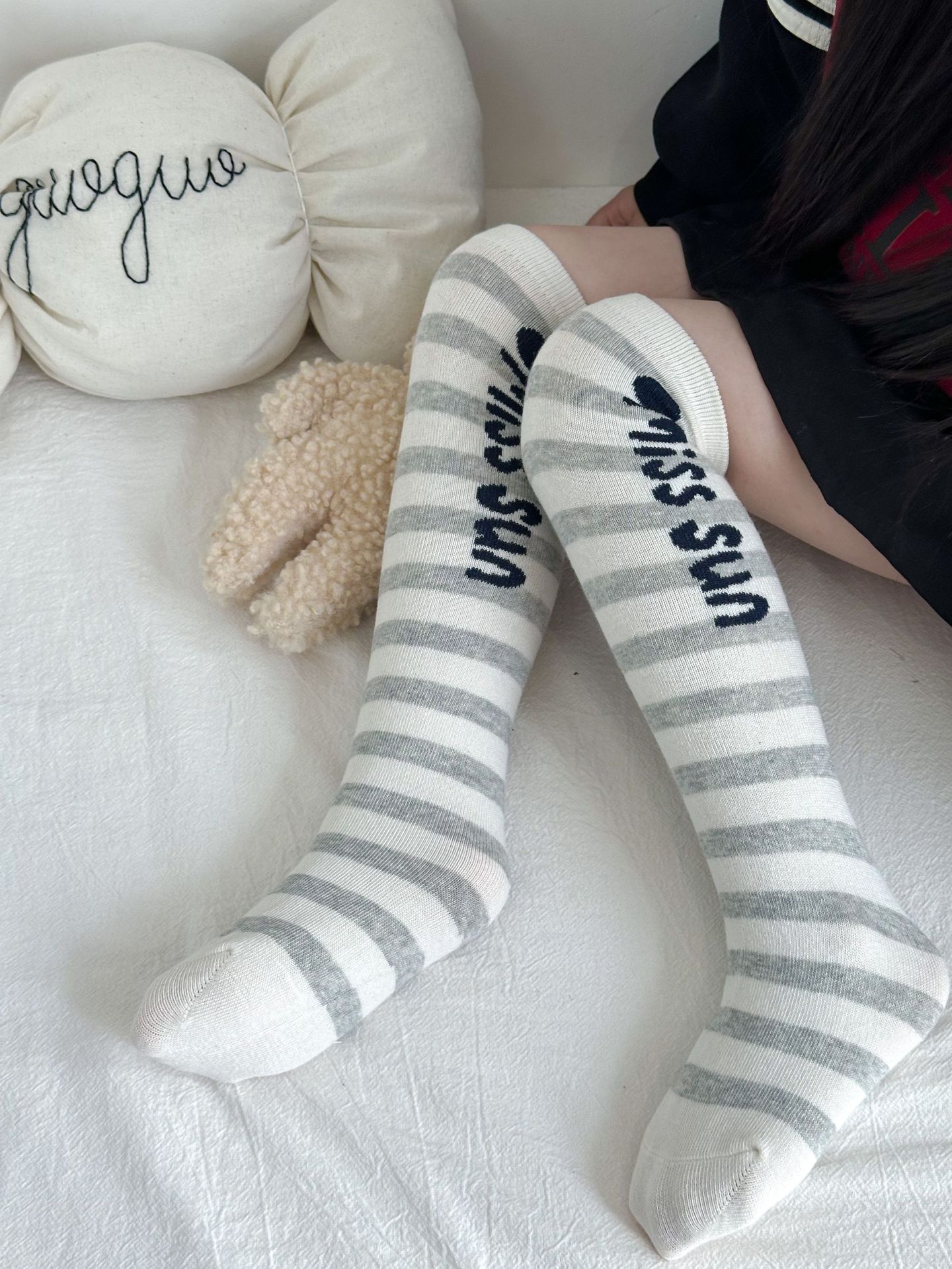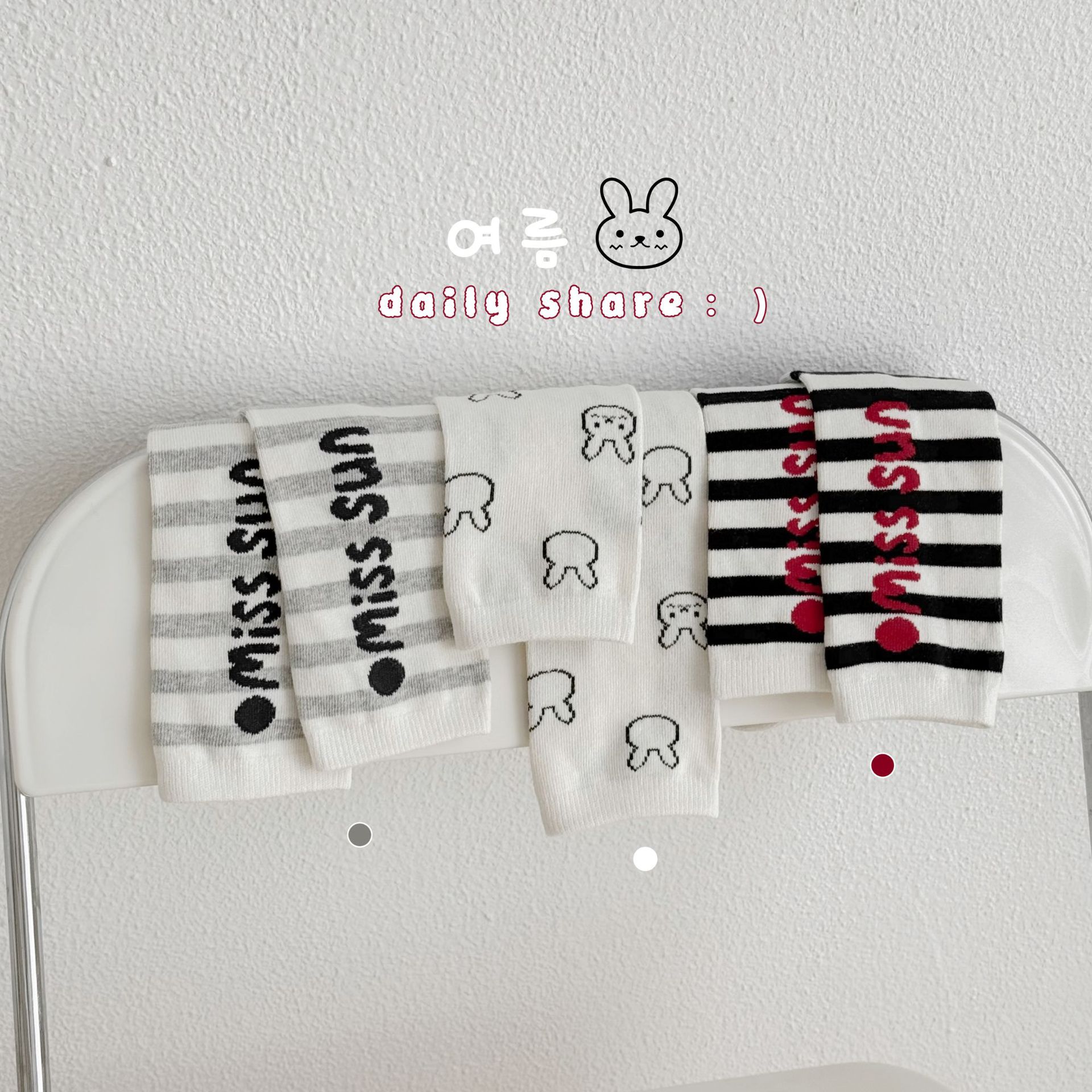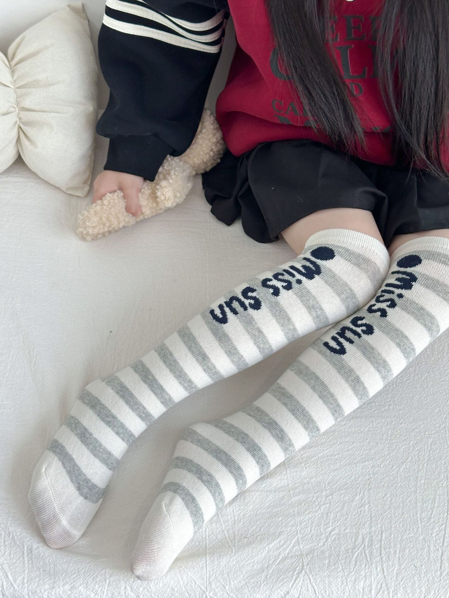 Sun Miss 어린이 가을, 겨울 양말 흑백 줄무늬 긴면 양말 소년과 소녀를위한 한국 스타일 귀여운 만화 여성 종아리 양말