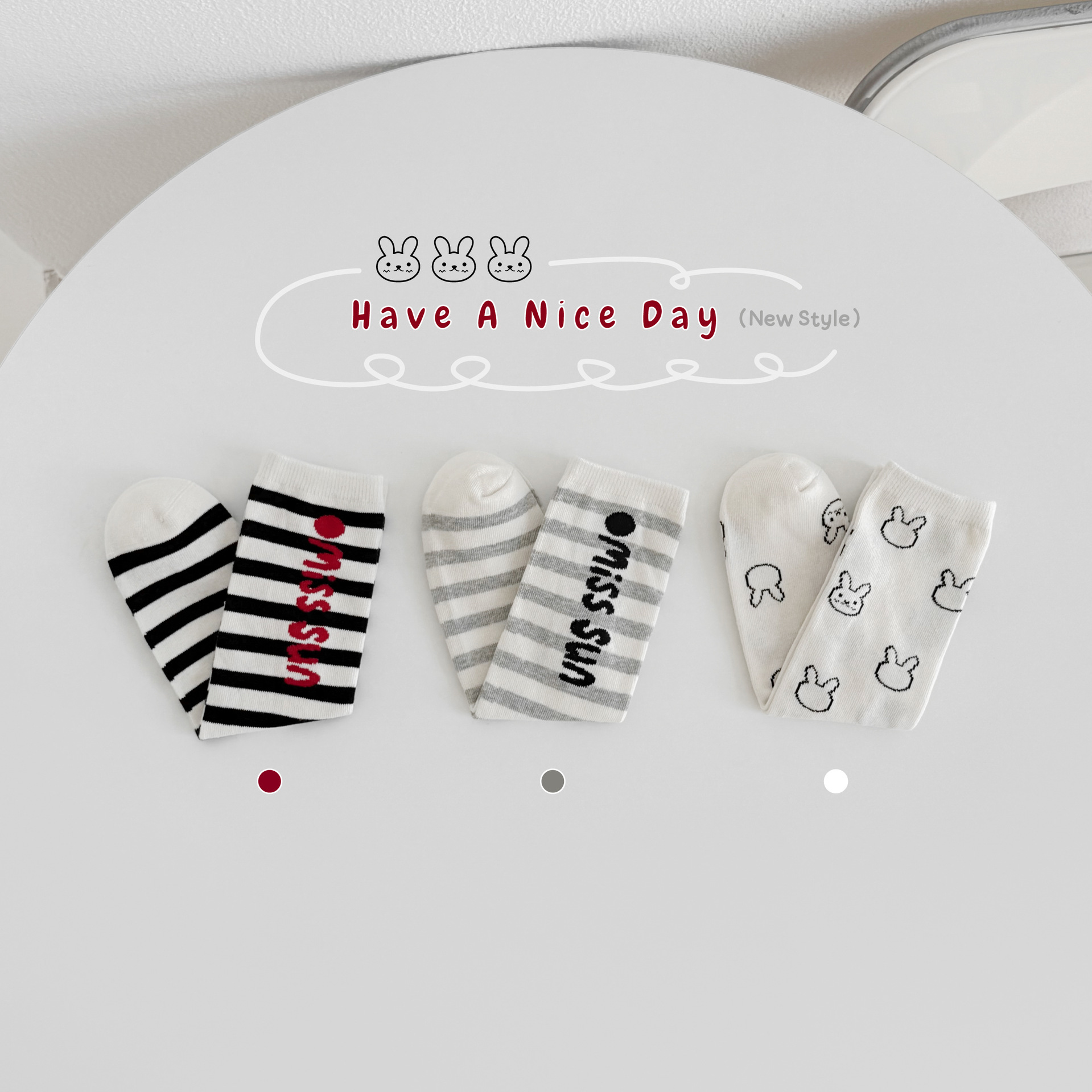 包装:3双一包,三色各一双,不支持选色,每双带有袜卡可挂。