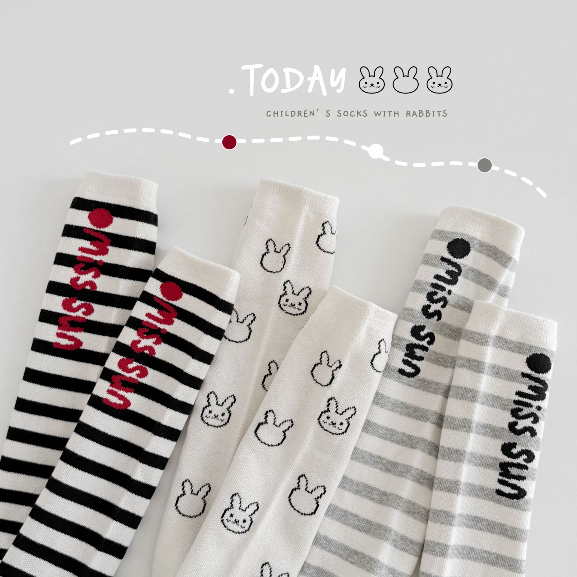 Sun Miss 어린이 가을, 겨울 양말 흑백 줄무늬 긴면 양말 소년과 소녀를위한 한국 스타일 귀여운 만화 여성 종아리 양말스토어 가기