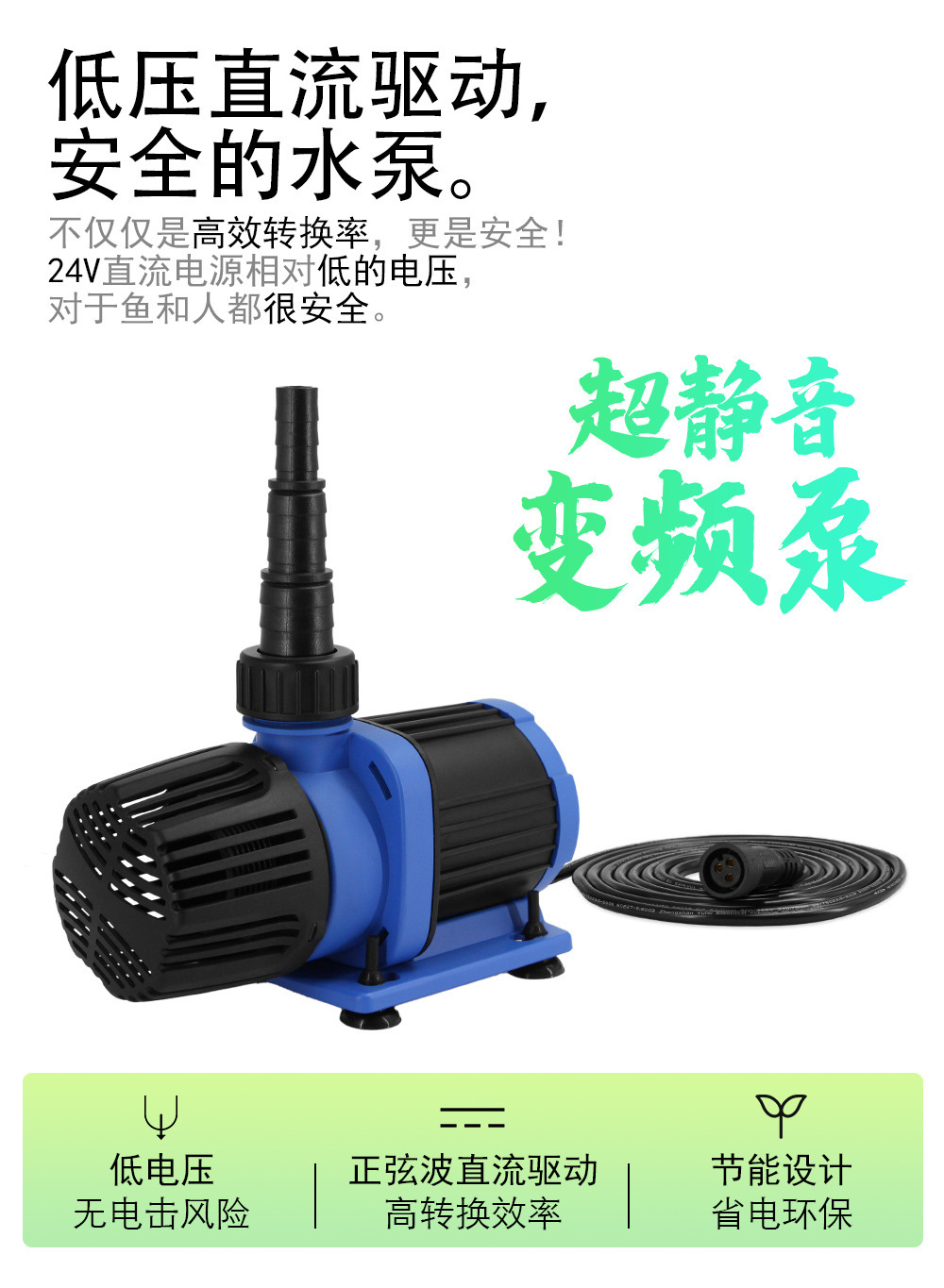 수륙양용 무음 가변 주파수 워터 펌프 수조 및 연못 수중 펌프 DC 저압 안전 에너지 절약형 필터 펌프
