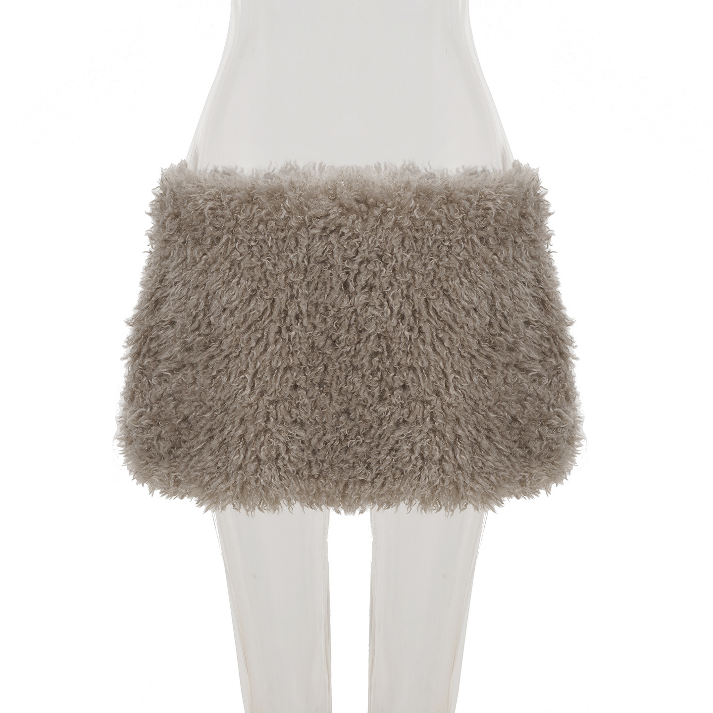프렌치 스타일 핫걸 모피 스커트, 유고슬라비아 스타일 여성 연예인 슬리밍 및 힙 커버 초짧은 미니 스커트스토어 가기