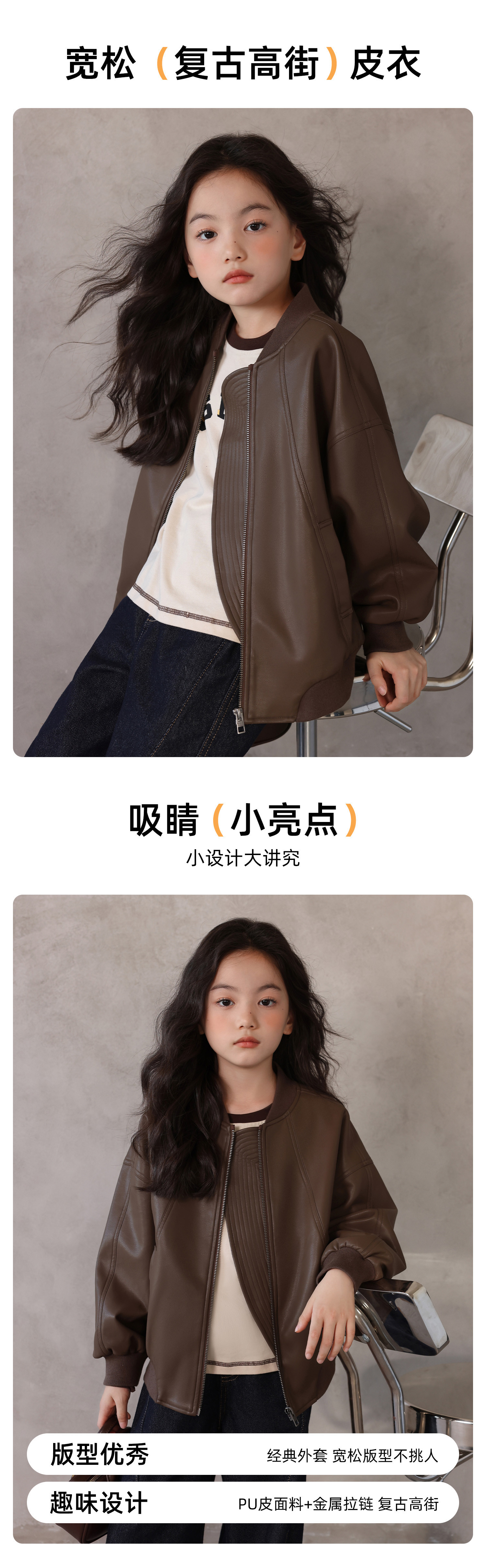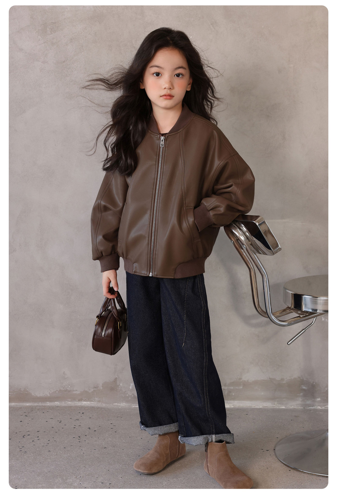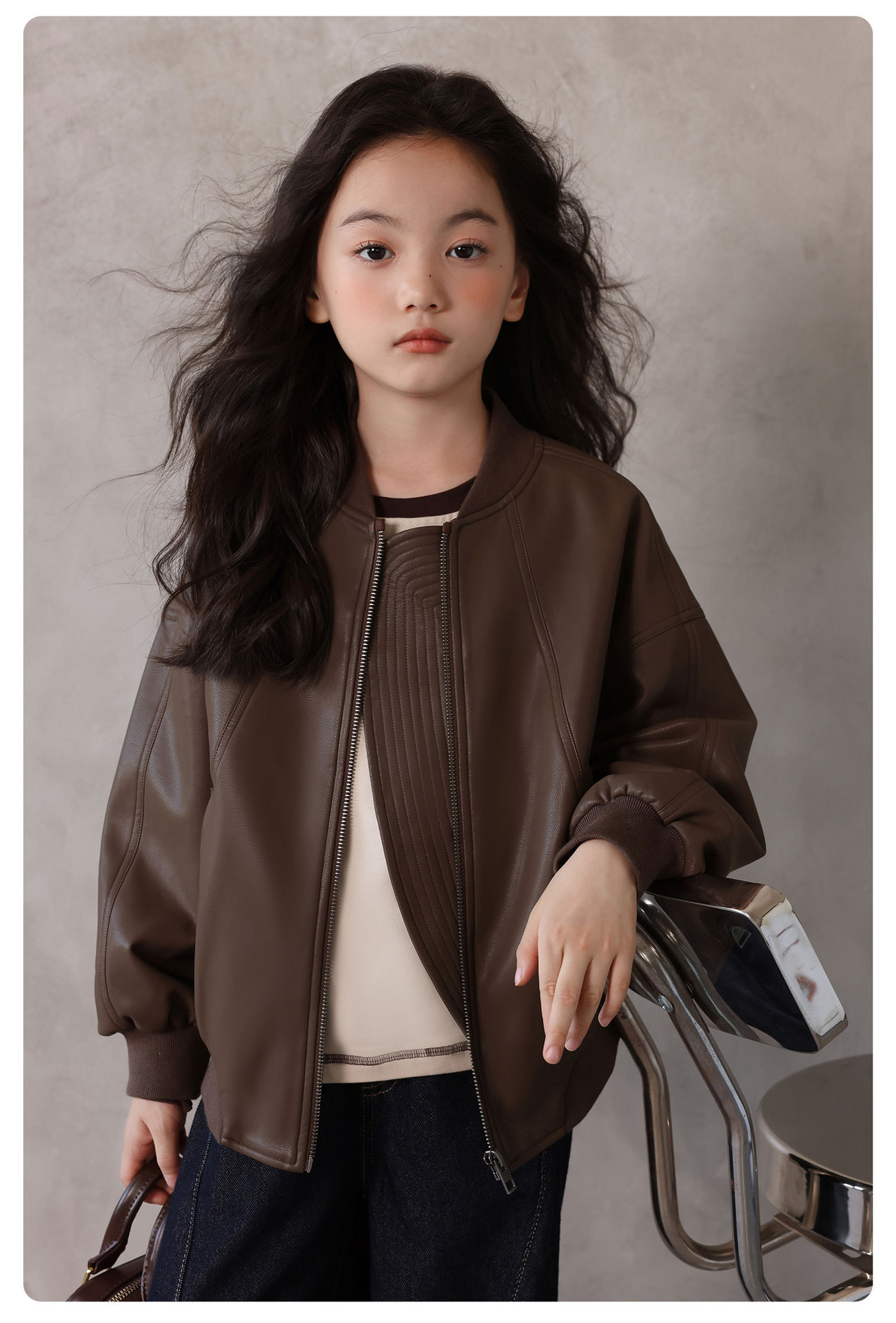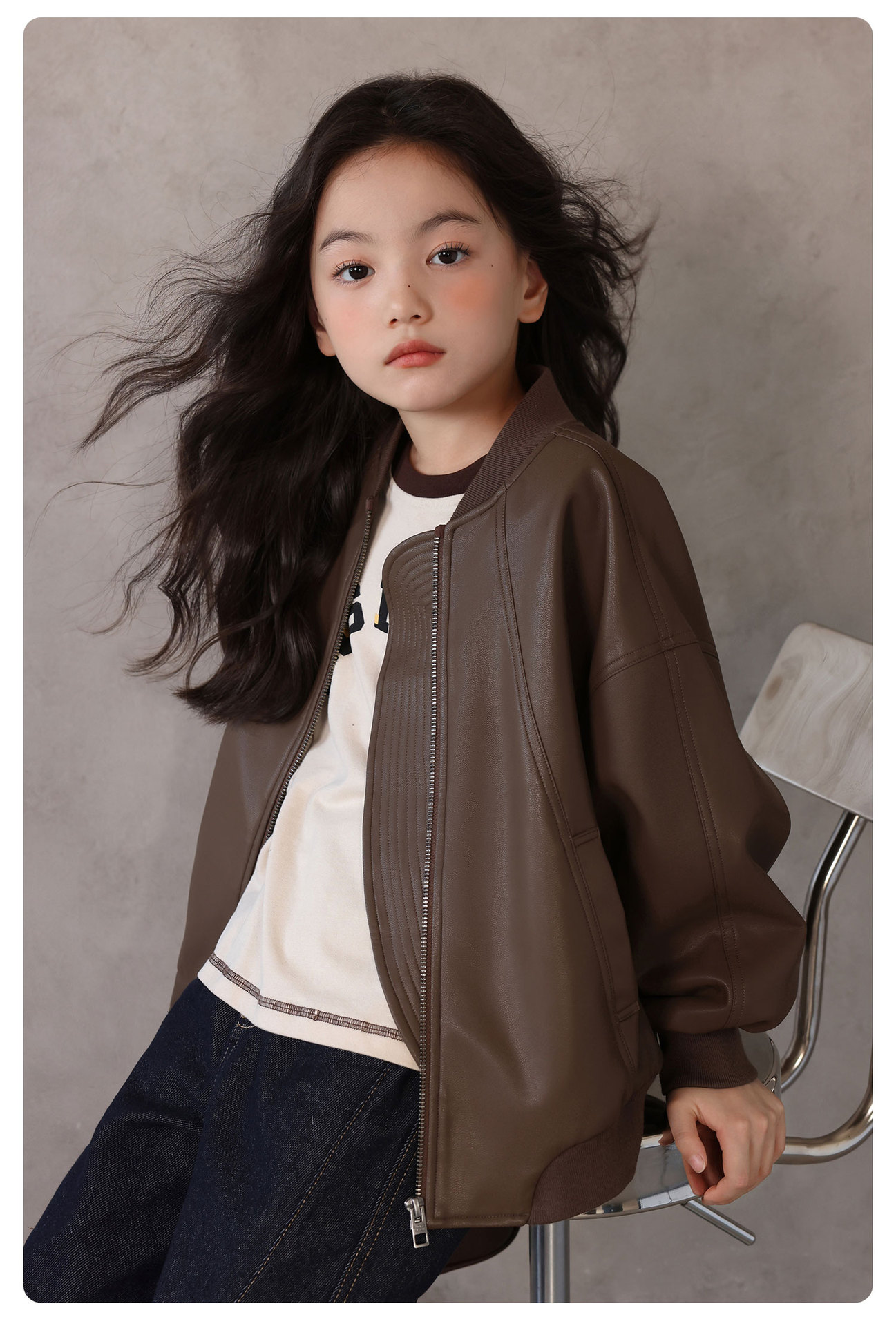 푸딩 하루 아동 재킷 2025 가을 유행 멋진 스타일 소녀 가죽 코트 실제 상업용 흰색 소녀 재킷 PU 가죽스토어 가기