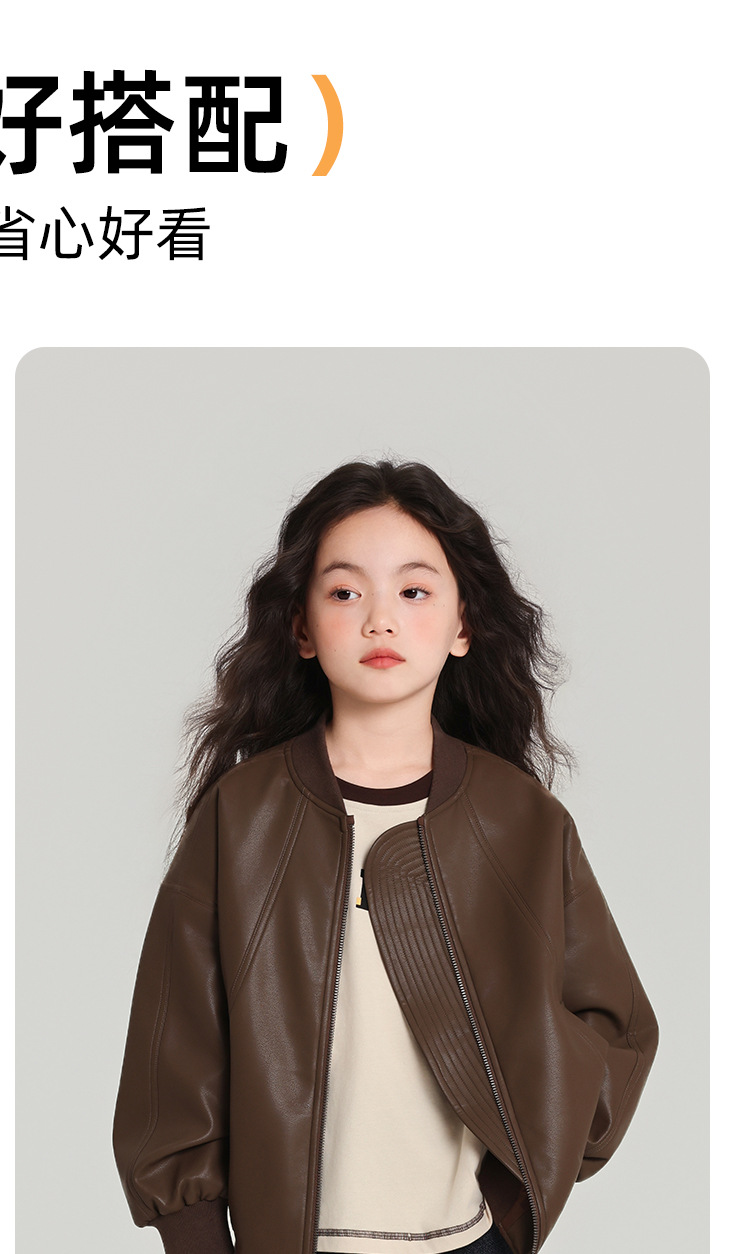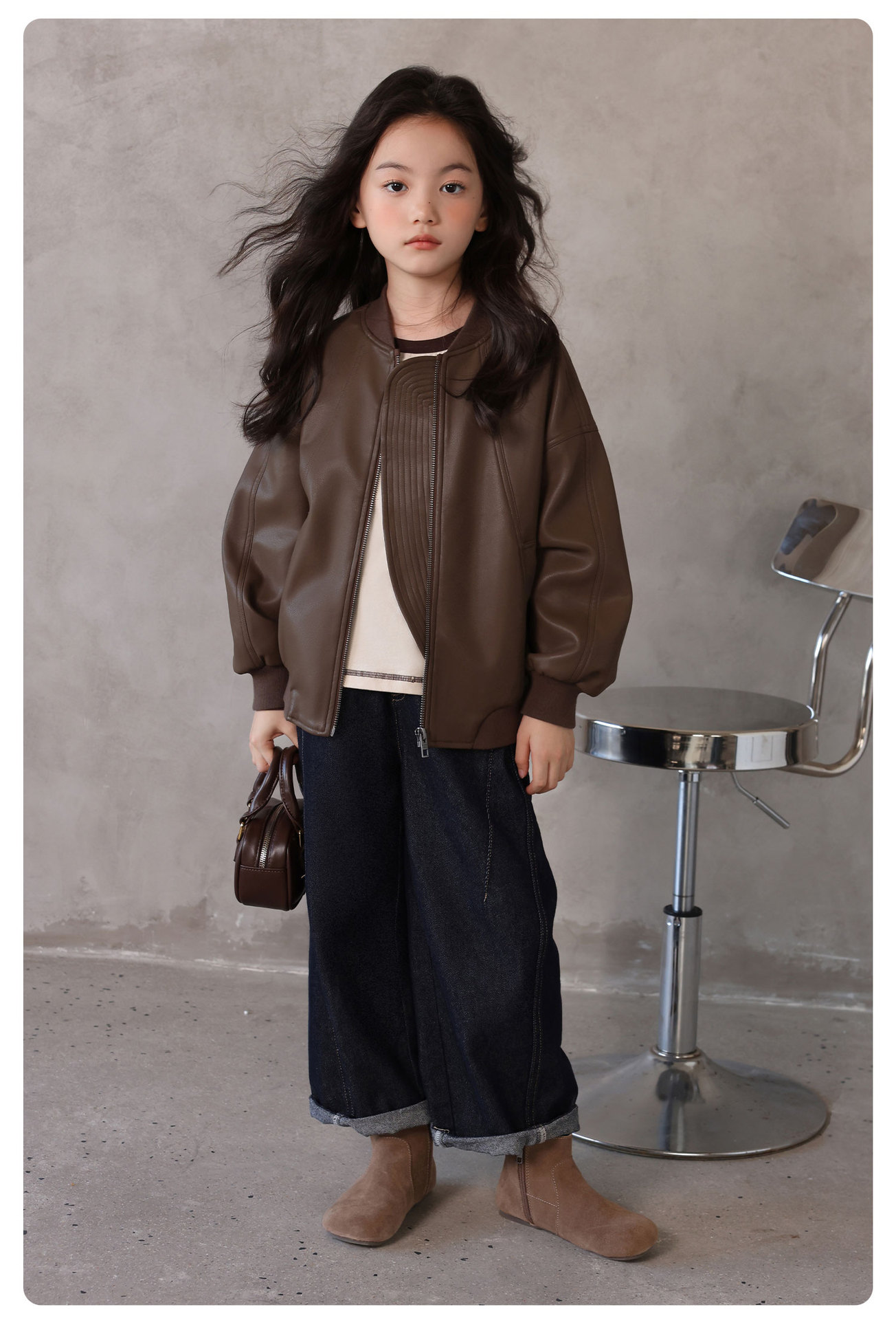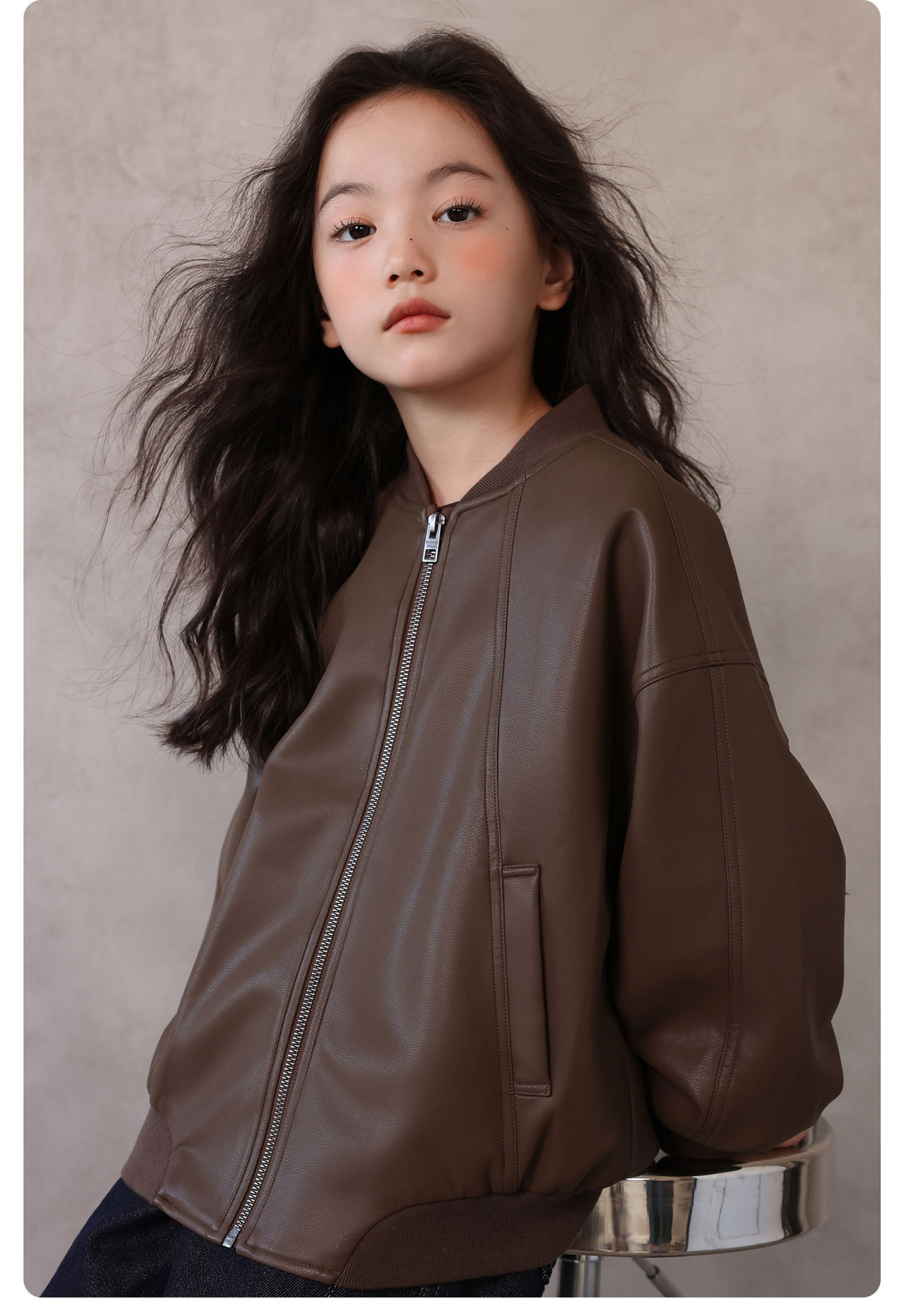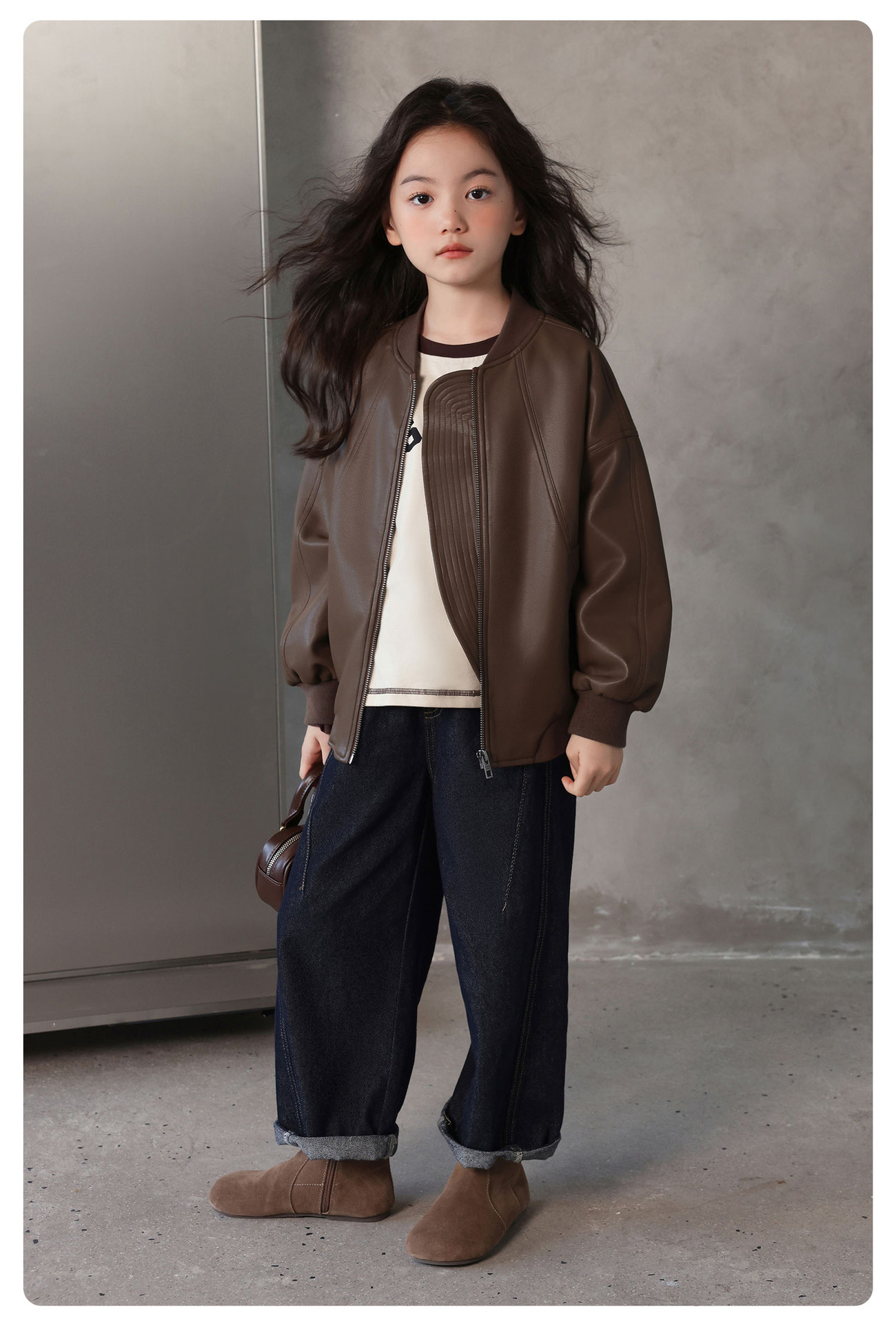 푸딩 하루 아동 재킷 2025 가을 유행 멋진 스타일 소녀 가죽 코트 실제 상업용 흰색 소녀 재킷 PU 가죽스토어 가기