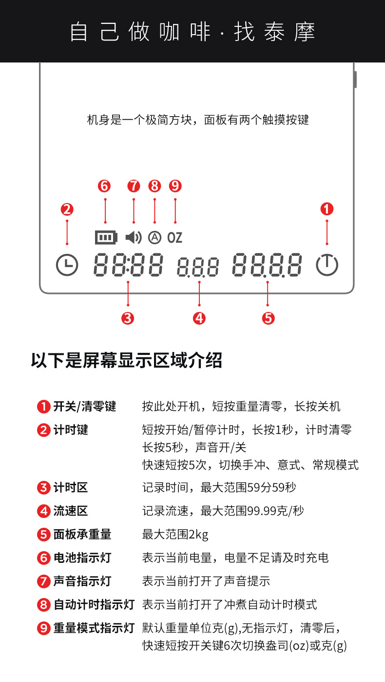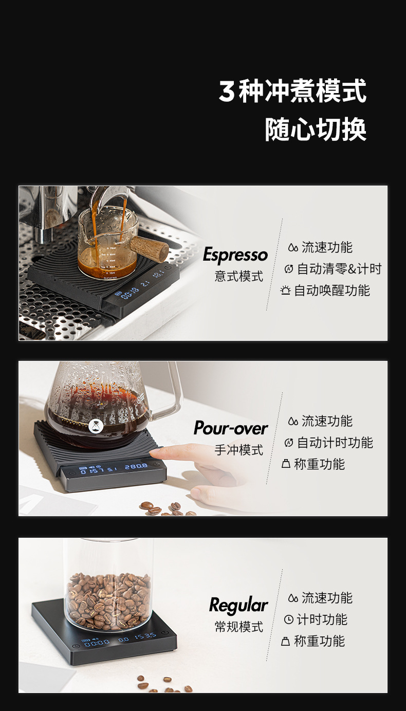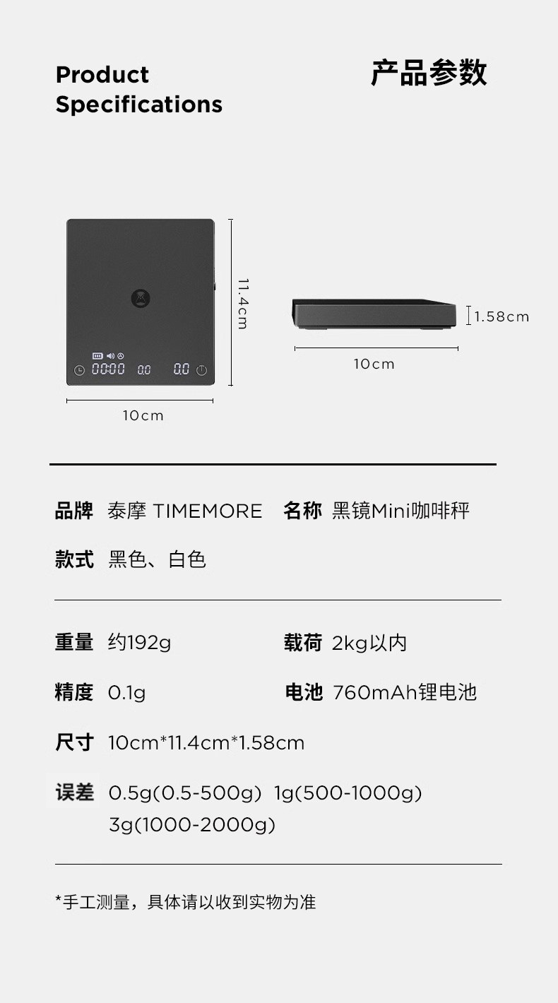 Taimo Black Mirror MINI 커피 전자 저울 미니 스마트 계량 에스프레소 손으로 끓인 전자 저울(유량 포함)스토어 가기