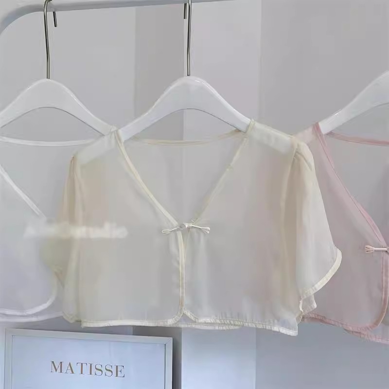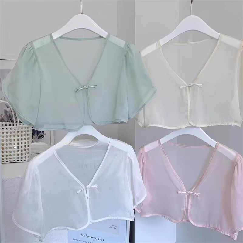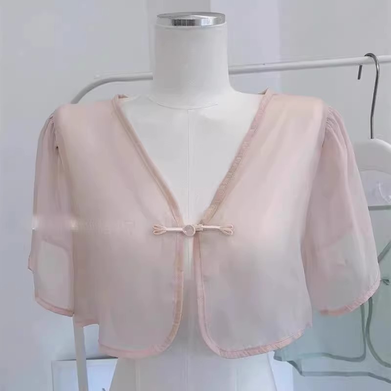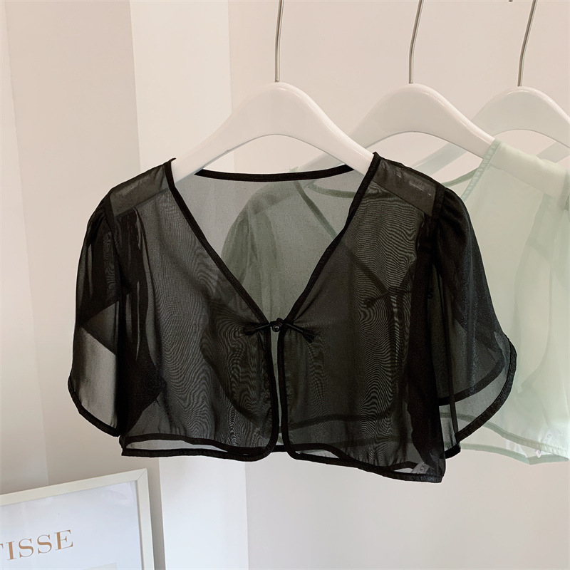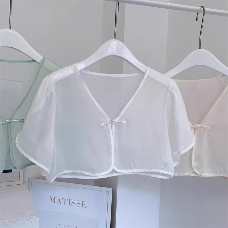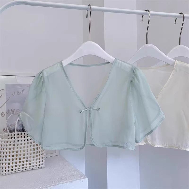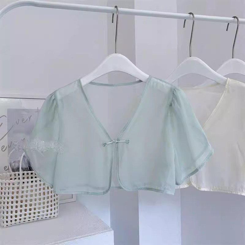 여성용 반팔 브이넥 숄, 얇은 스타일, 서스펜더 스커트, 양복 조끼 스타일, 여성용 짧은 버튼 시폰 여름 상의스토어 가기
