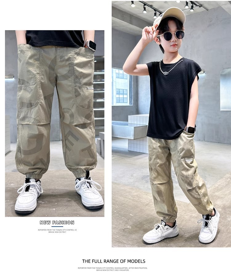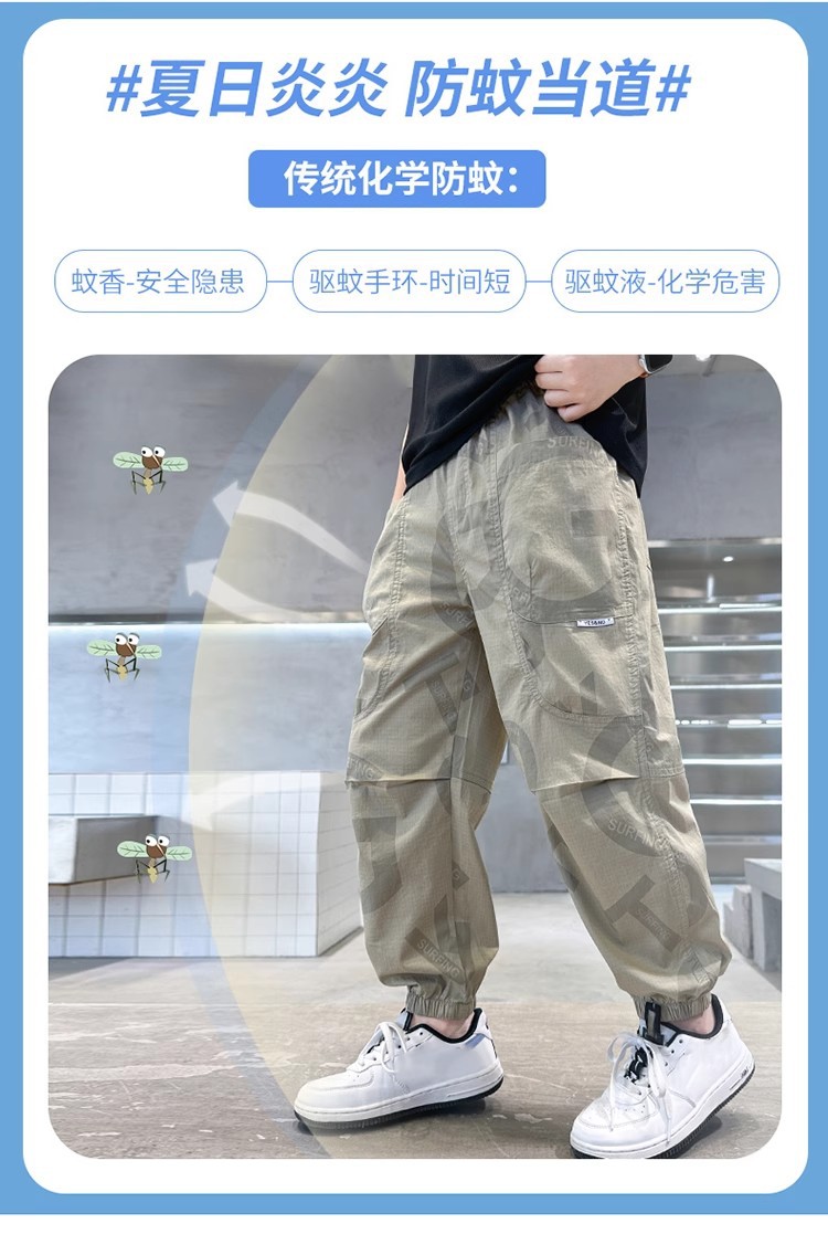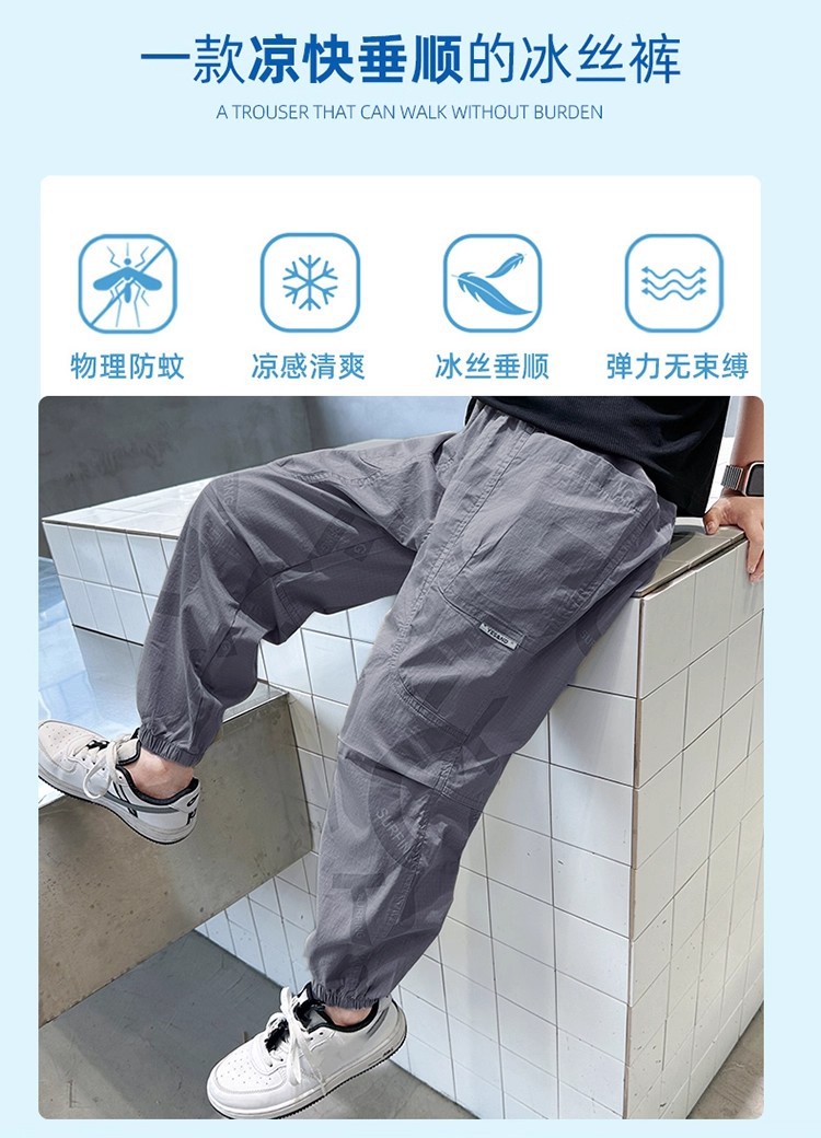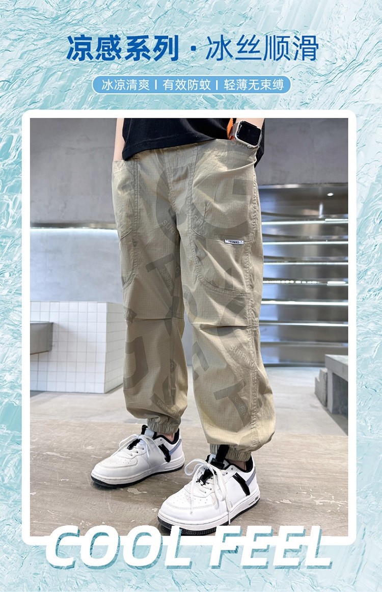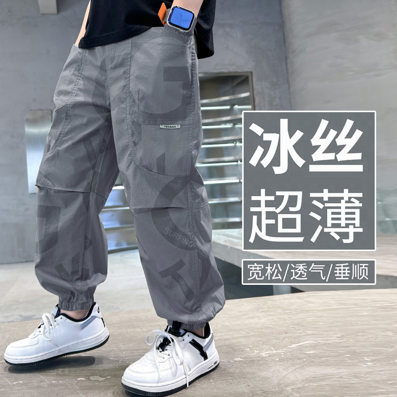 소년 모기 방지 바지 얇은 2025 새로운 스타일 중대형 어린이 여름 긴 바지 여름 어린이 스포츠 속건 바지 여름 착용스토어 가기