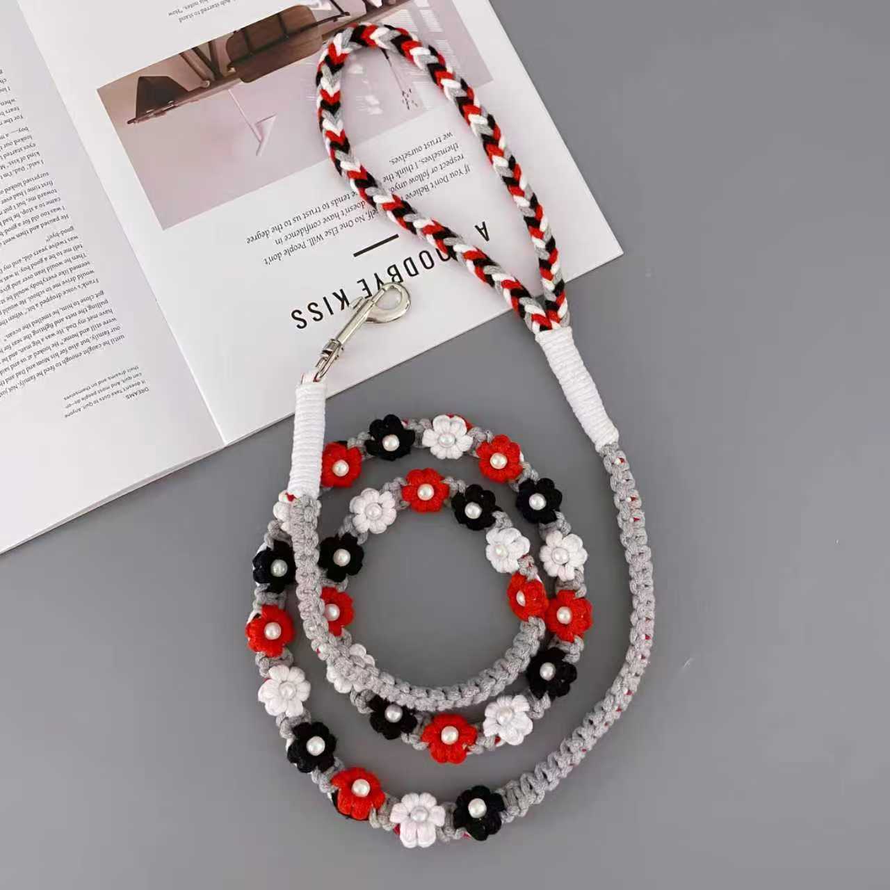 새로운 150cm( 59.06inch ) 중소형견에게 적합한 손으로 짠 다채로운 꽃무늬 개 가죽끈
