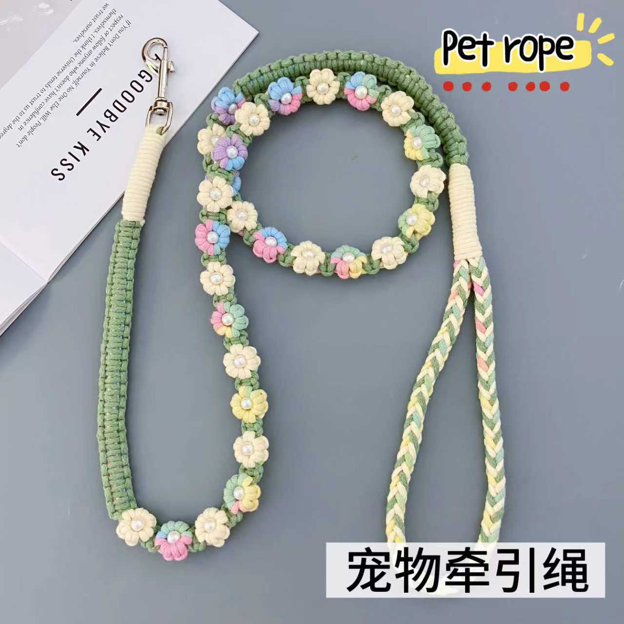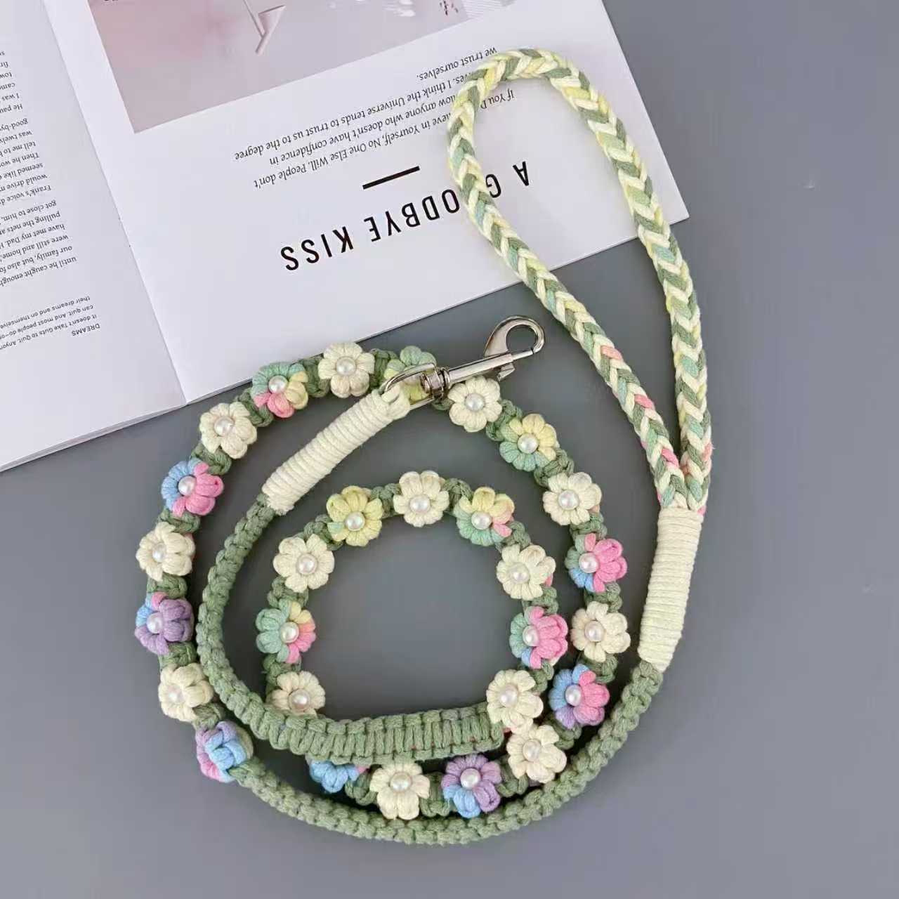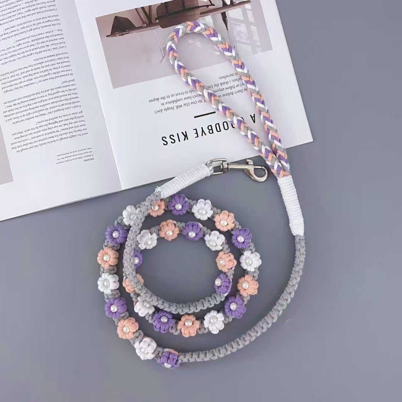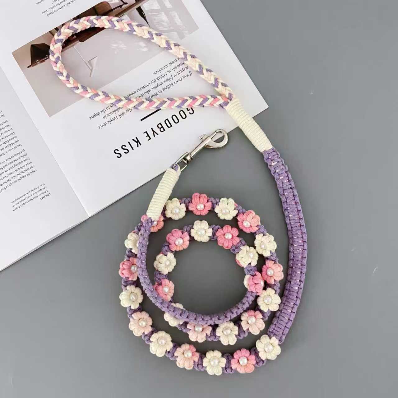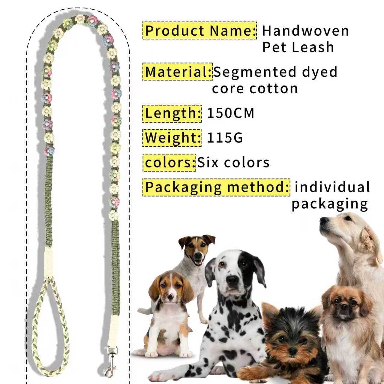 새로운 150cm( 59.06inch ) 중소형견에게 적합한 손으로 짠 다채로운 꽃무늬 개 가죽끈스토어 가기