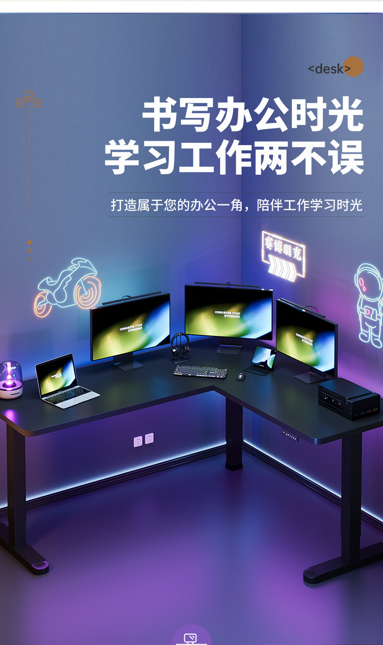 인체공학적 L자형 노트북 책상 듀얼 모터 스탠딩 학습 책상 전동 높이 조절 사무용 책상 공장스토어 가기