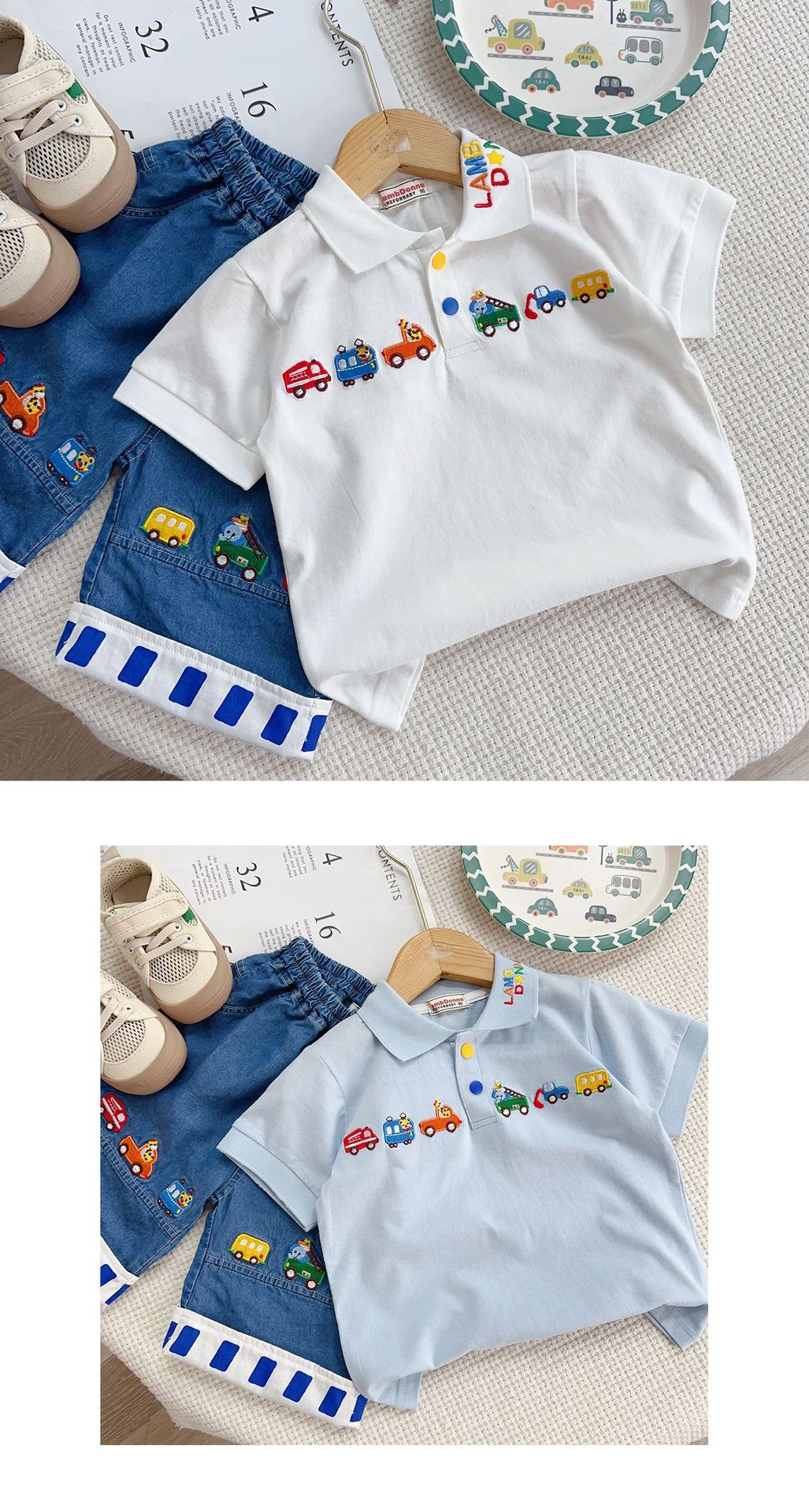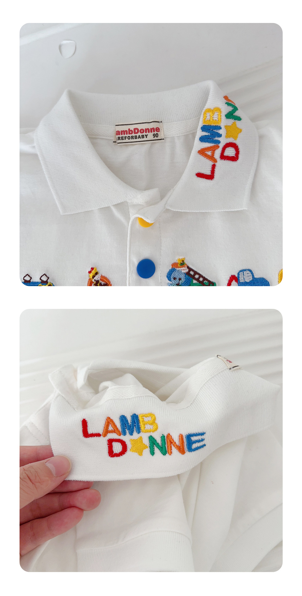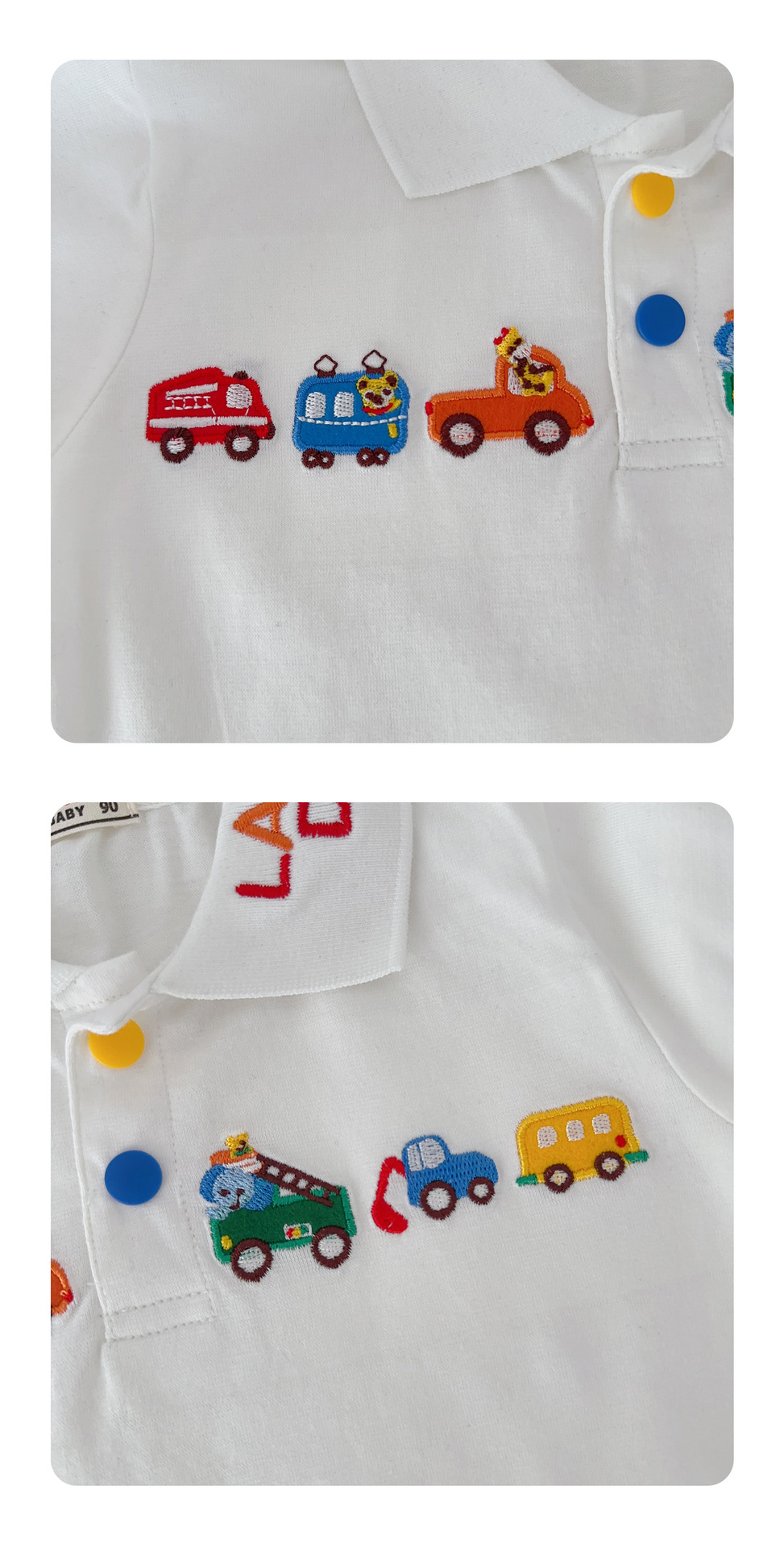 • 1673 자동차 자수 폴로 칼라 반팔 화이트