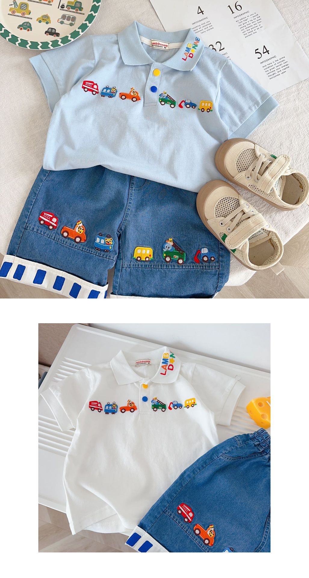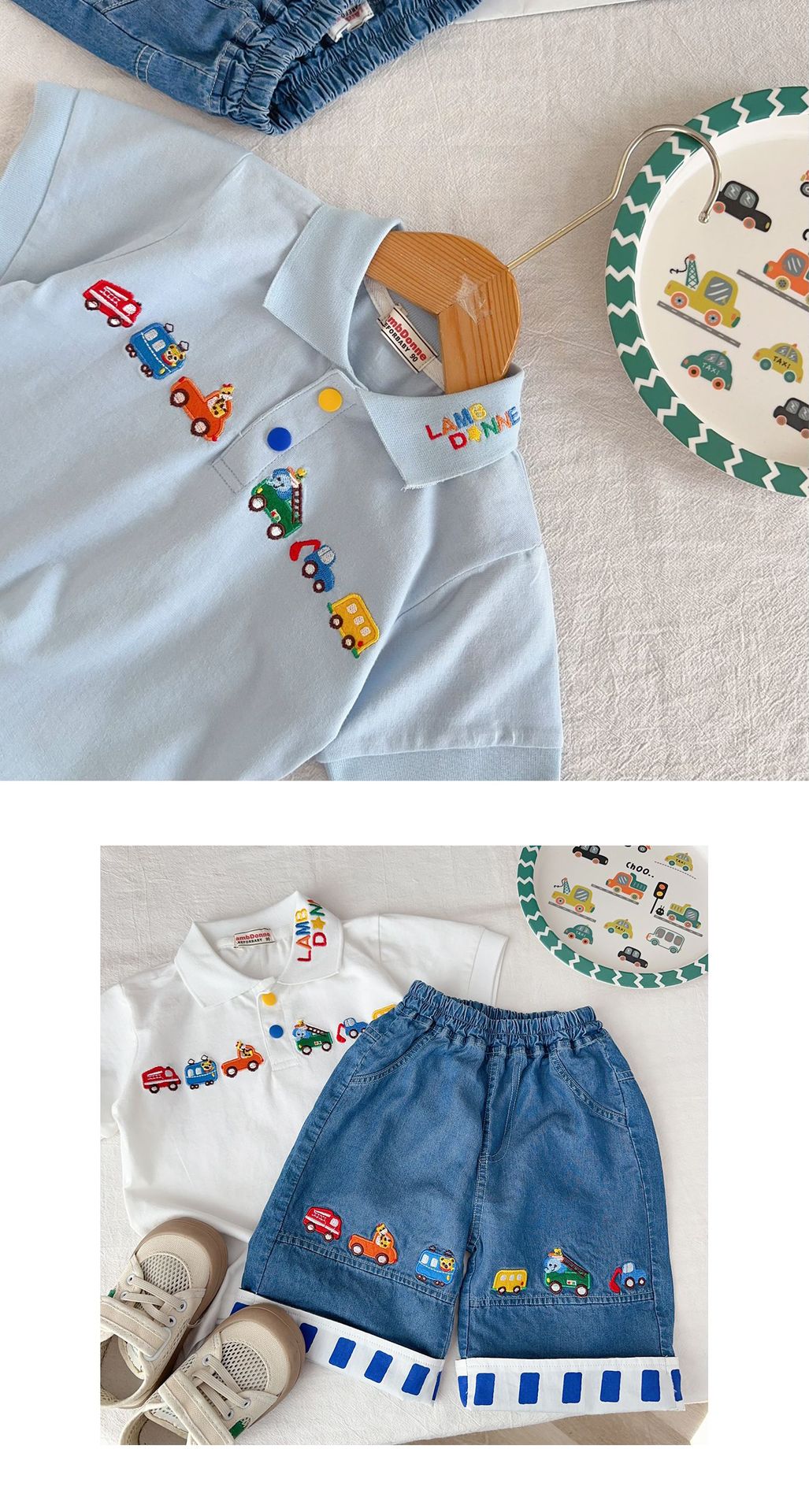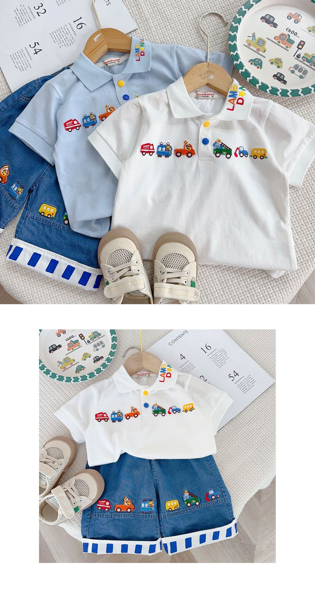 • 1673 자동차 자수 폴로 칼라 반팔 화이트