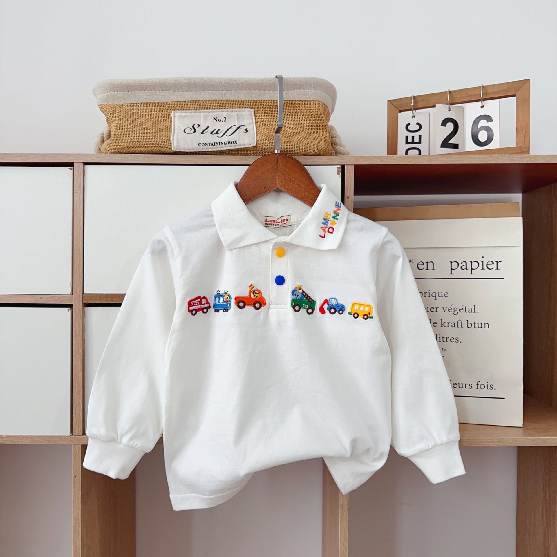 • 1837 자동차 자수 폴로 칼라 긴팔 화이트