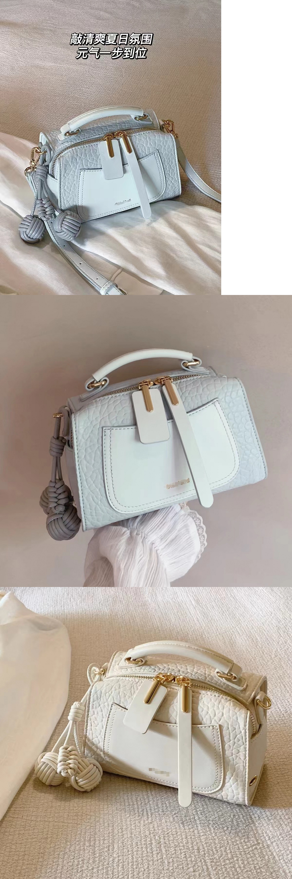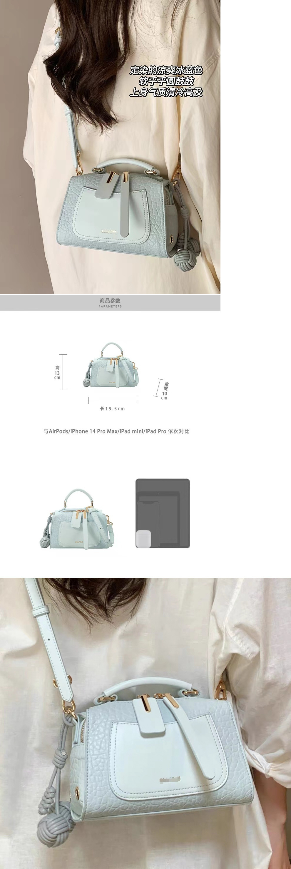 아이스 블루 미스터 보스턴 베개 가방 2025 새로운 통근 핸드백 세련되고 다재다능한 외출용 싱글 숄더 크로스 바디 백스토어 가기