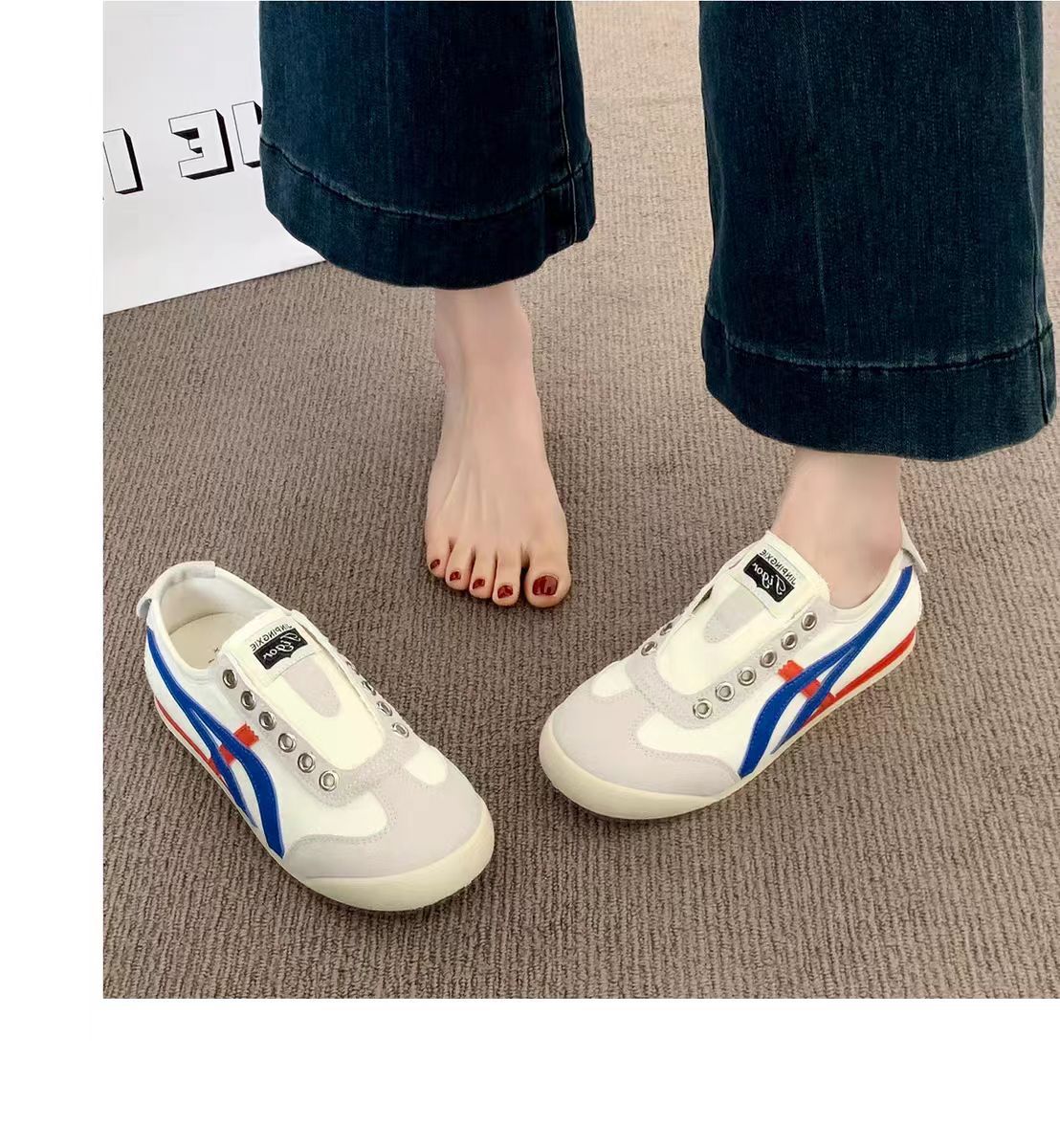 2025년 여름 신상 얇고 통기성이 뛰어난 여성용 슬립온 플랫 트레이닝 슈즈, 포레스트 검프 슈즈, 배색 스포츠 및 캐주얼 슈즈