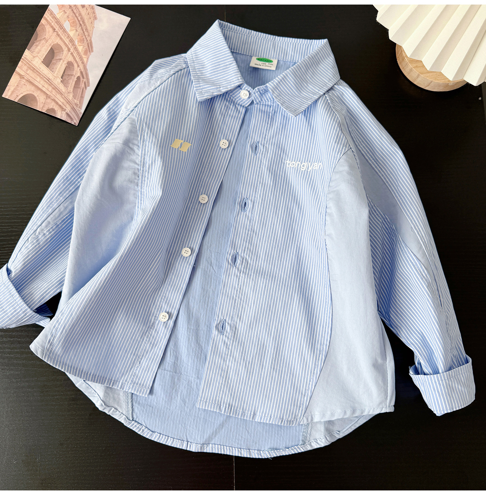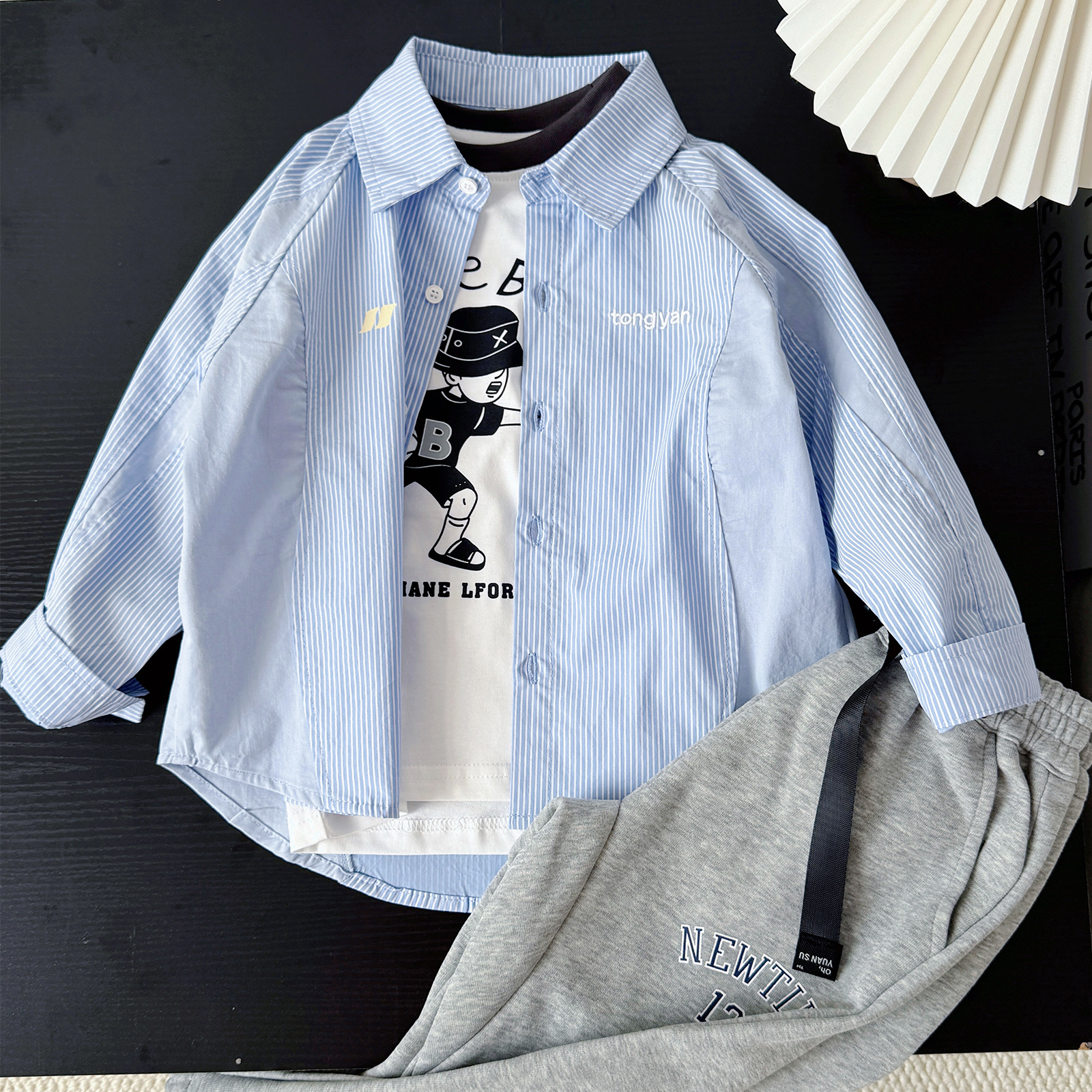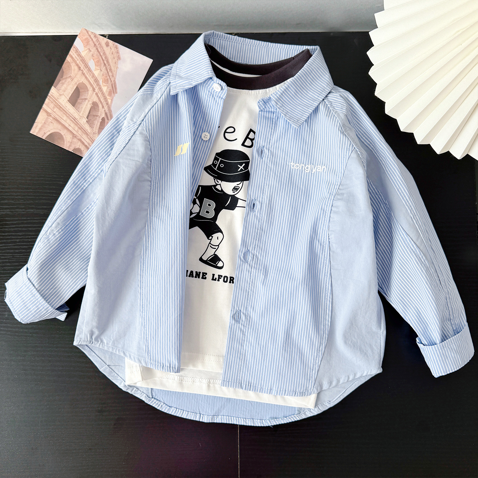 아동용 긴팔 셔츠 2025 봄, 가을 소년 한국 스타일 느슨한 줄무늬 탑 중형 및 대형 소년 베이비 코트스토어 가기