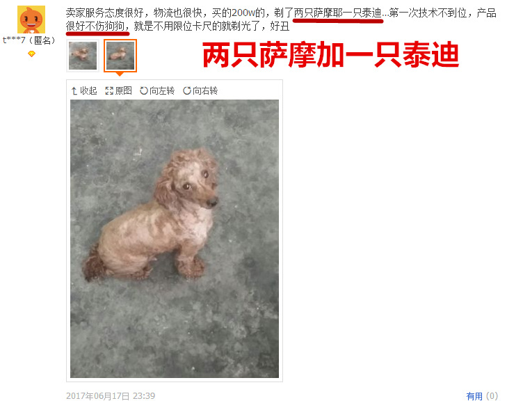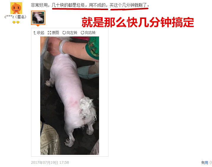 剪毛前先给白色刀片点2-3滴油