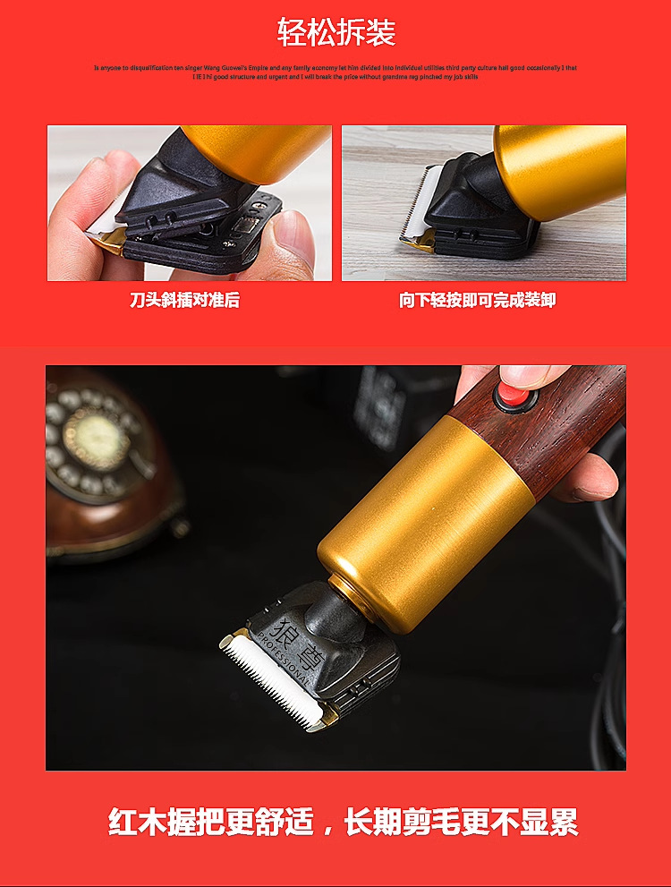 亲们切记.最近市面上出现了 此款电推高仿品购买时要查看是否有狼尊商标 没有狼尊二字的都是仿品 三无产品 下边是正品狼尊 与仿品对比图,