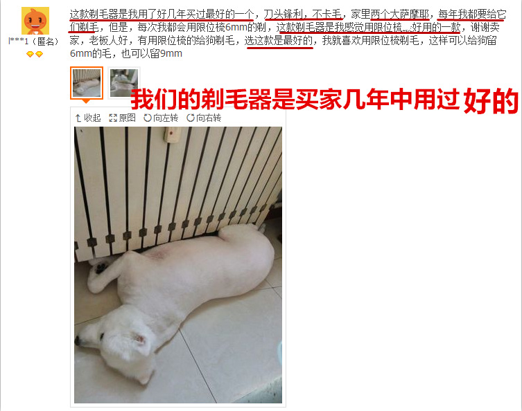大功率200W强动力宠物电推剪!厂家承诺所有的大小型犬 绒山羊.绵羊.羊驼.马毛.长毛兔.猫咪.工厂人造毛绒 都好用不卡毛,如果剃不动卡毛包退,