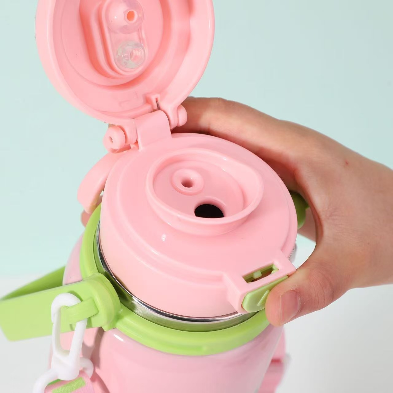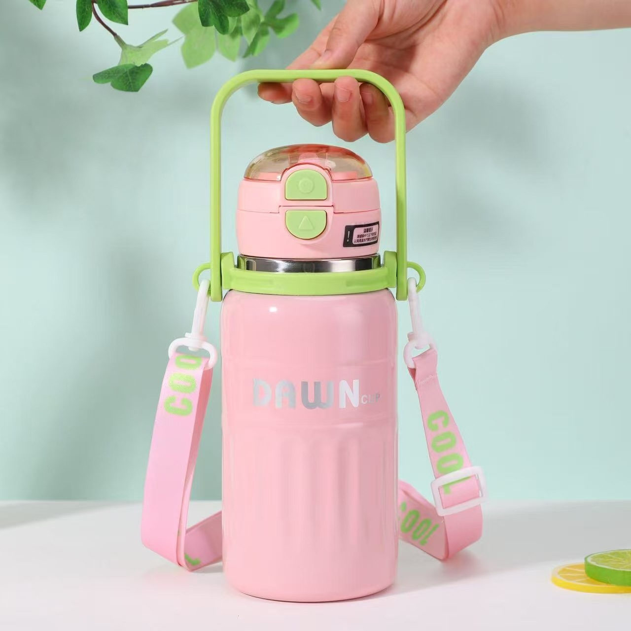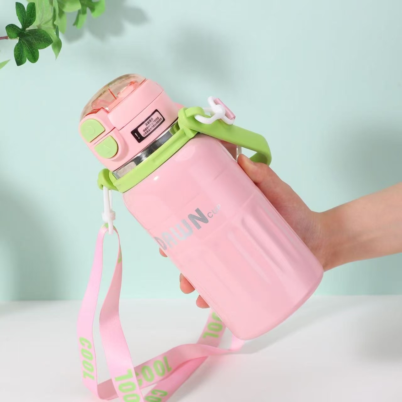 대용량 316 스테인레스 스틸 절연 컵 휴대용 손잡이 휴대용 바운스 밀짚 컵 야외 등산 물병 도매