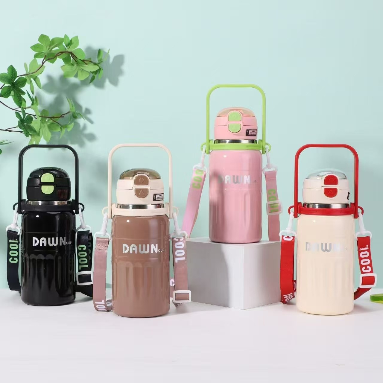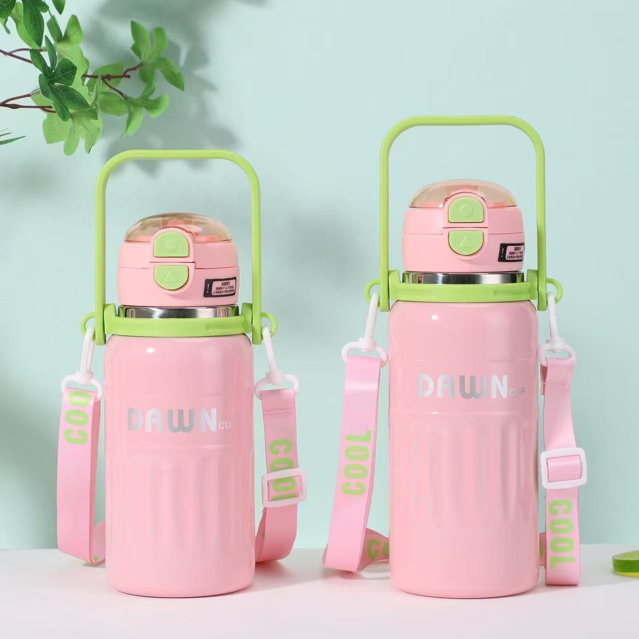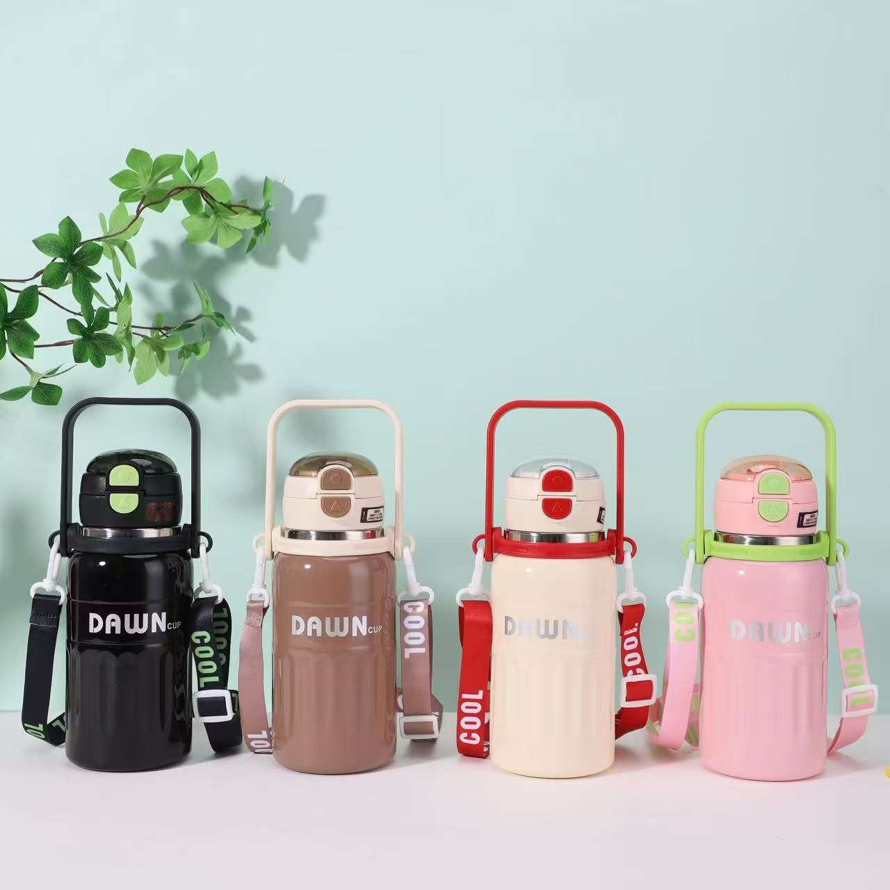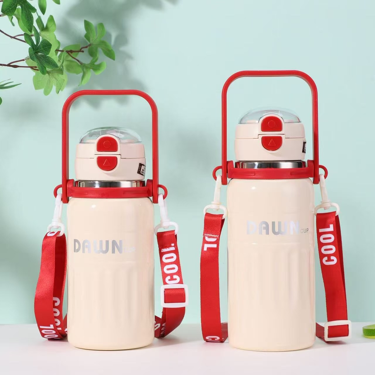 대용량 316 스테인레스 스틸 절연 컵 휴대용 손잡이 휴대용 바운스 밀짚 컵 야외 등산 물병 도매