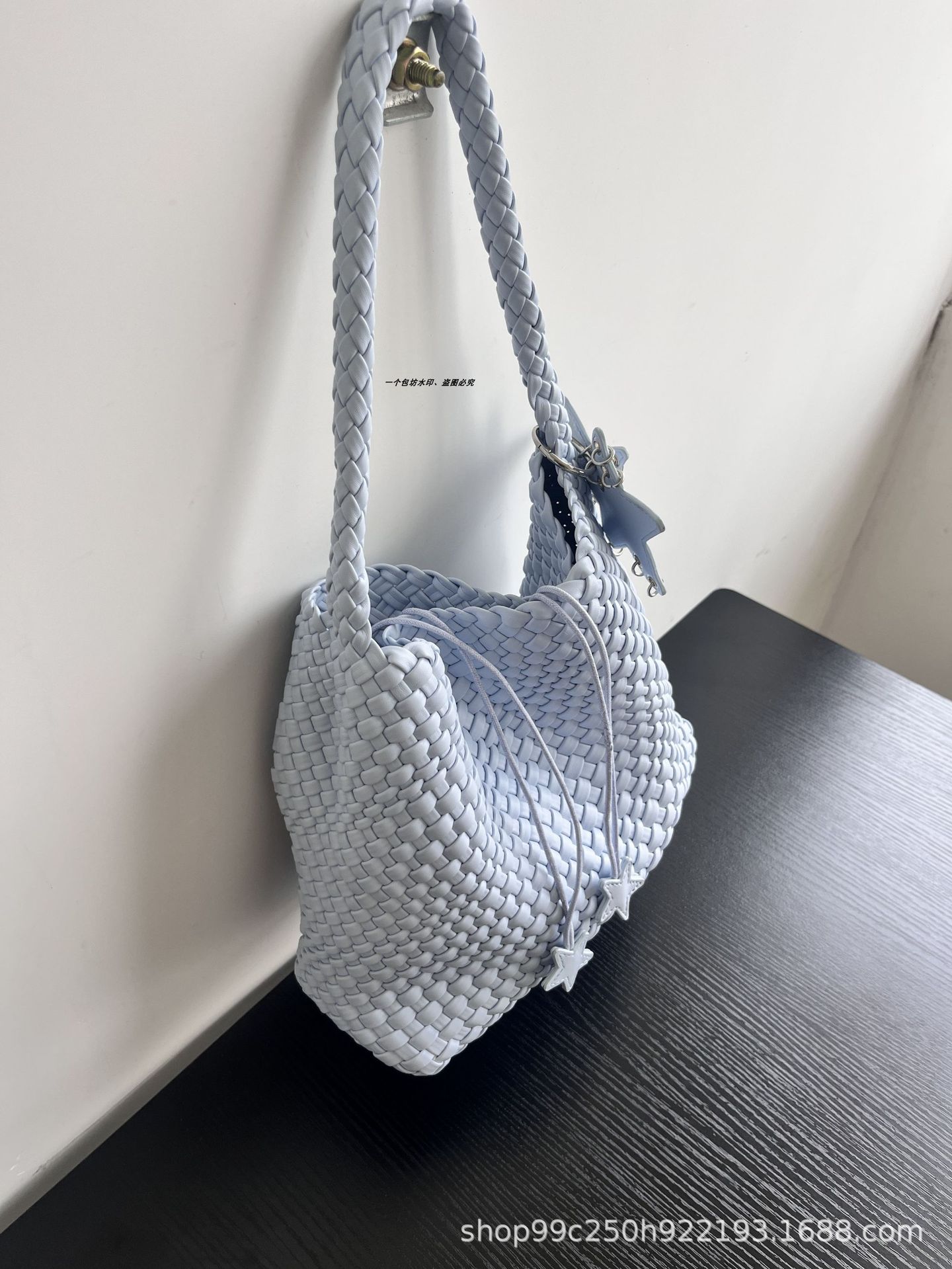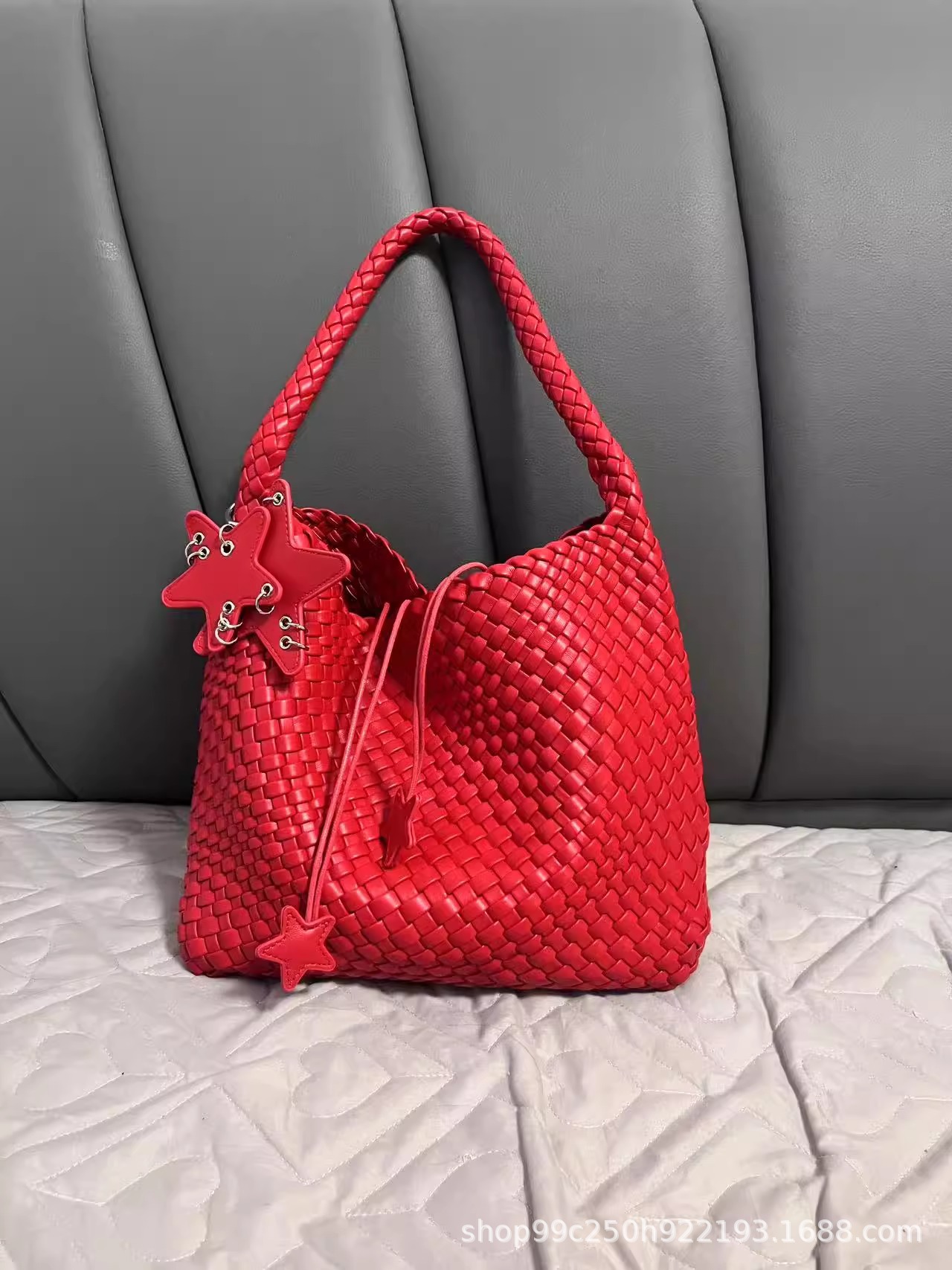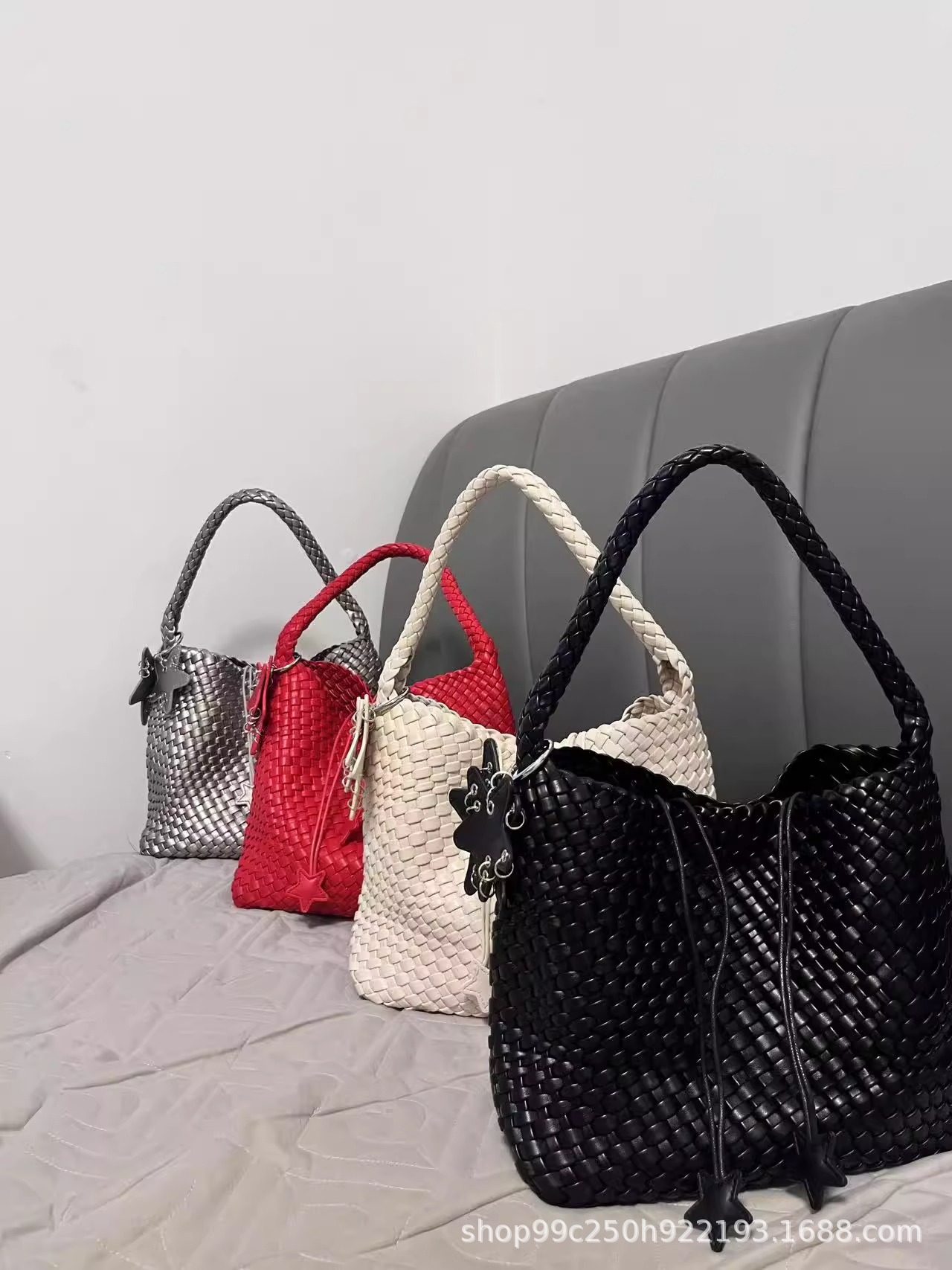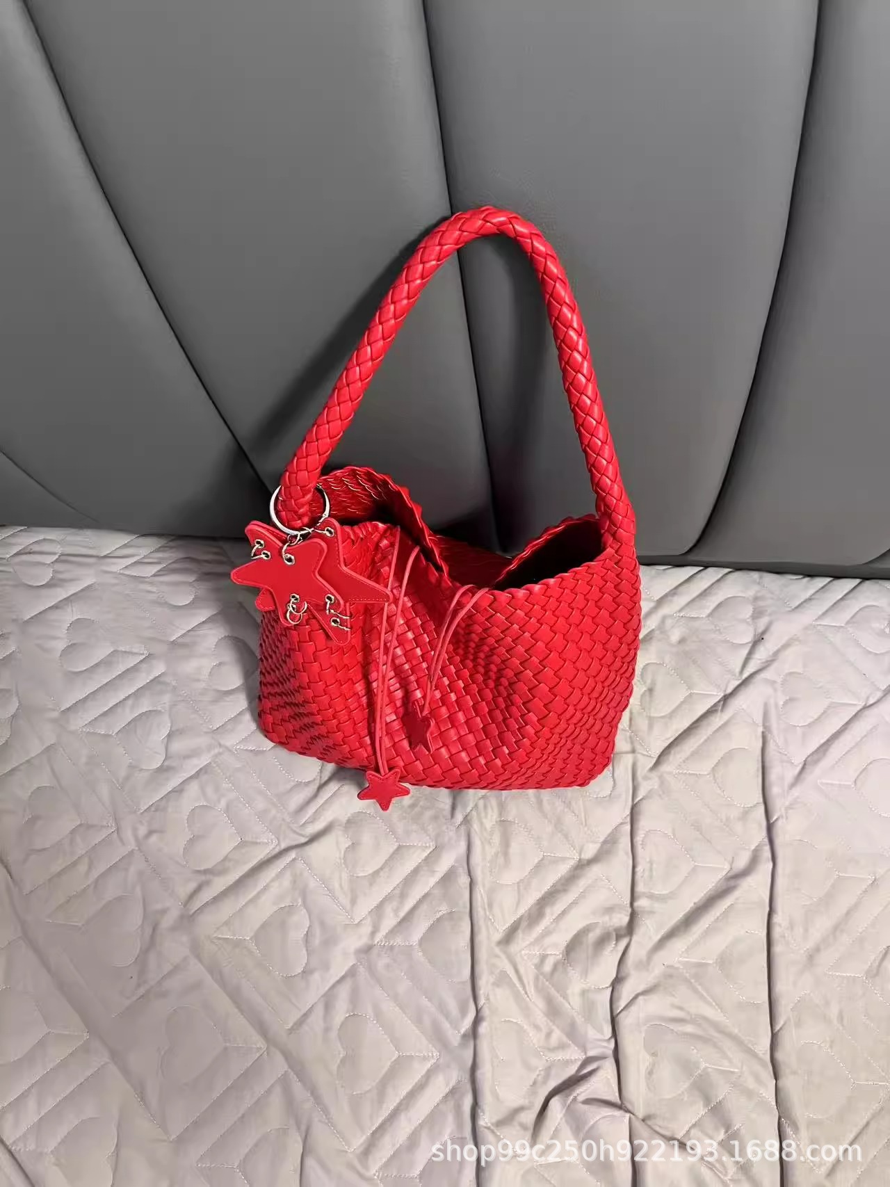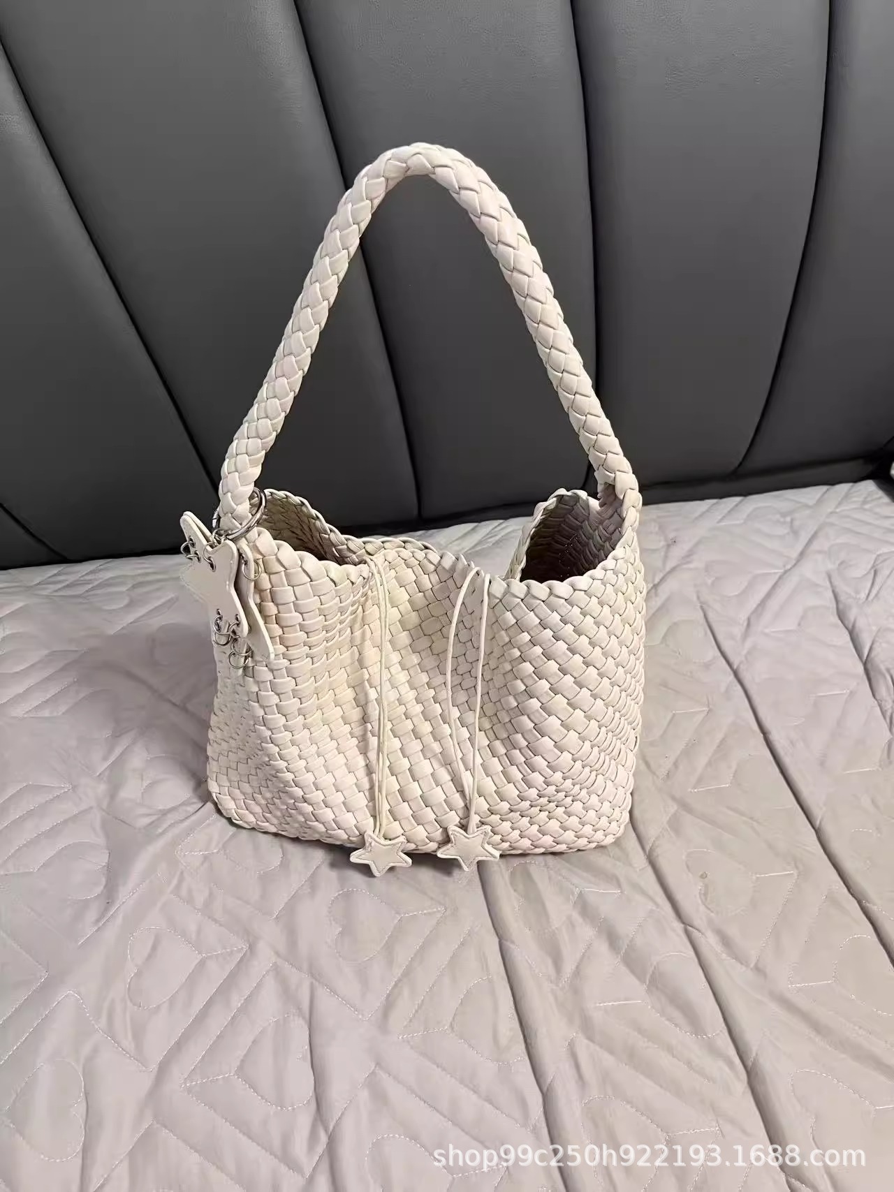 Guan Guan의 같은 스타일 중간 샴페인 컬러 손으로 짠 토트 백 소형 대용량 겨드랑이 싱글 숄더 쇼핑백