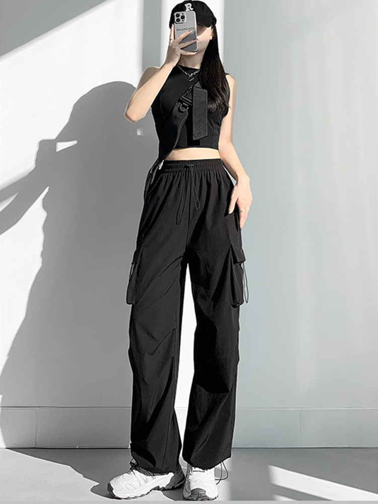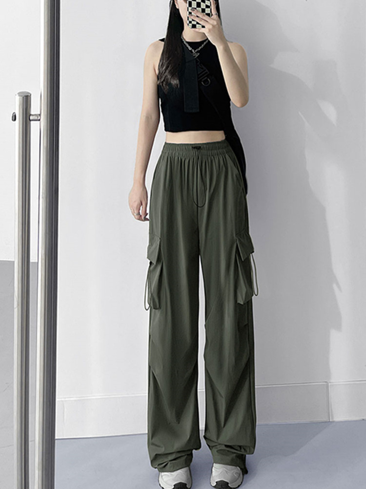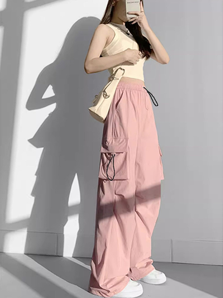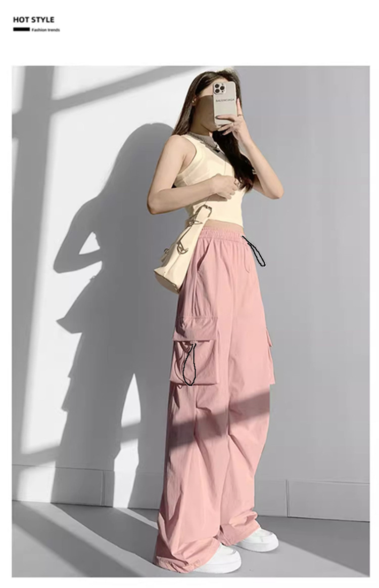 여성용 속건성 낙하산 작업복 봄, 여름, 가을 새로운 느슨한 넓은 다리 야외 등산 스포츠 및 레저 바지스토어 가기