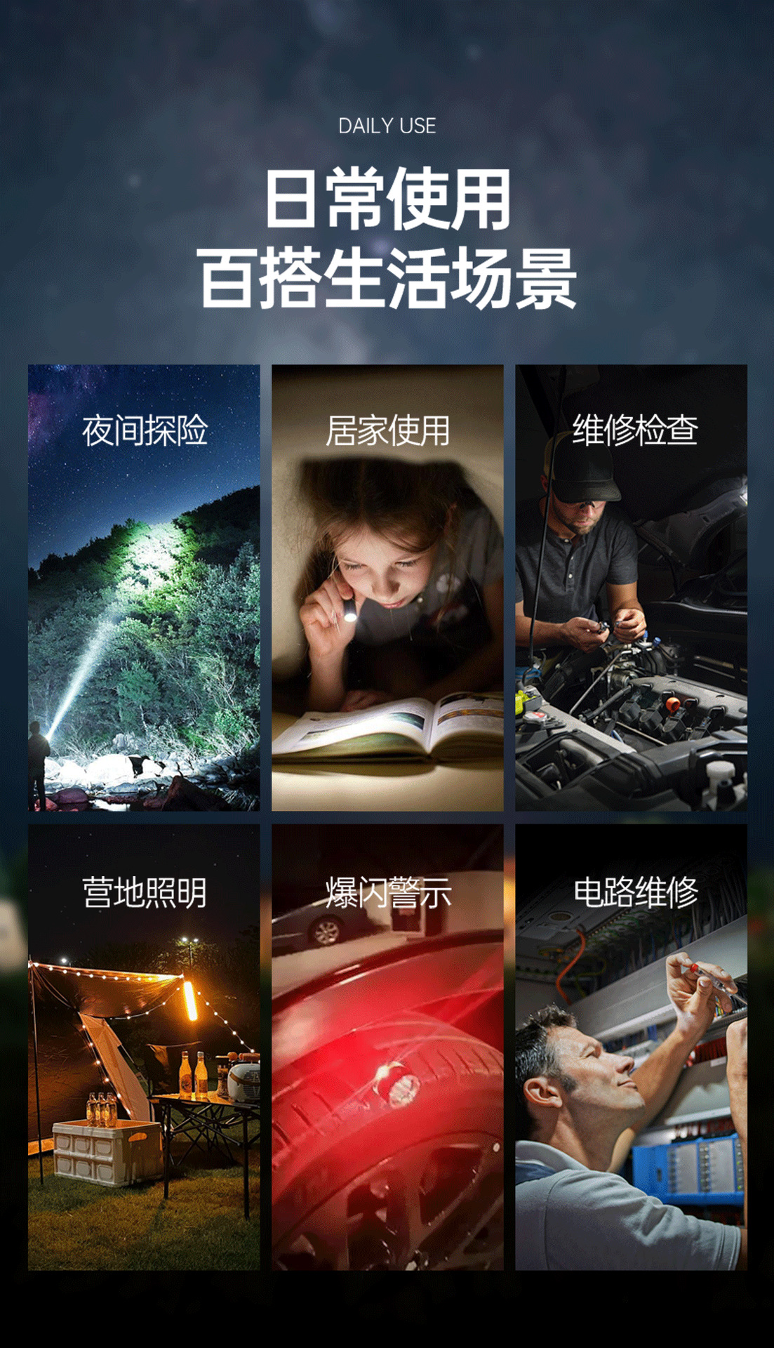 10.远离易燃物:在使用本品时,尤其是长时间开启高亮度模式,灯头部位可能会产生一定热量。使用过程中,要远离纸张、布料、干草等易燃物品,避免因热量积聚引发火灾。