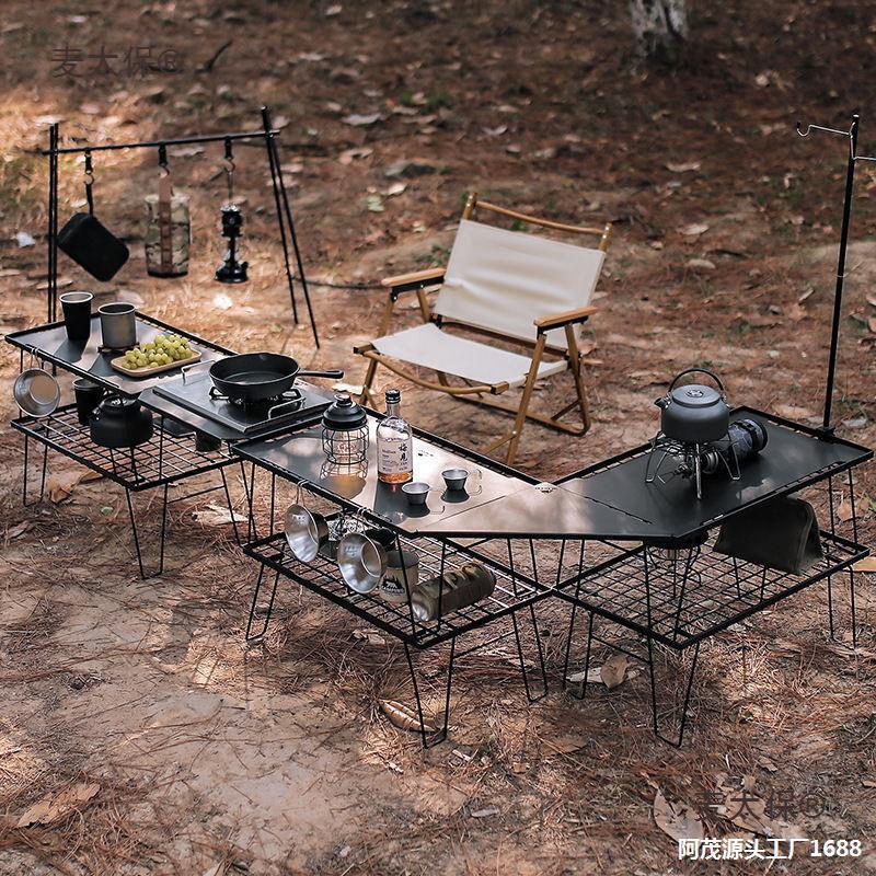 야외 캠핑 테이블 패널 조합 피크닉 테이블 그리드 테이블 바베큐 테이블 코너 가스 스토브 철망스토어 가기
