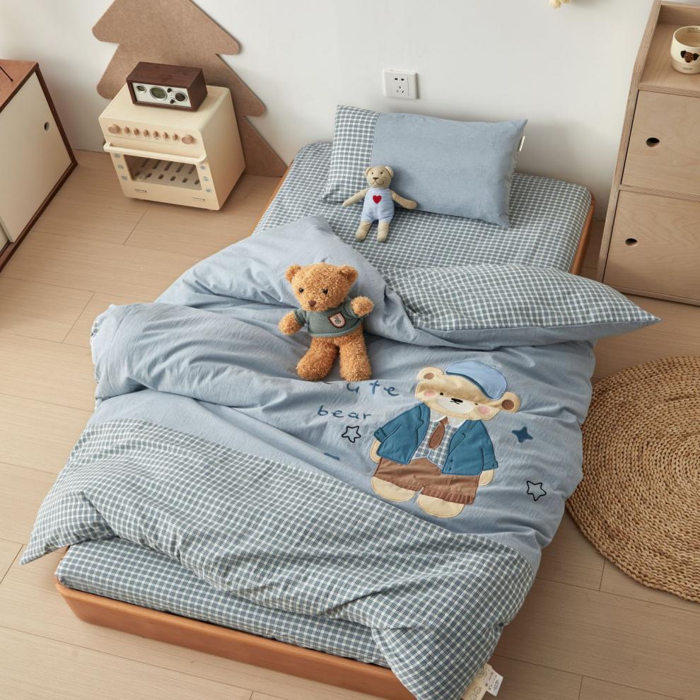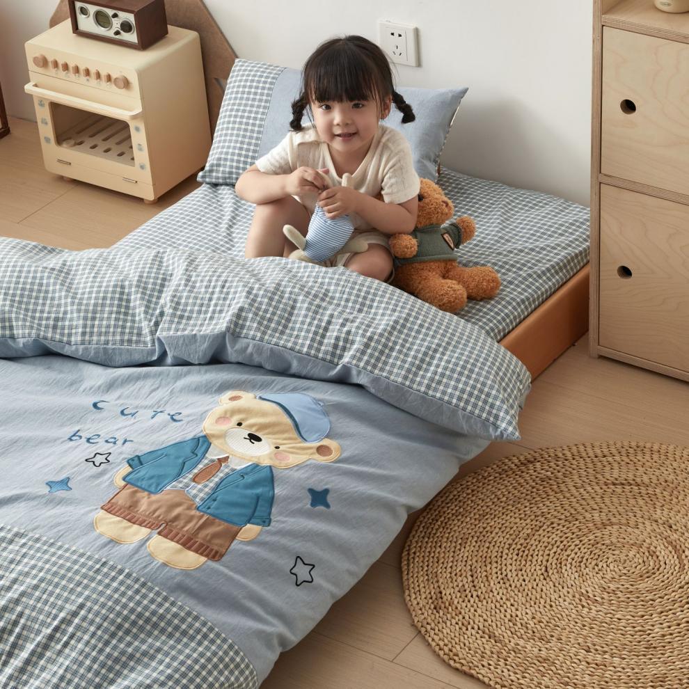 새로운 클래스 A 유치원 순면 워시 코튼 이불 커버 3 피스 침구 세트 만화 어린이 6 피스 침구 세트스토어 가기