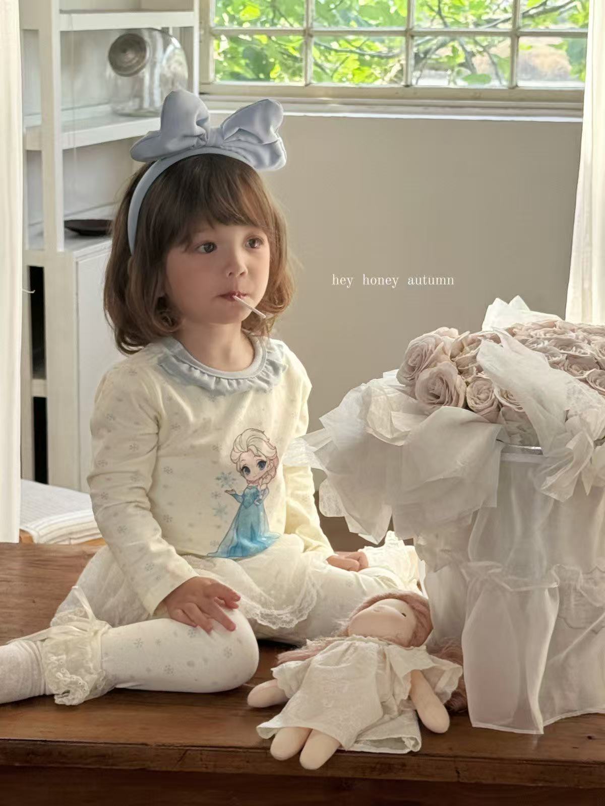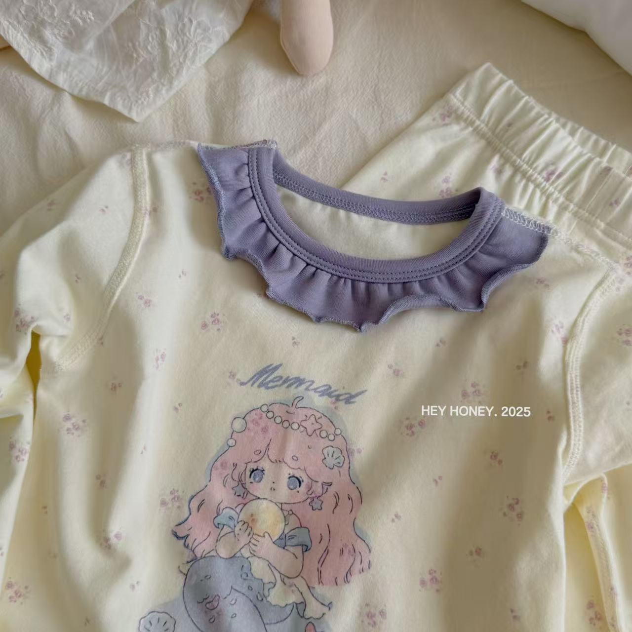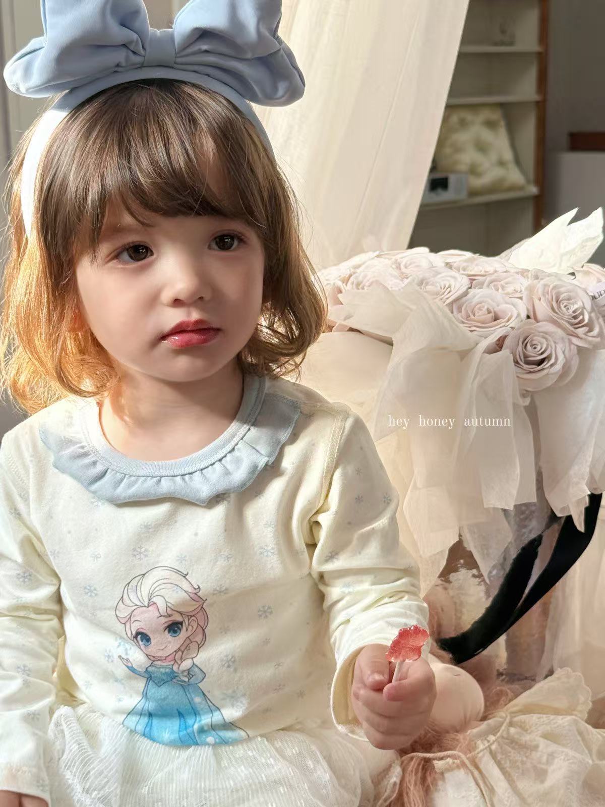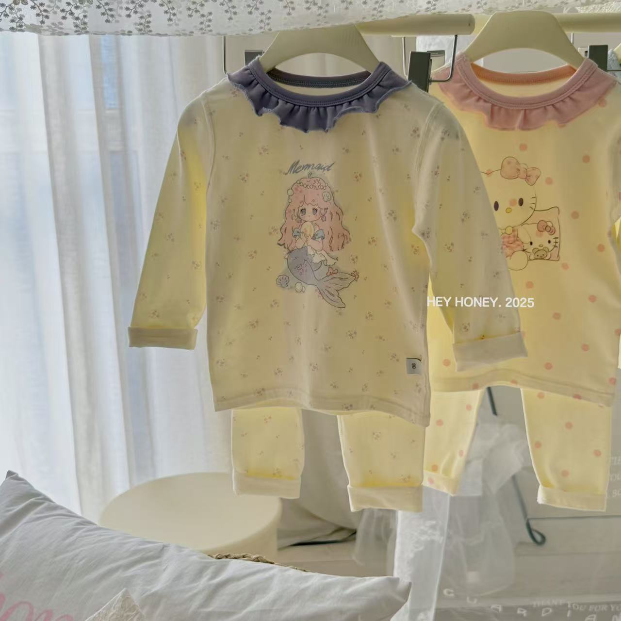 크고 작은 사이즈 아동복, A급 순면 헤이허니 아동 잠옷, 여아 속옷, 본리스 라이크라 면 가을 옷 및 긴 바지스토어 가기