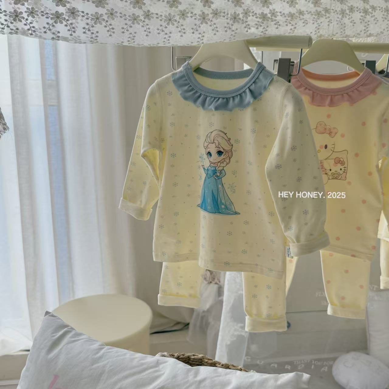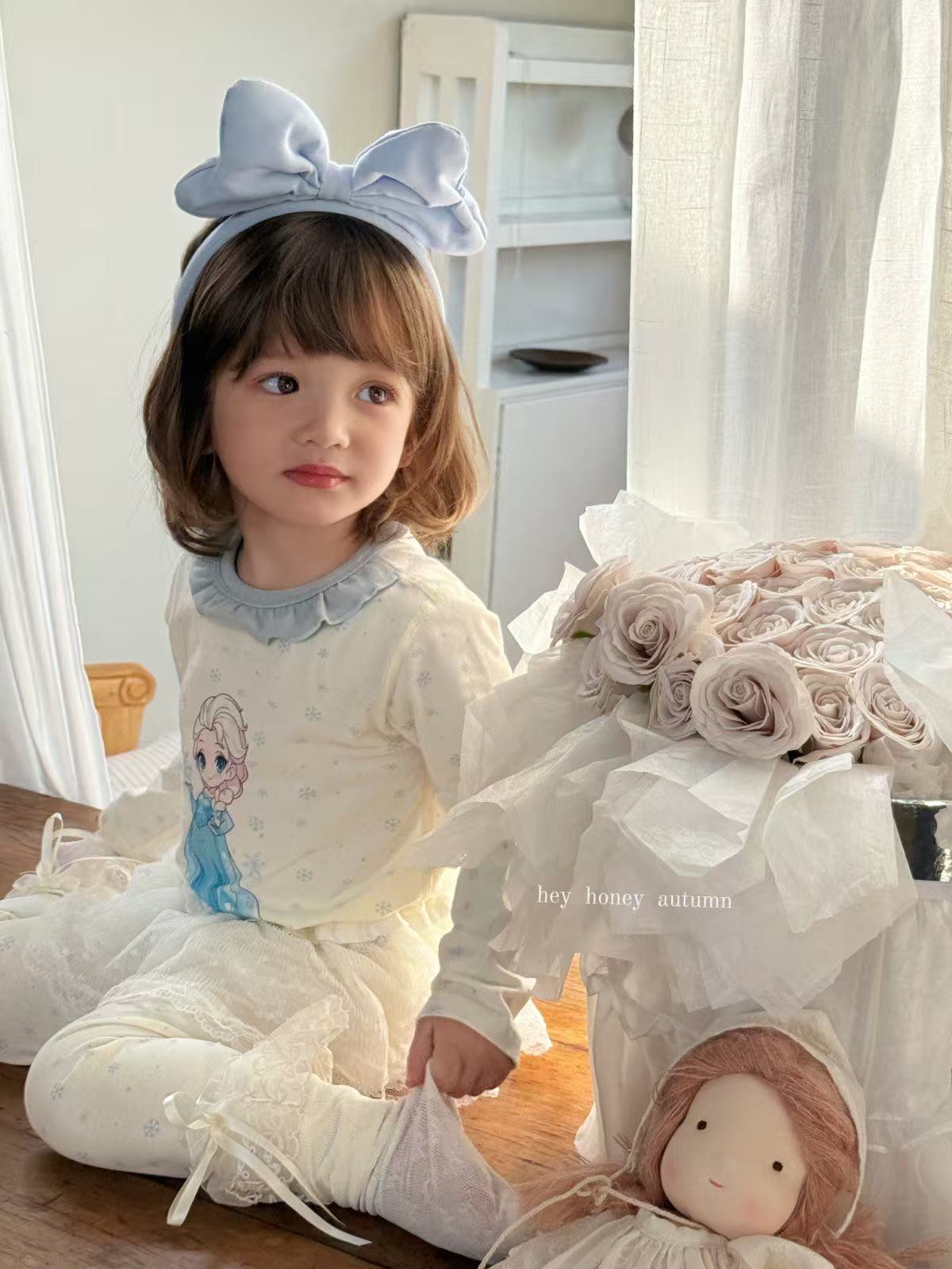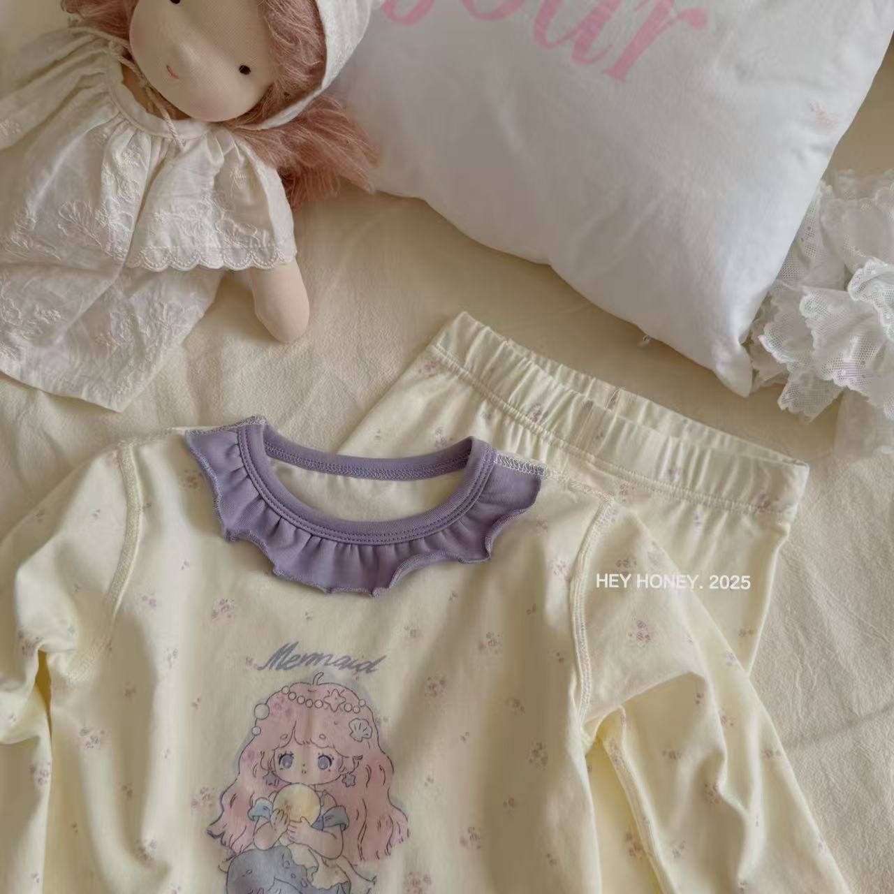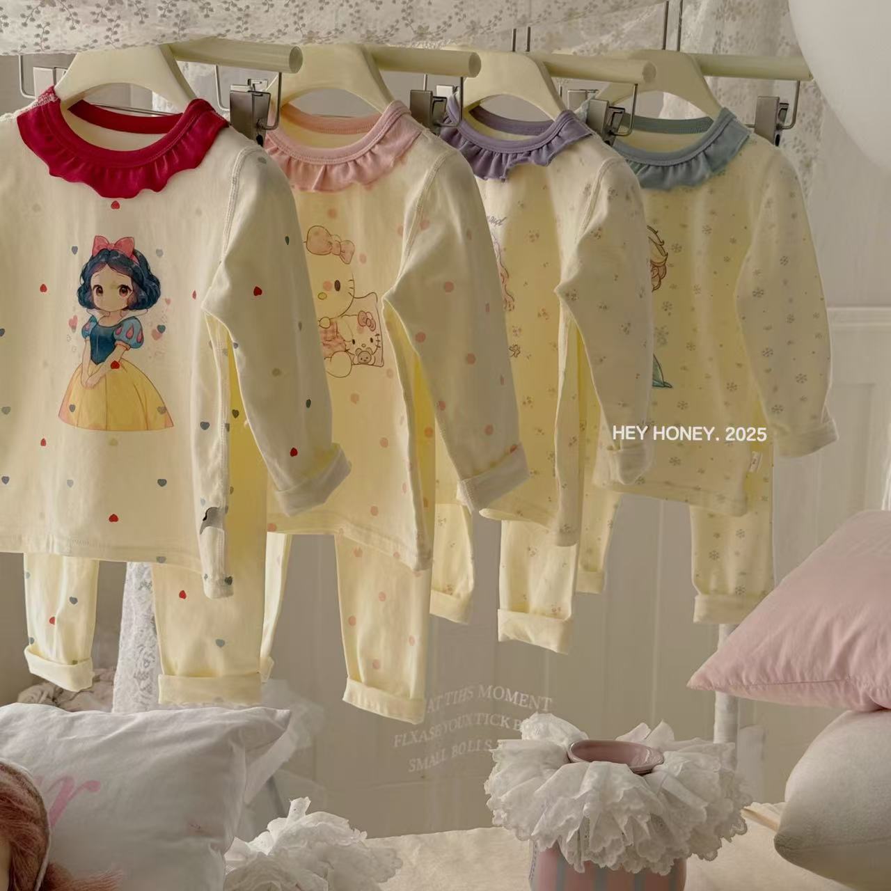 크고 작은 사이즈 아동복, A급 순면 헤이허니 아동 잠옷, 여아 속옷, 본리스 라이크라 면 가을 옷 및 긴 바지스토어 가기