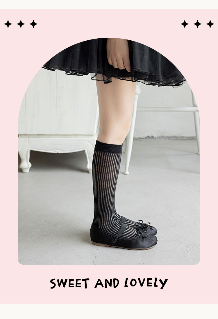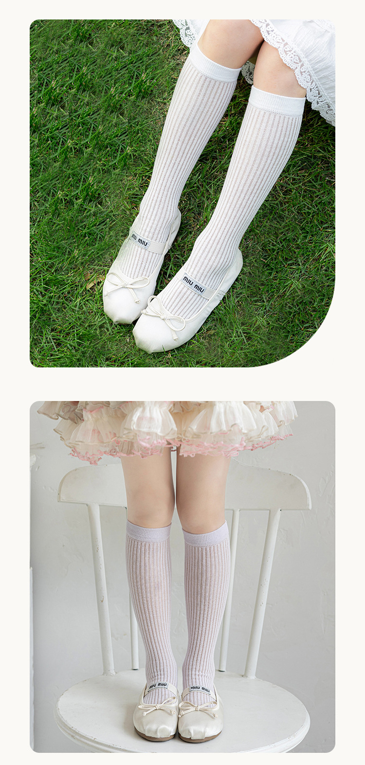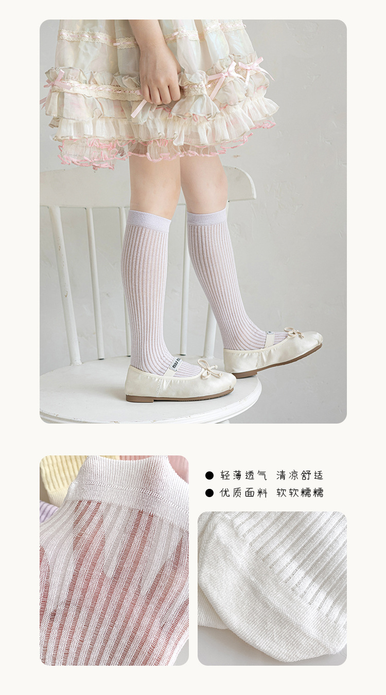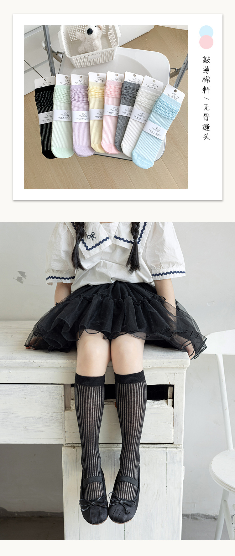 Misscucudog 소녀 중간 튜브 양말 단색 세로 줄무늬 도파민 여름 통기성 메쉬 소녀 베이비 롱 튜브스토어 가기