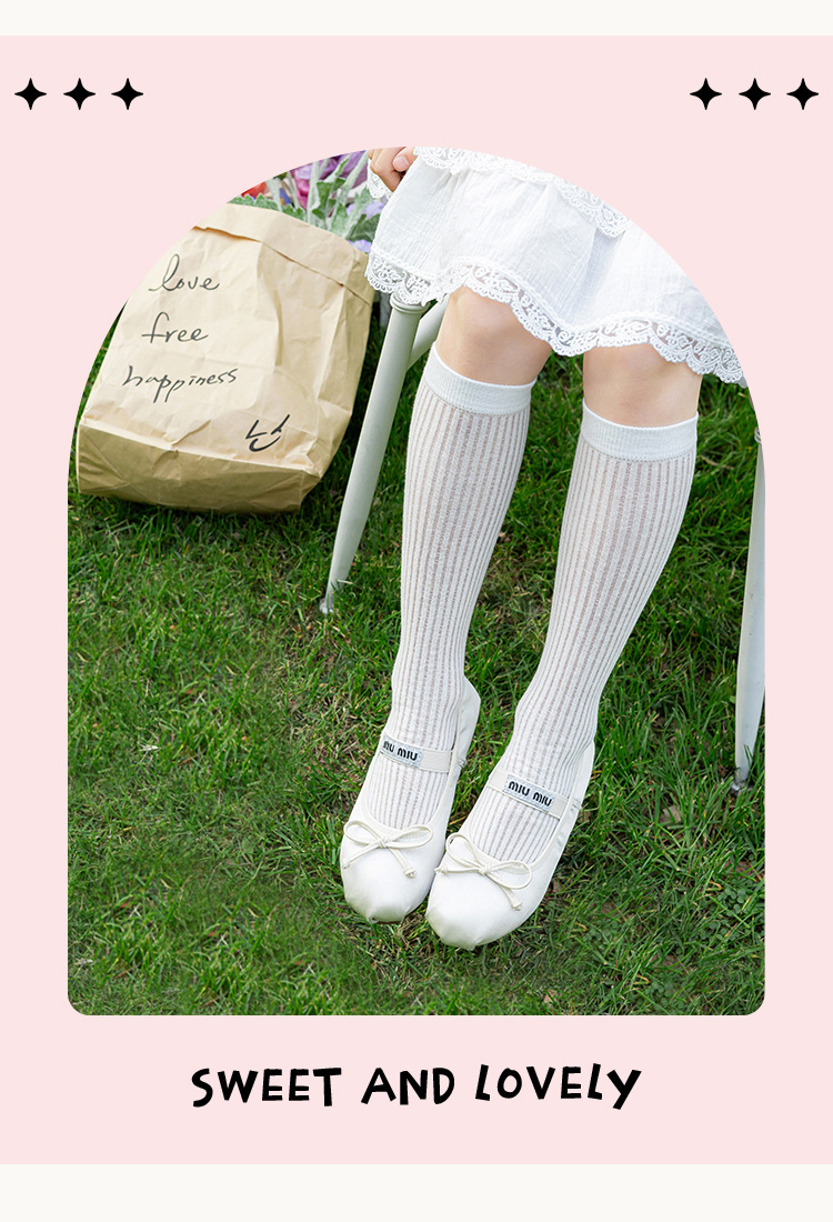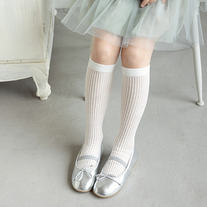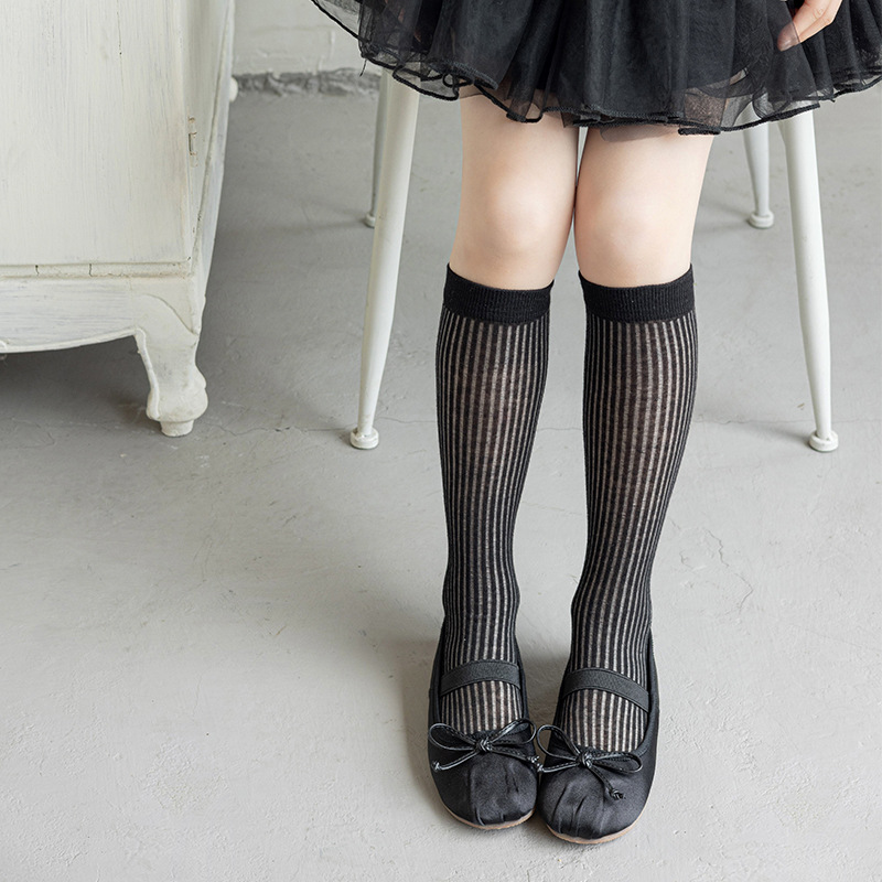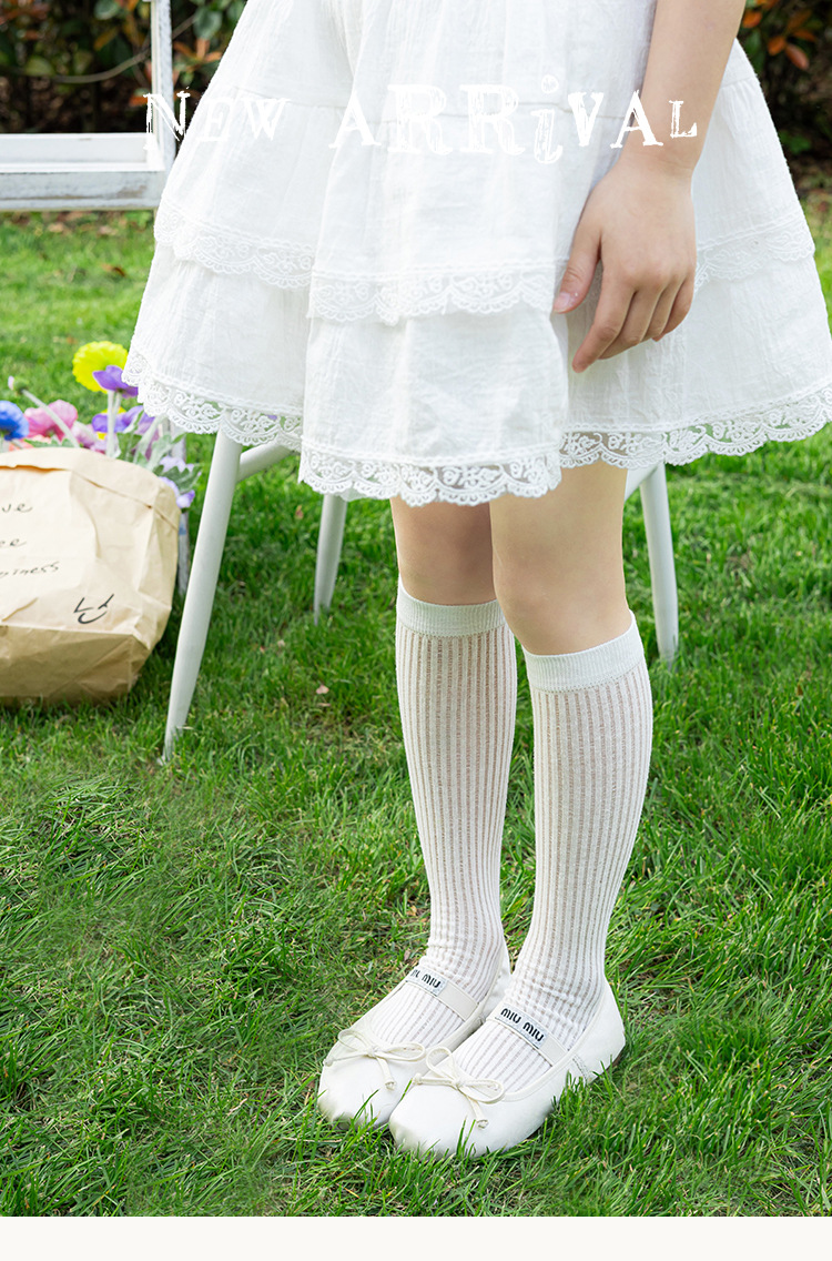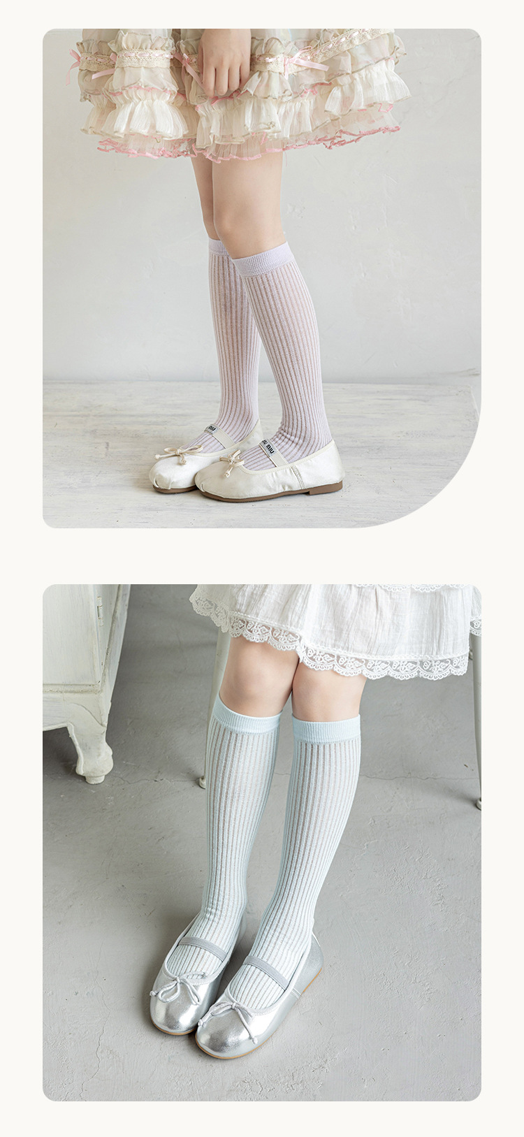 Misscucudog 소녀 중간 튜브 양말 단색 세로 줄무늬 도파민 여름 통기성 메쉬 소녀 베이비 롱 튜브스토어 가기
