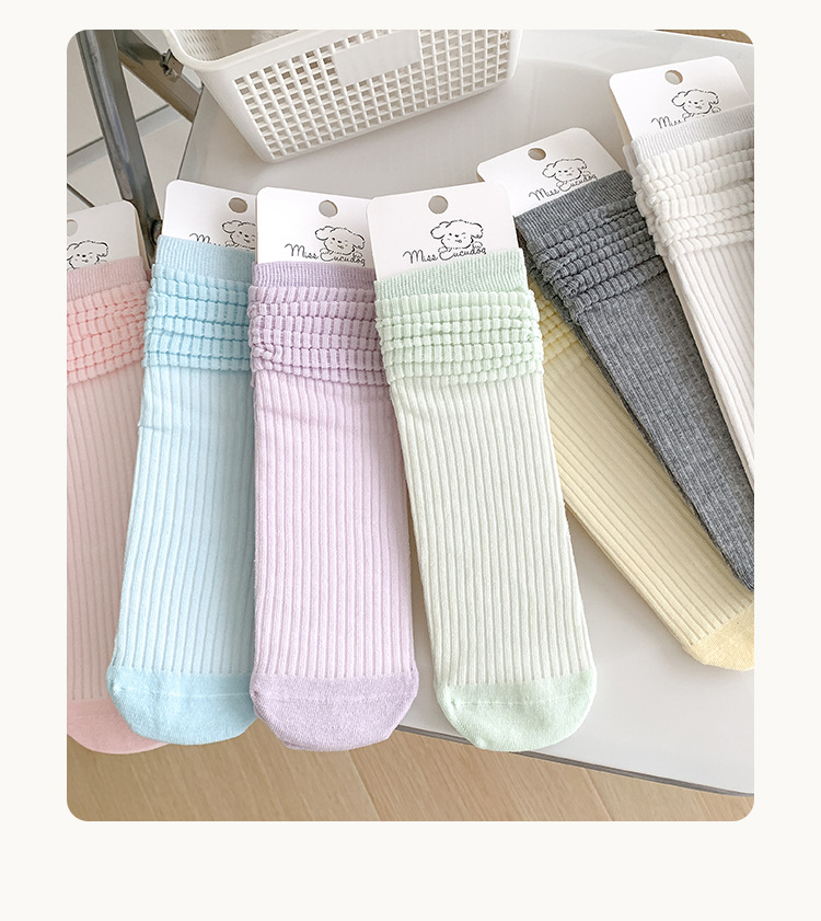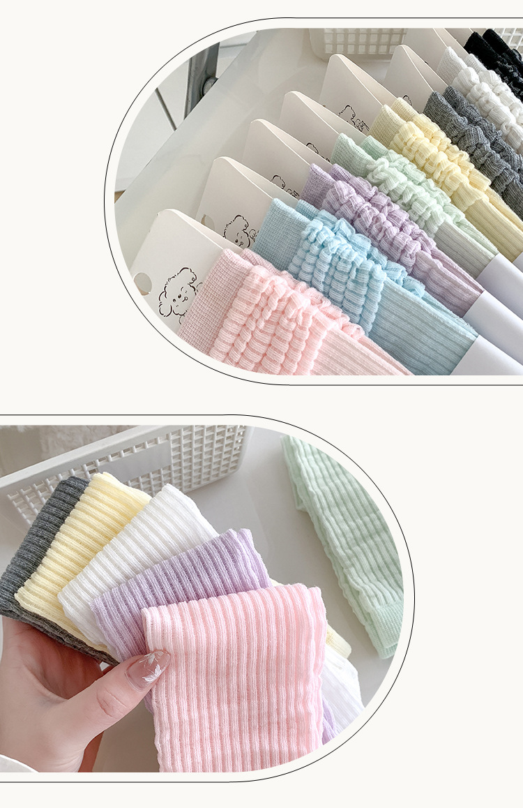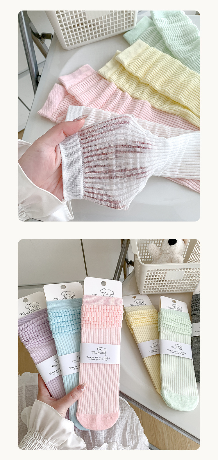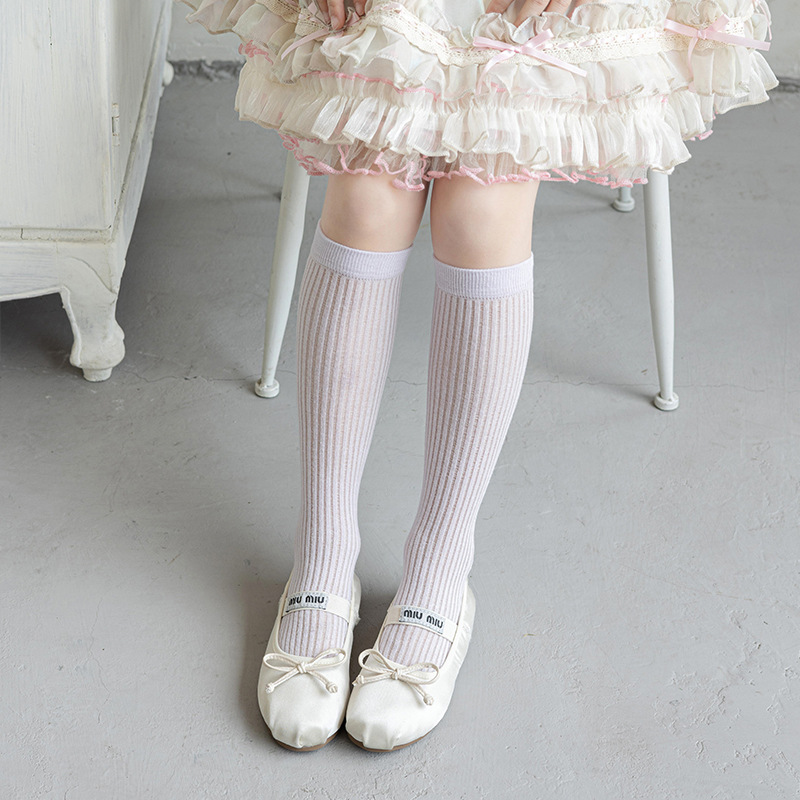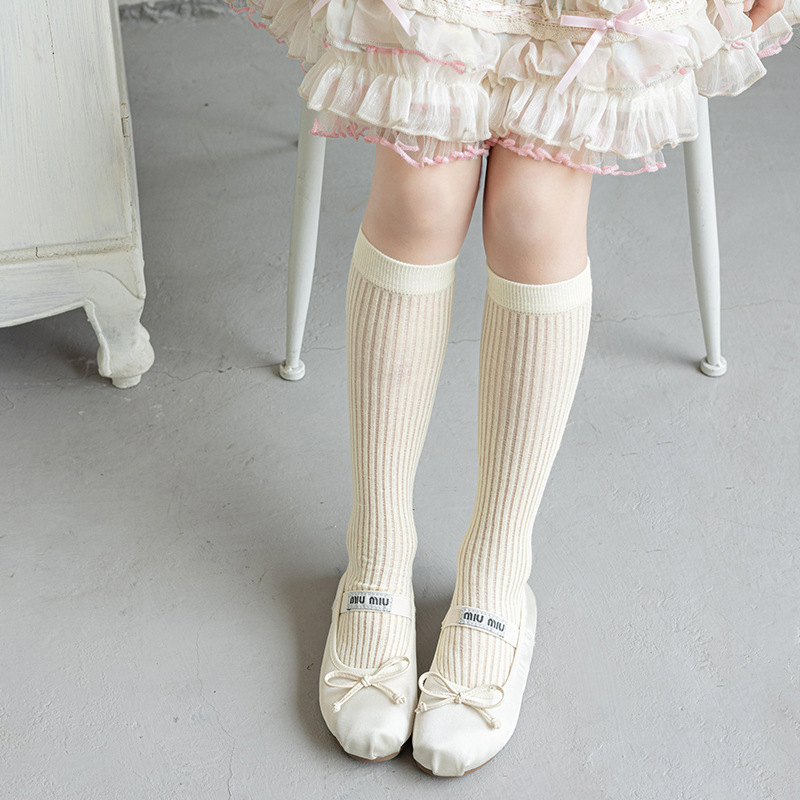 Misscucudog 소녀 중간 튜브 양말 단색 세로 줄무늬 도파민 여름 통기성 메쉬 소녀 베이비 롱 튜브