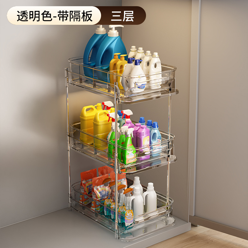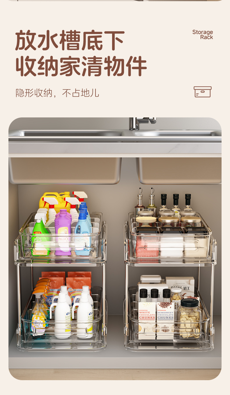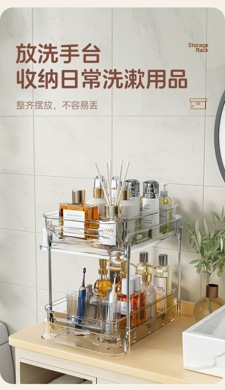 싱크대 아래 수납선반, 욕실 캐비닛 아래를 당겨서 다양한 용품을 수납할 수 있는 화장실 세면대스토어 가기