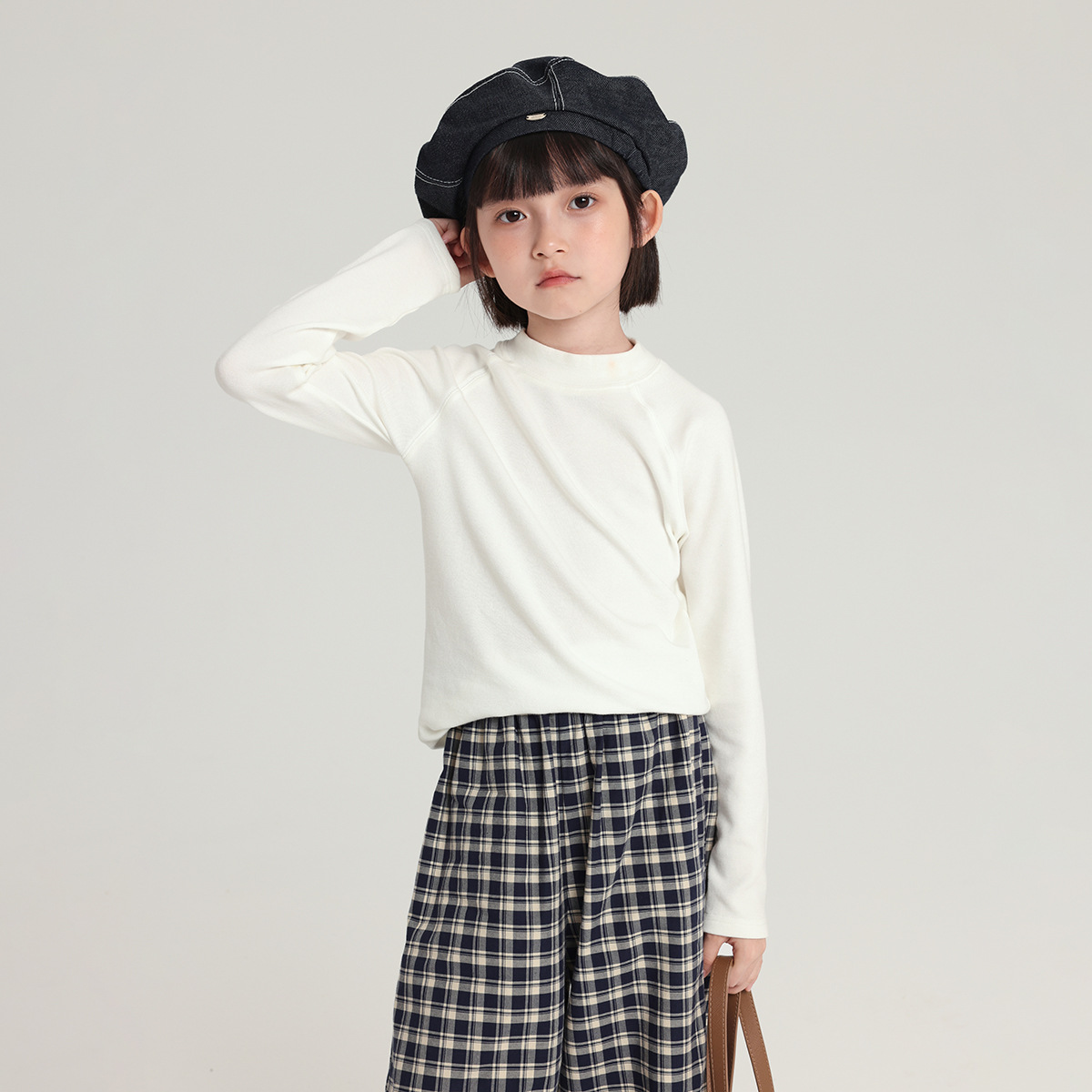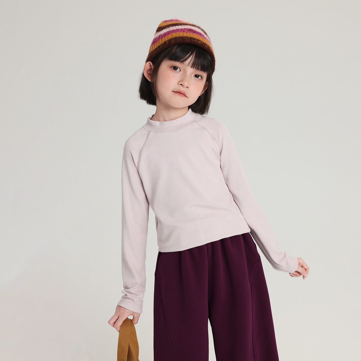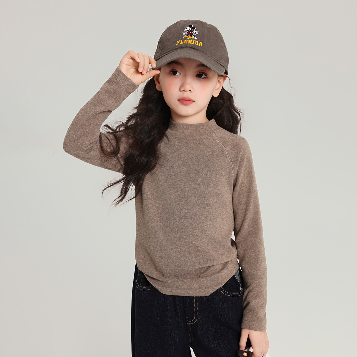 Pudding Haru 아동용 바닥 셔츠 2025 가을 새 여자 하프 터틀넥 바닥 셔츠 아기 소녀 긴팔 티셔츠