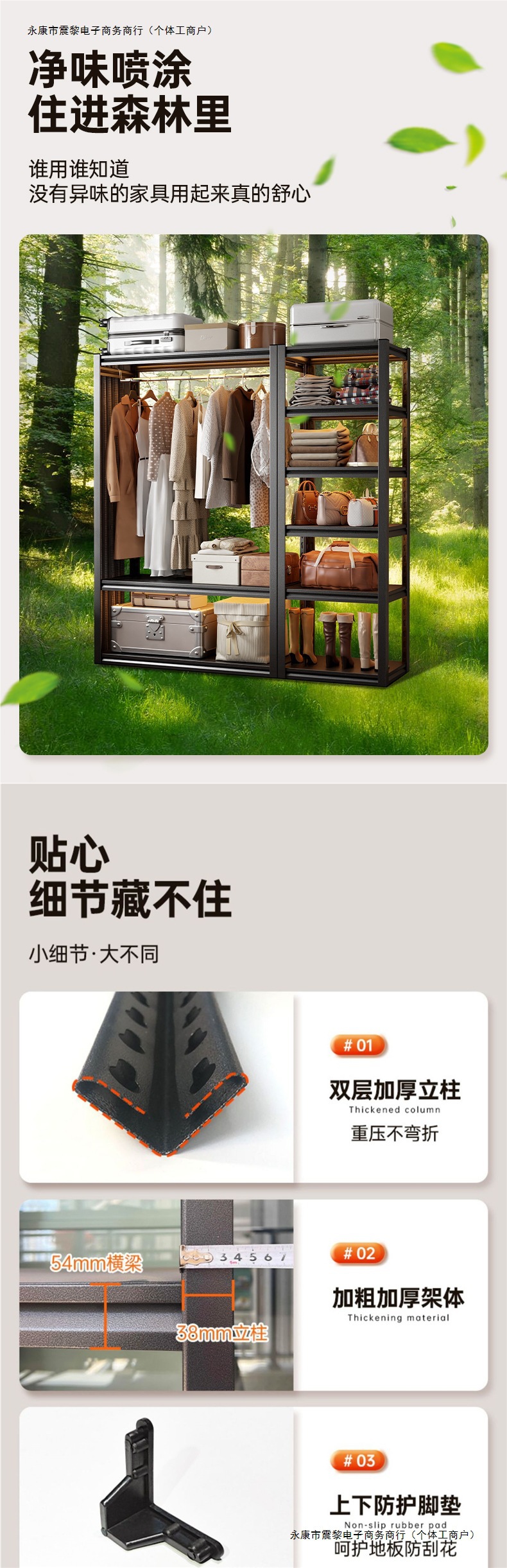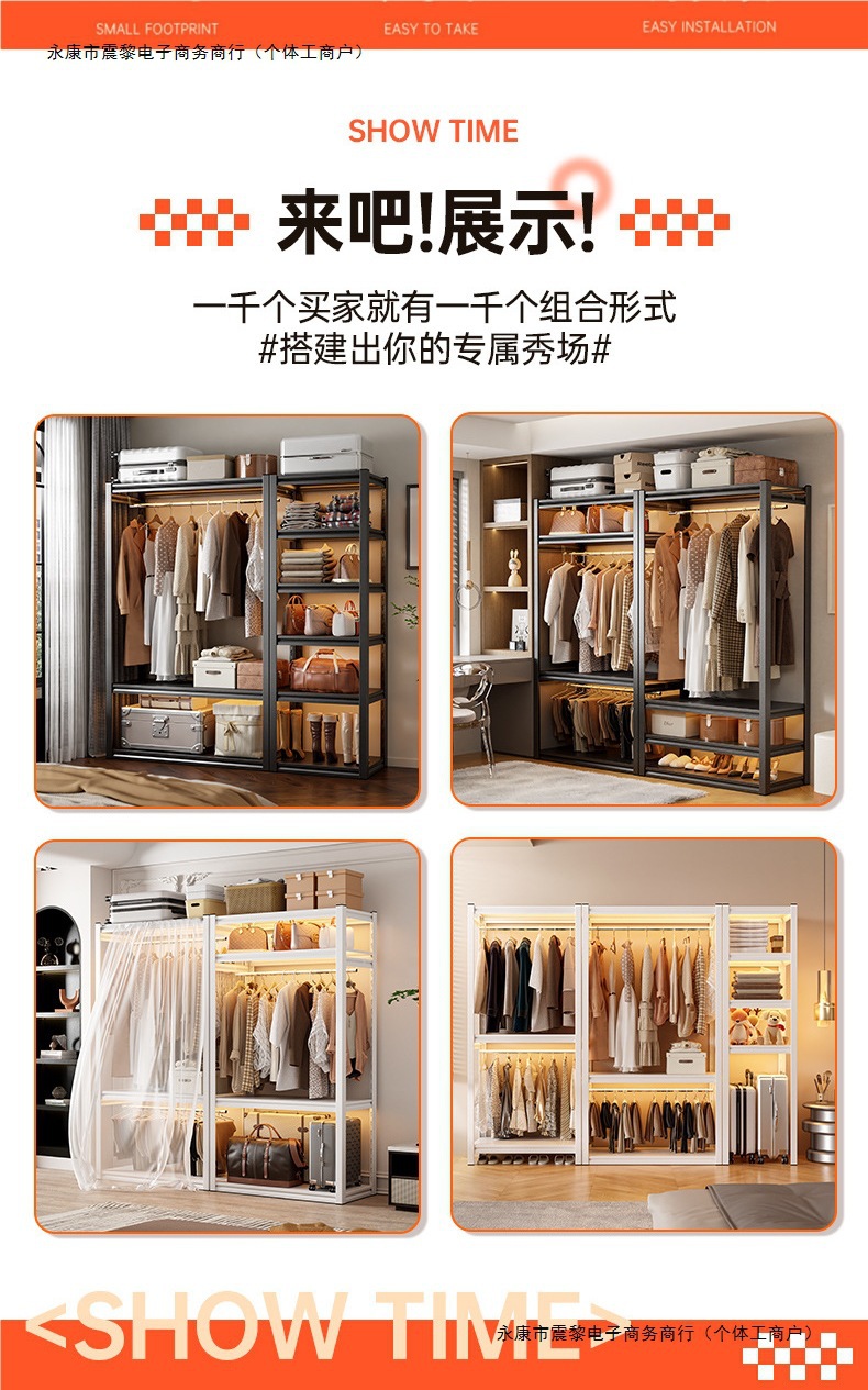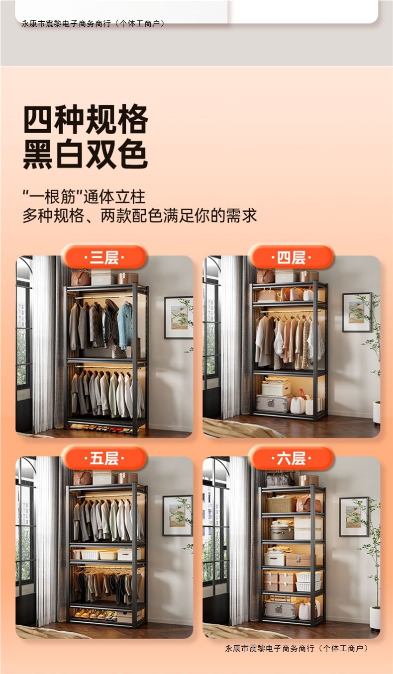 선반 옷장 가정용 개방형 옷걸이 다층 수납 선반 간단한 옷걸이 실내 바닥 옷장스토어 가기