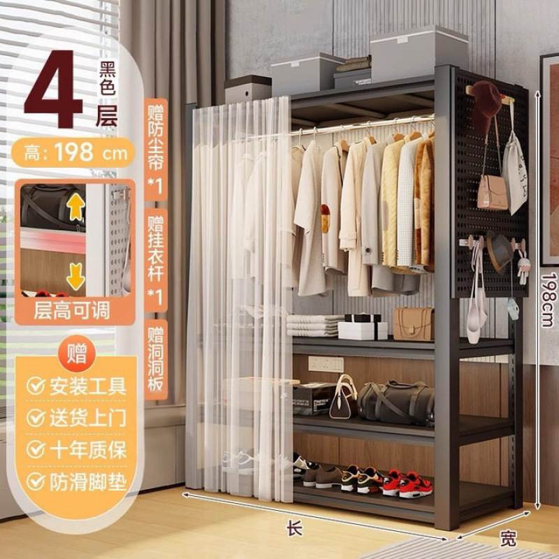 선반 옷장 가정용 개방형 옷걸이 다층 수납 선반 간단한 옷걸이 실내 바닥 옷장