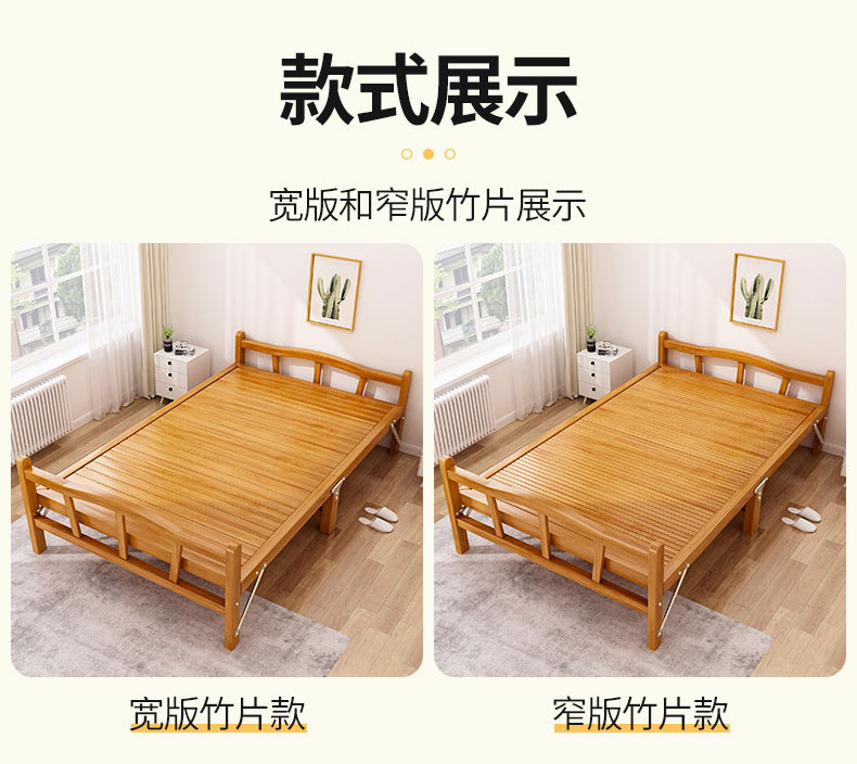 대나무 침대 싱글 접이식 침대 대나무 더블 간단한 가정용 성인 점심 시간 쿨 침대 임대 방 단단한 대나무 판자스토어 가기