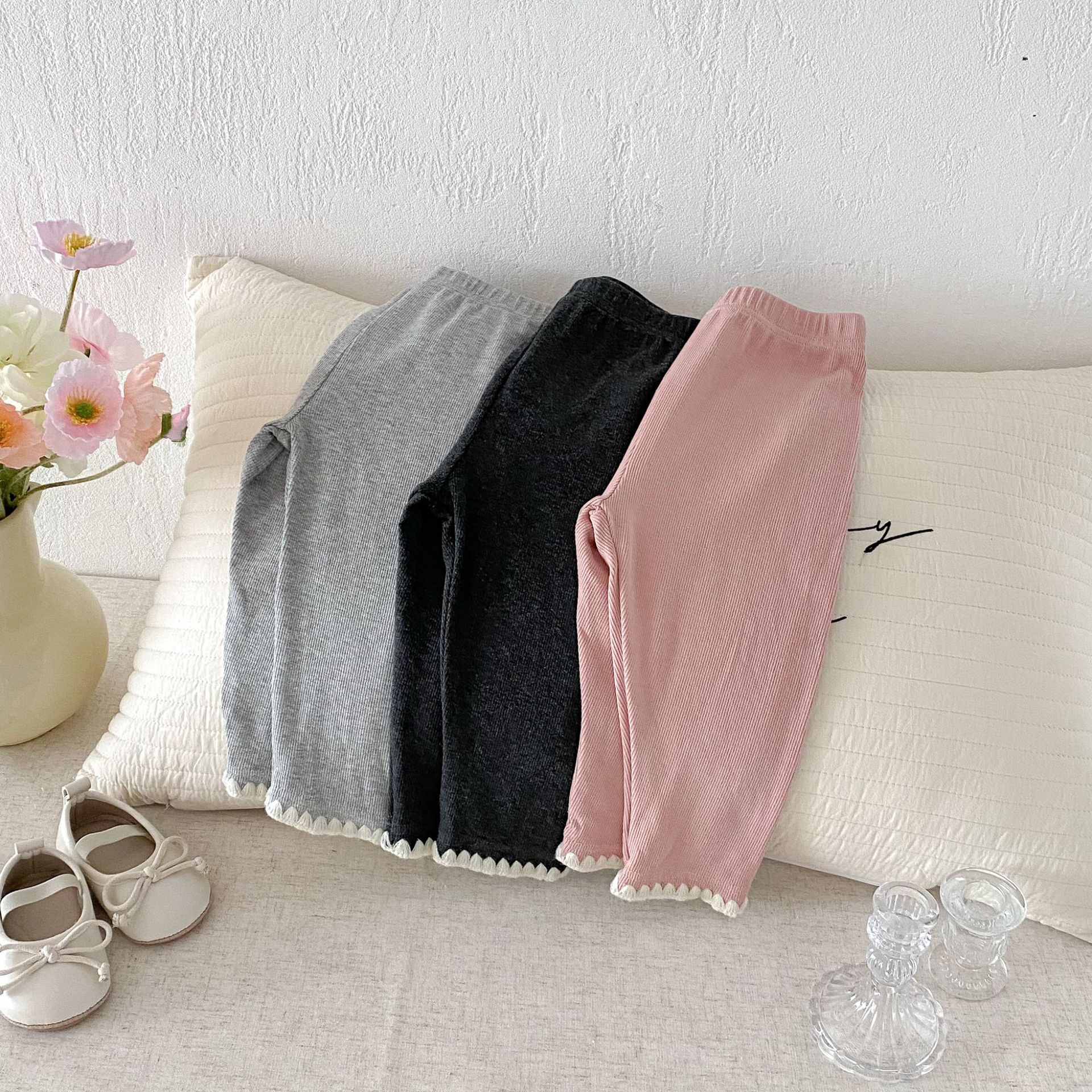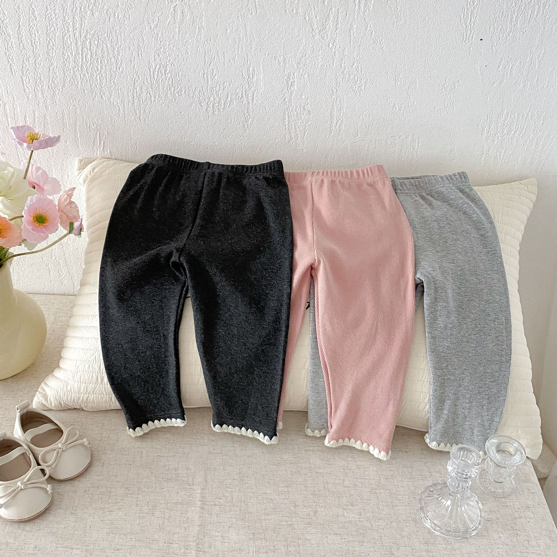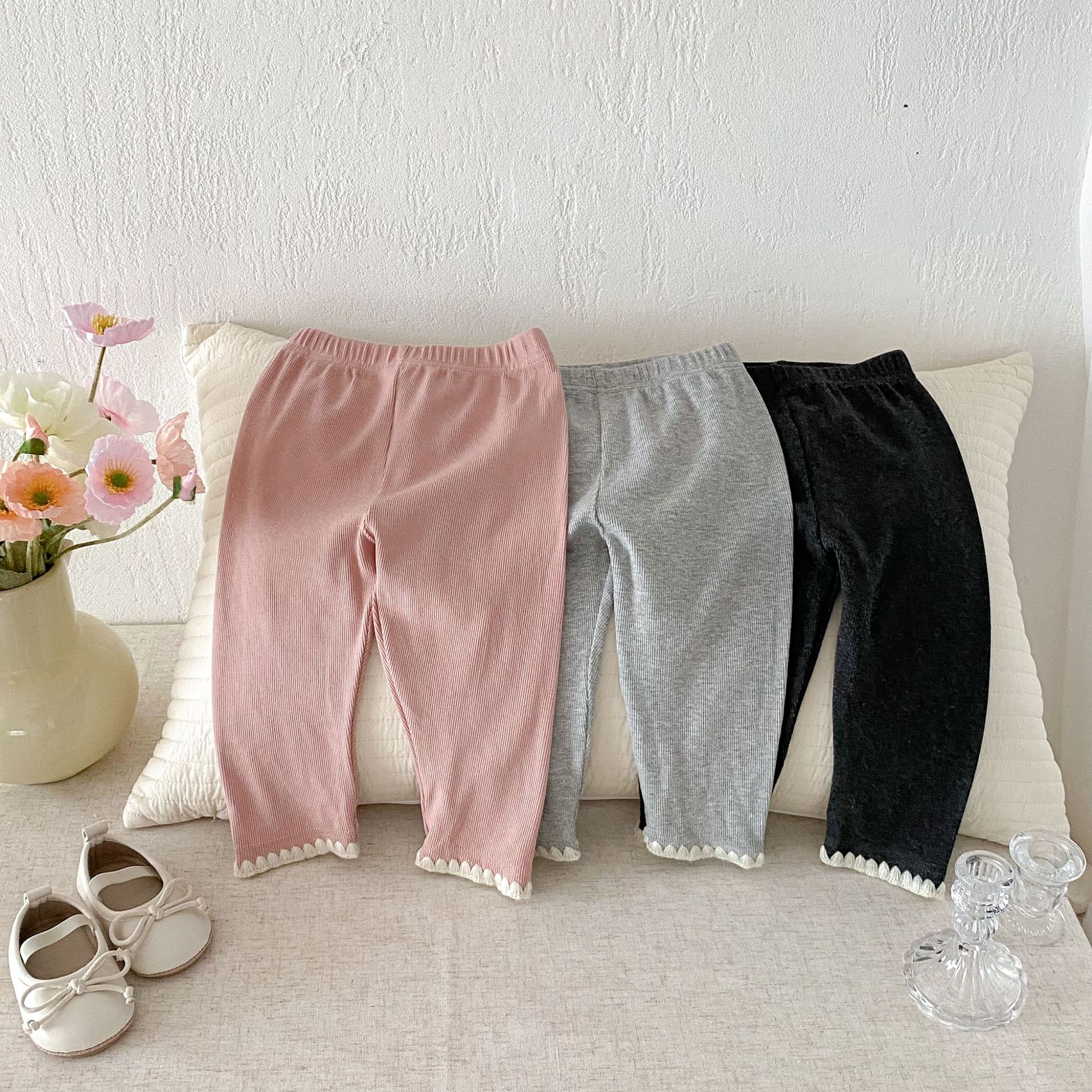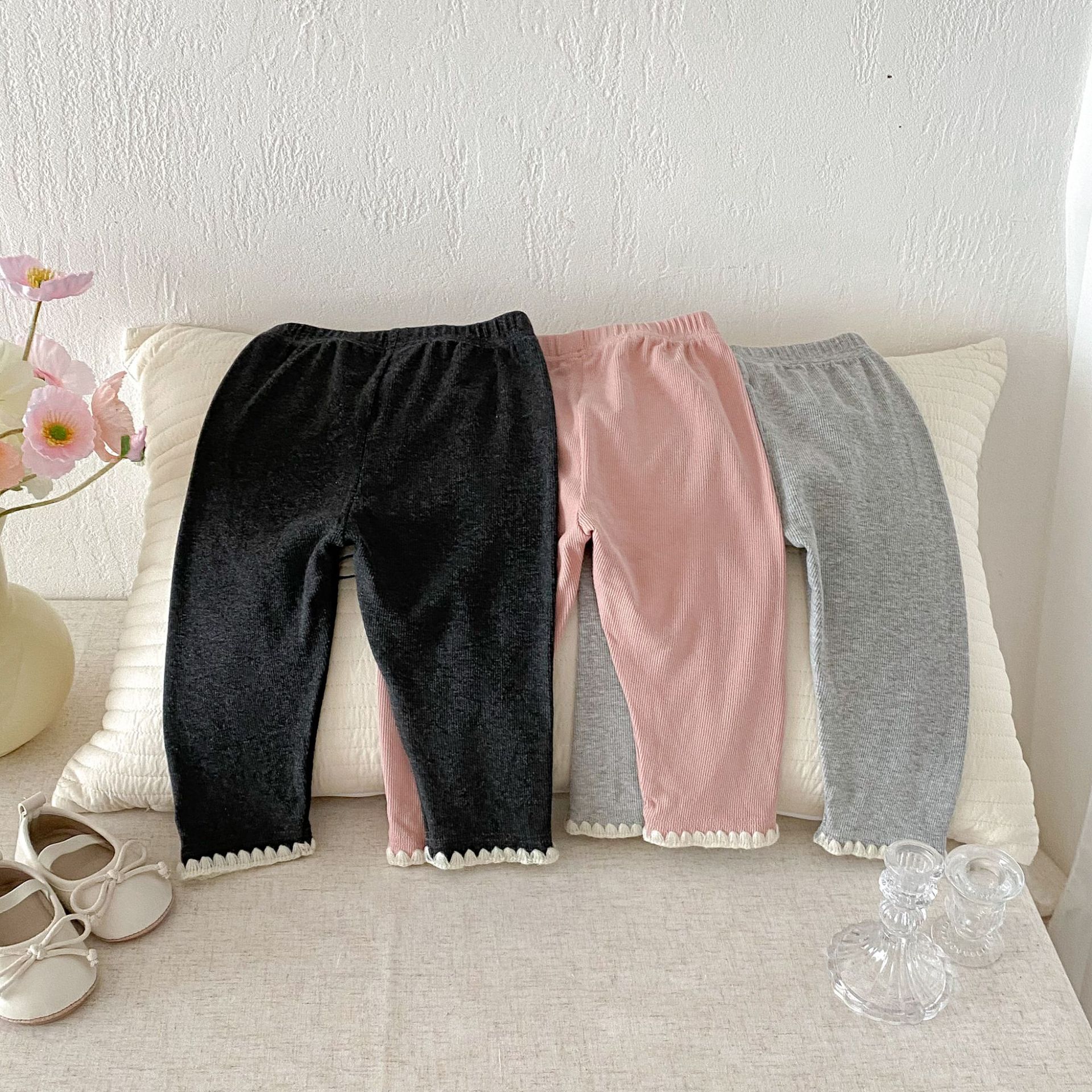 여아 레깅스, 아동용 레이스 니트 단색 레깅스, 여아 아우터 바지, 봄, 가을 아동복 레깅스스토어 가기